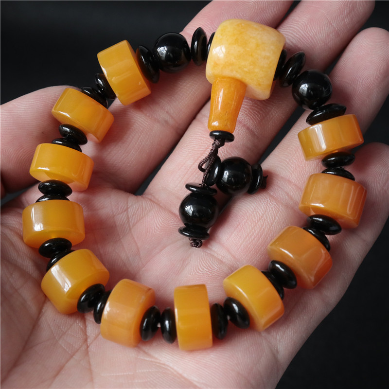 西藏天然黃瑪瑙玉髓單圈手串民族風黃瑪瑙手串男女佛珠念珠手鏈1入
