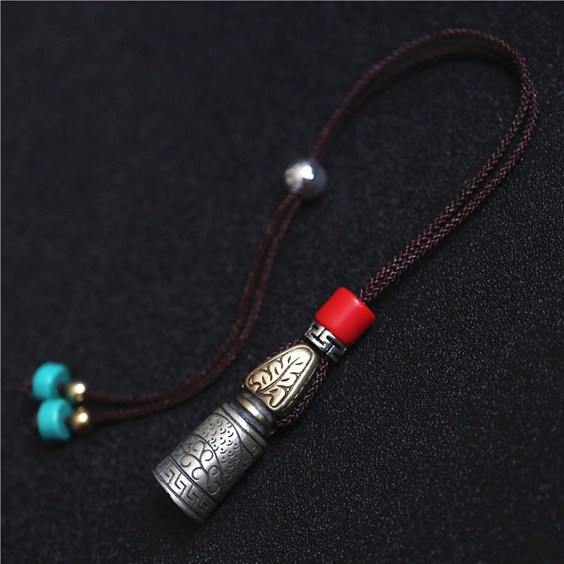 西藏直發精工手工嵌銅鑄模925純銀印章配飾法器背云計數器卡子1入