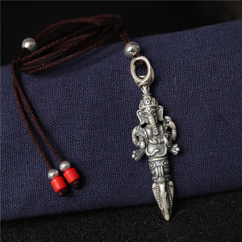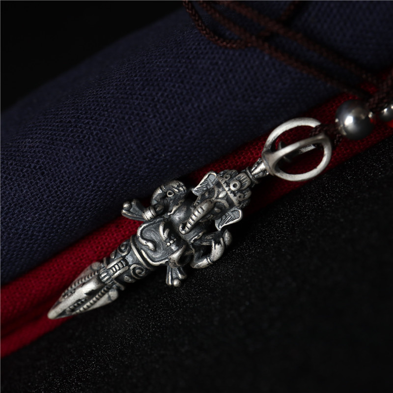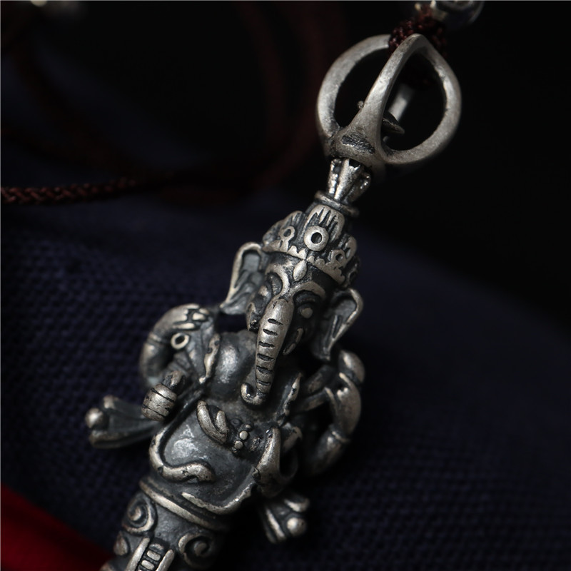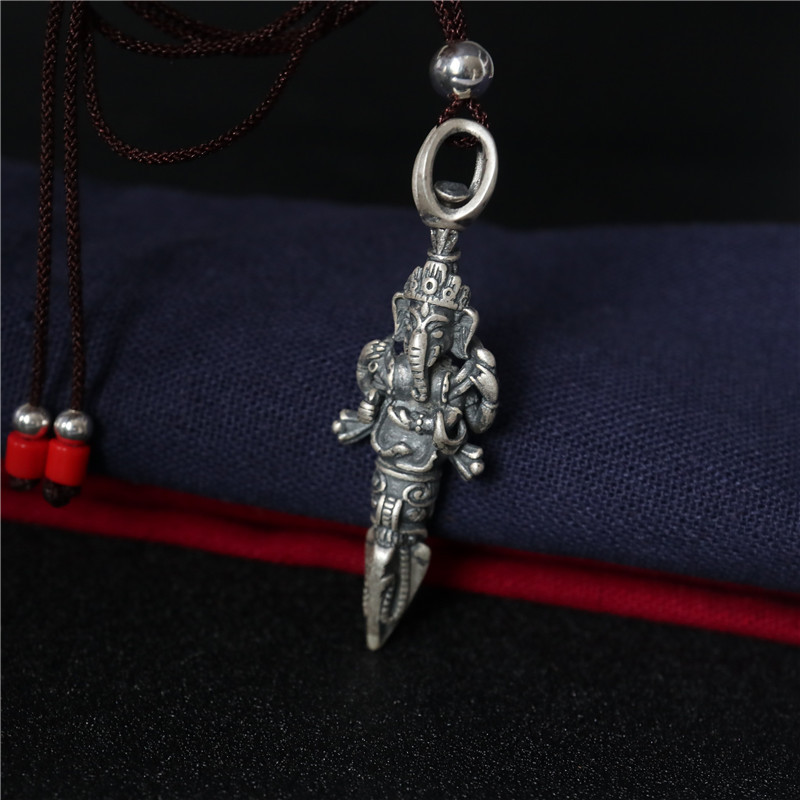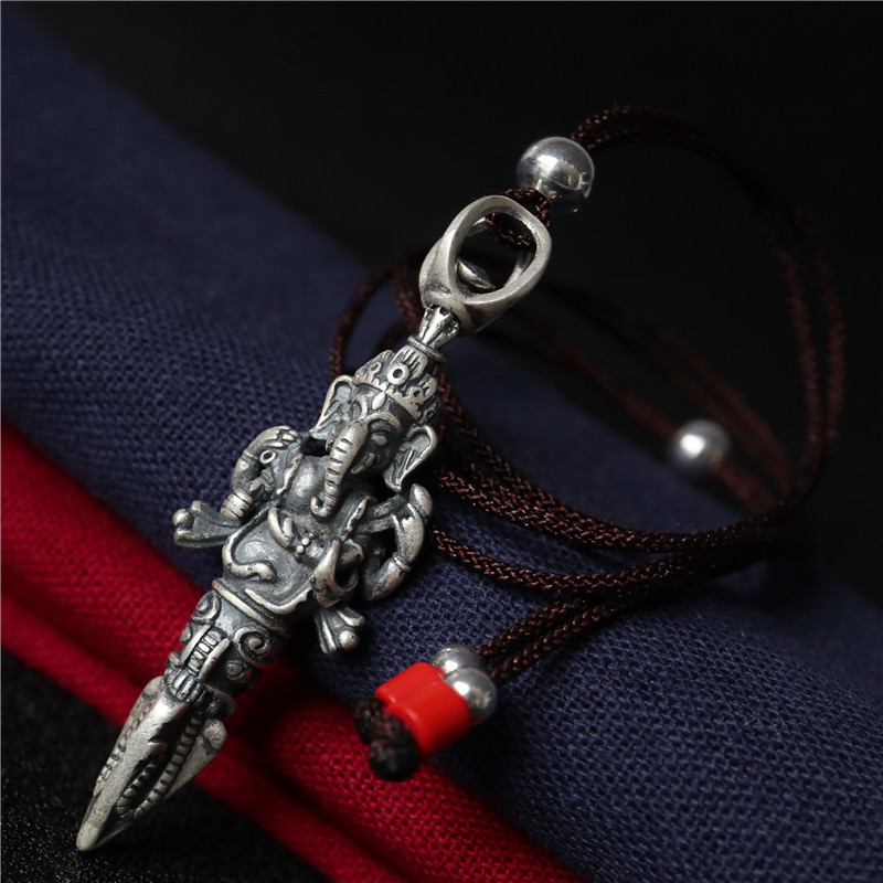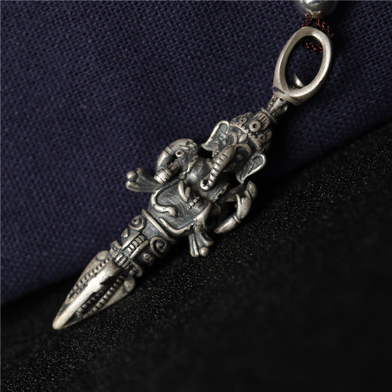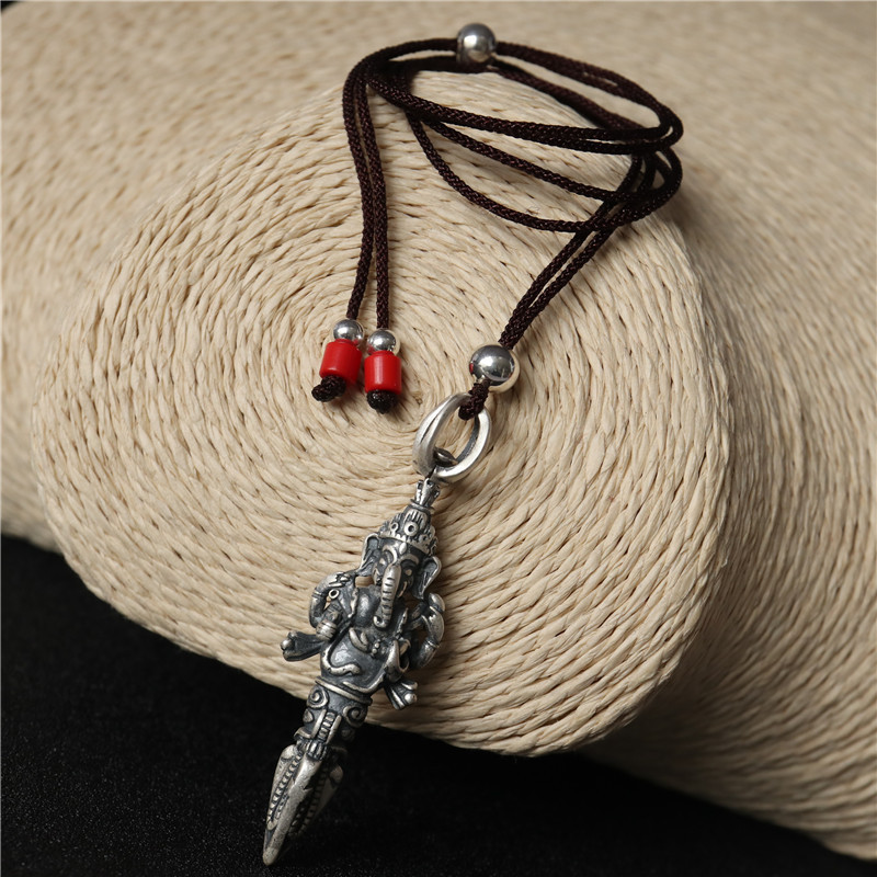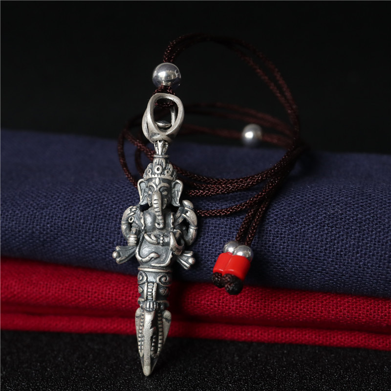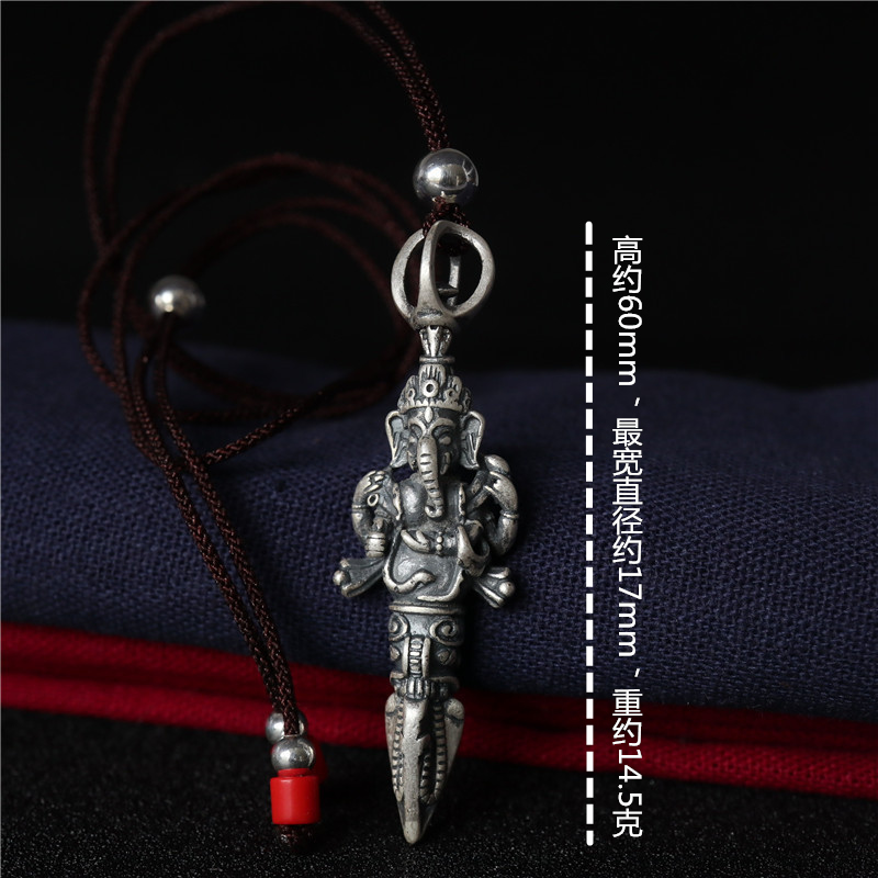 西藏直發象鼻神財神925純銀吊墜藏式純銀象鼻神吊墜1入