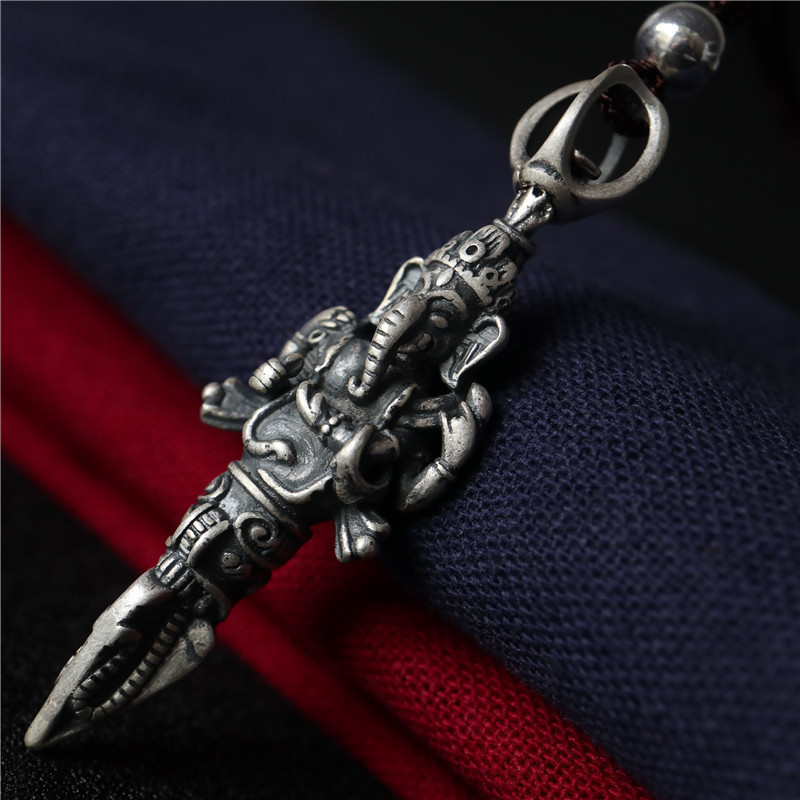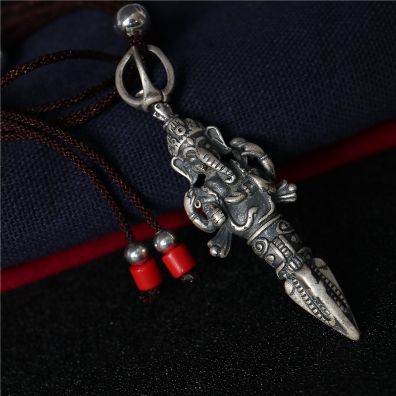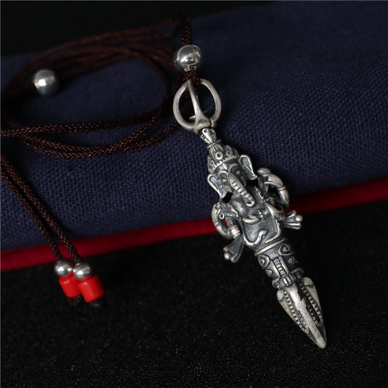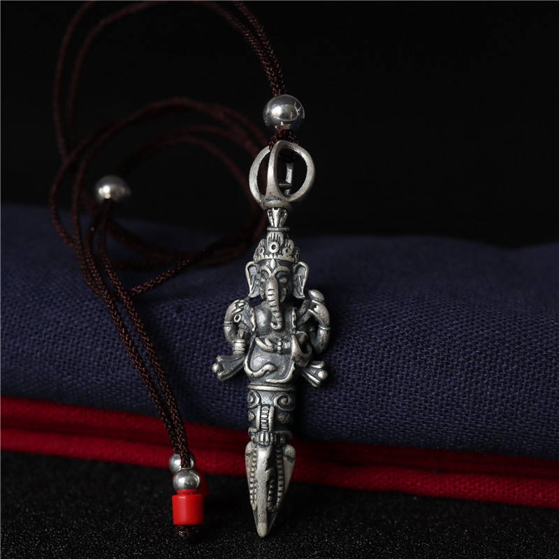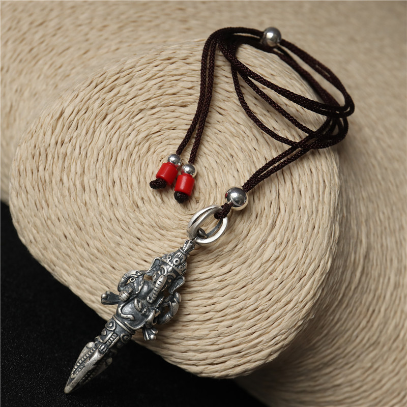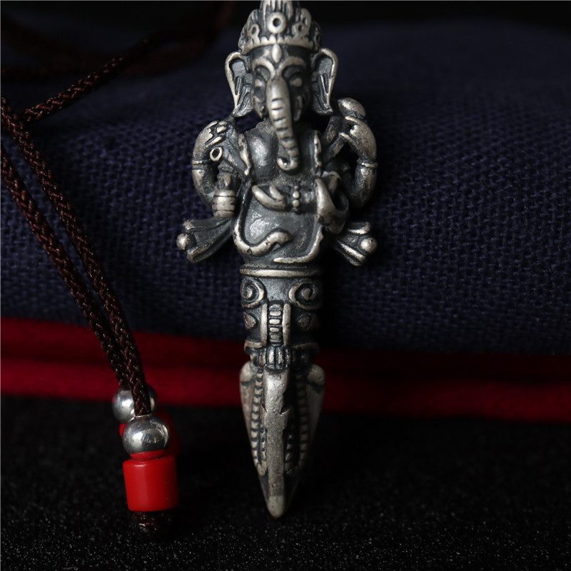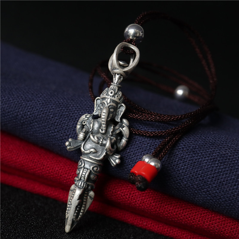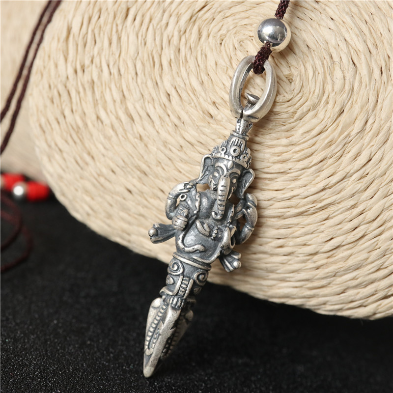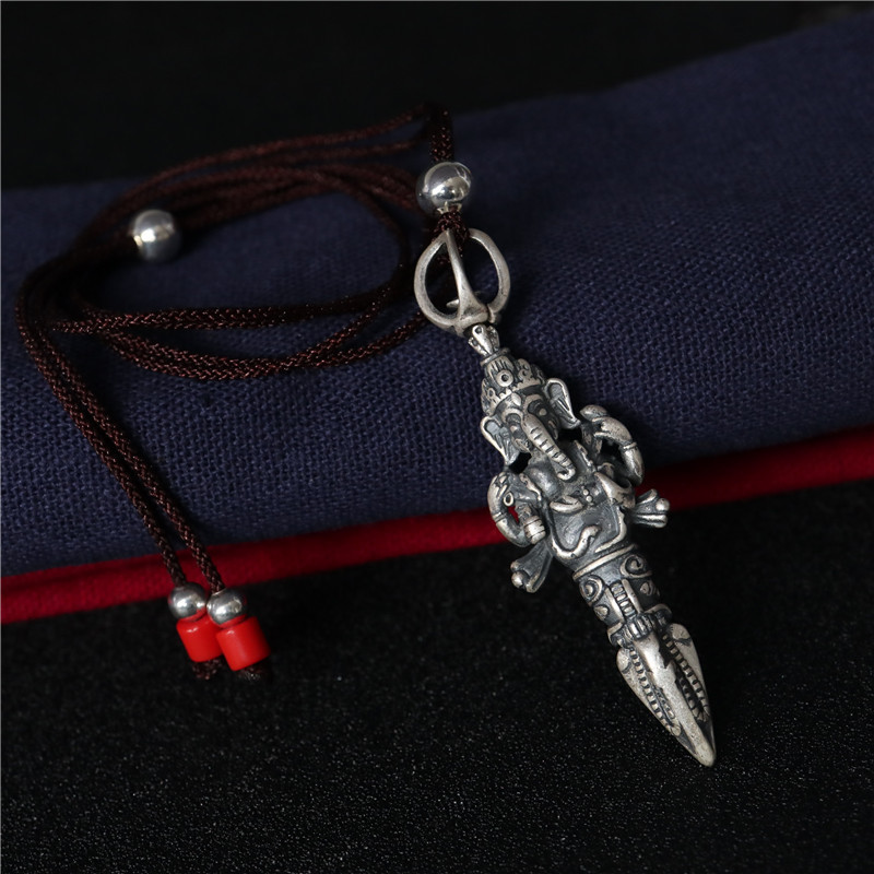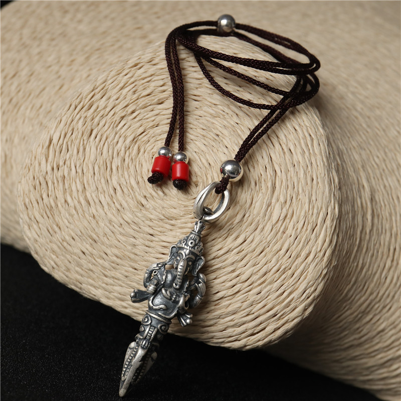 西藏直發象鼻神財神925純銀吊墜藏式純銀象鼻神吊墜1入