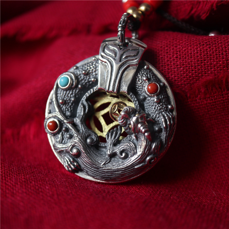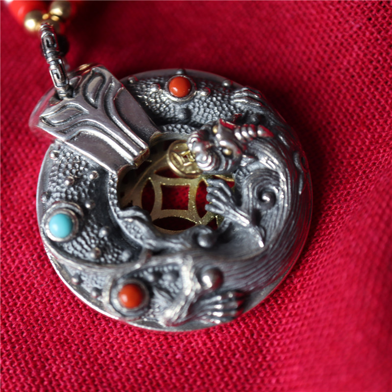 西藏直發金錢貔貅純銀S925吊墜仿古浮雕手工銀招財進寶貔貅吊墜1入