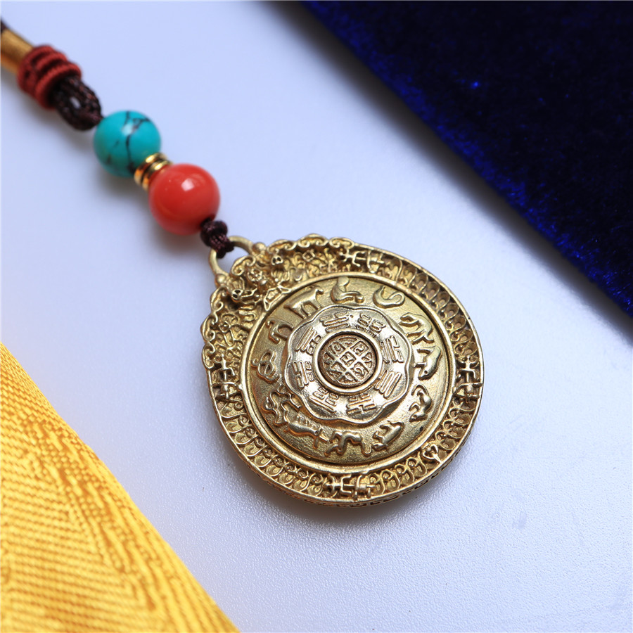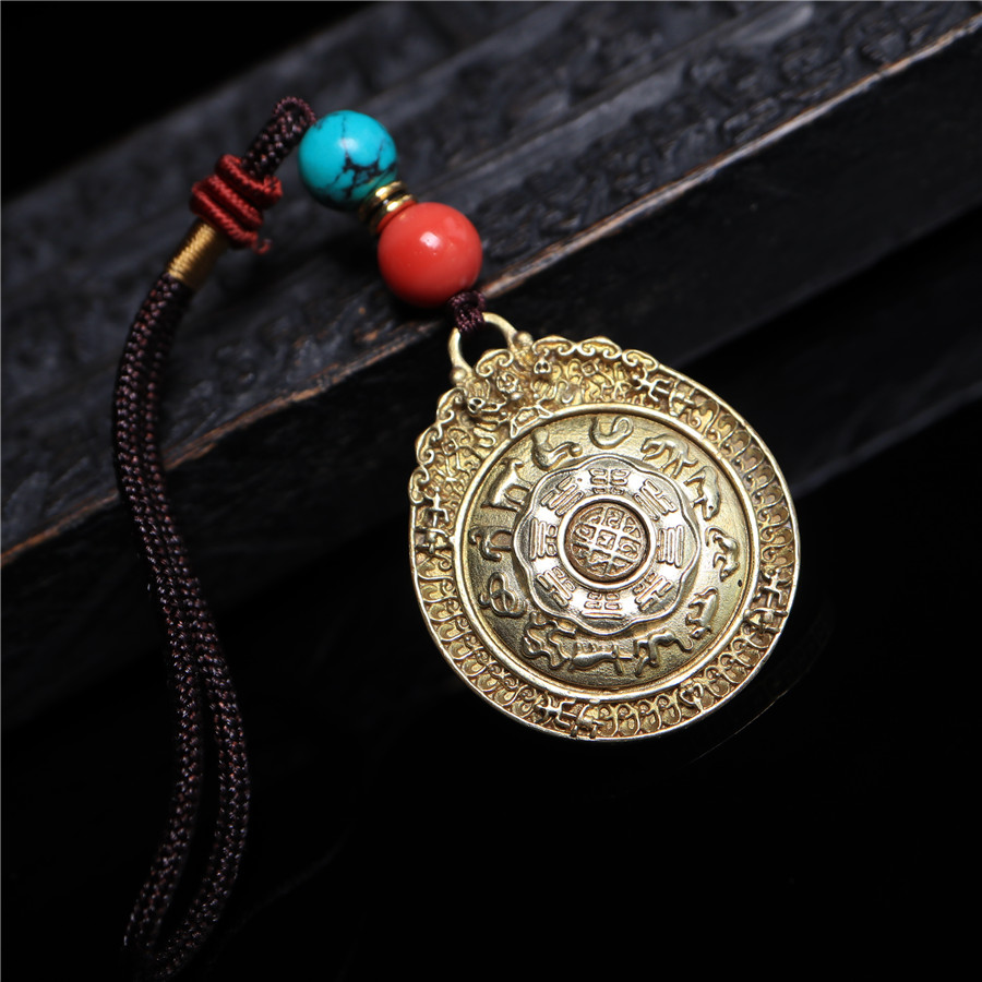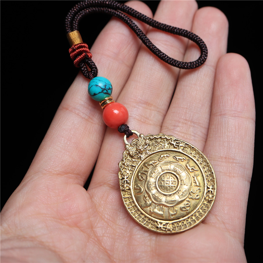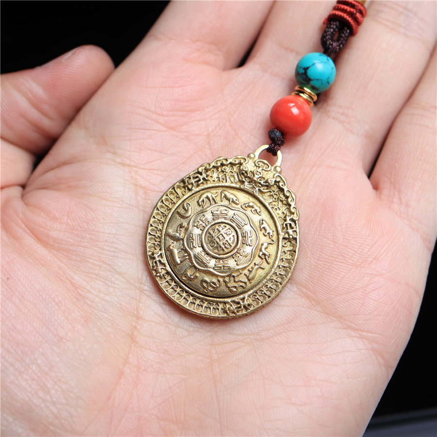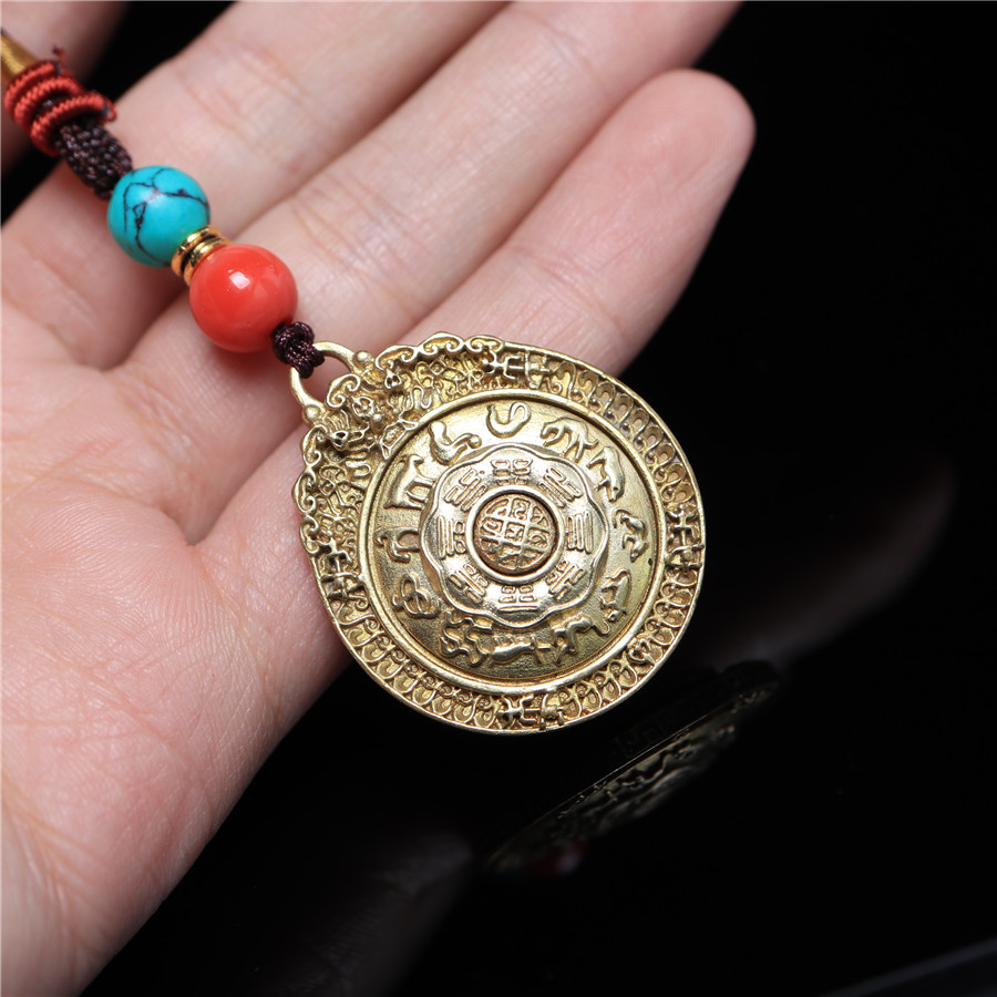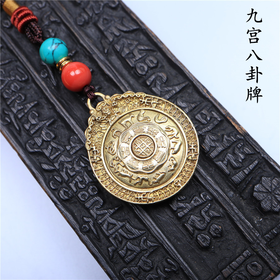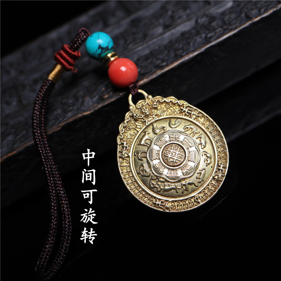 黃銅九宮八卦牌可旋轉護身保平安腰牌包掛化太歲12生肖轉運吊墜1入