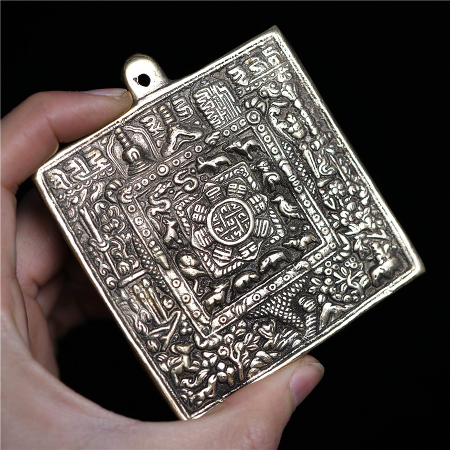 西藏純銅方形九宮八卦牌招財轉運化太歲本命年辟邪男女鑰匙扣吊墜1入