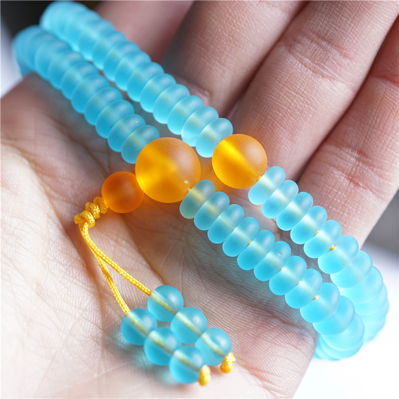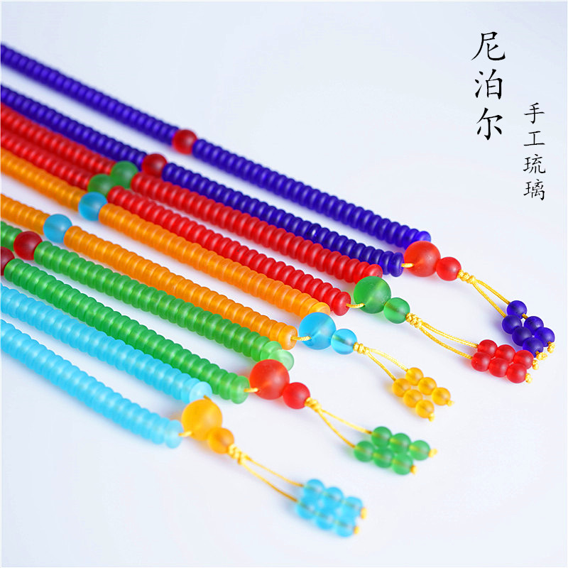 西藏佛教七寶手工老琉璃隔片念珠尼泊爾民族風DIY琉璃佛珠念珠串1入