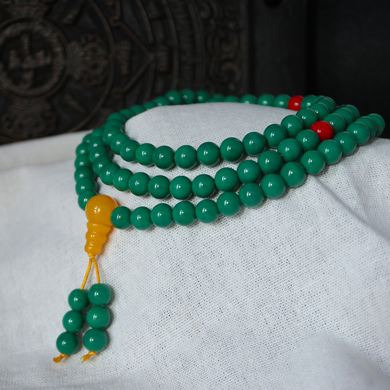 西藏翠綠琉璃108顆佛珠手串藏式風格翠綠琉璃男女念珠手持1入