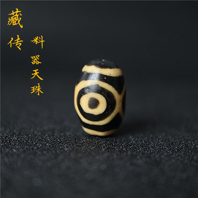 西藏手工牙黃料器三眼金剛天珠吊墜藏傳手工料器工藝三眼金剛天珠1入
