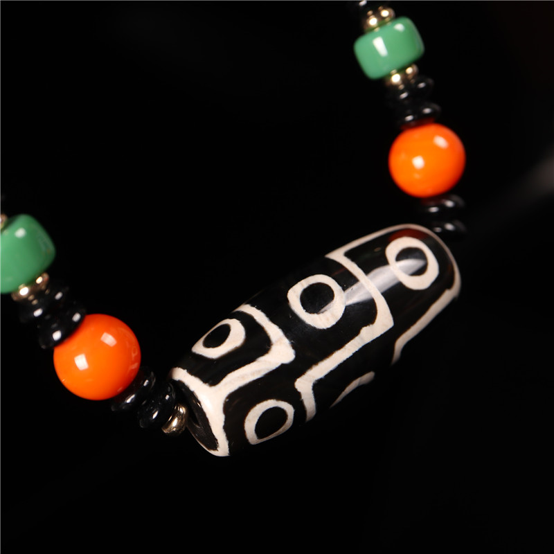 西藏天珠九眼石頁巖瑪瑙玉髓項鏈吊墜手串火供開火手鏈1入