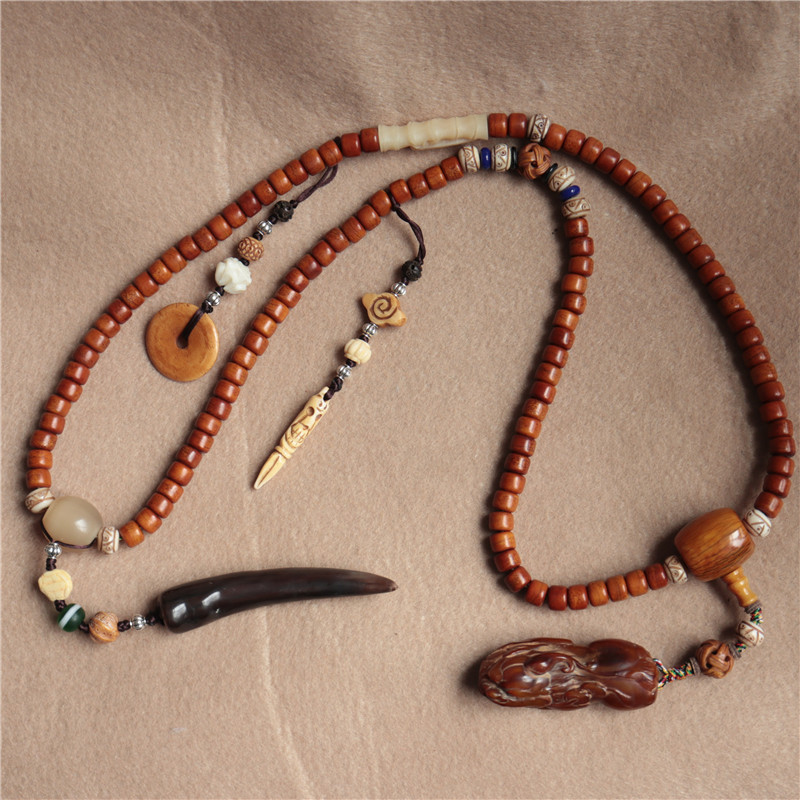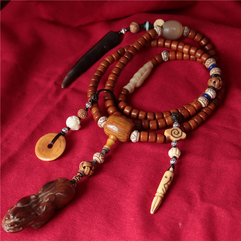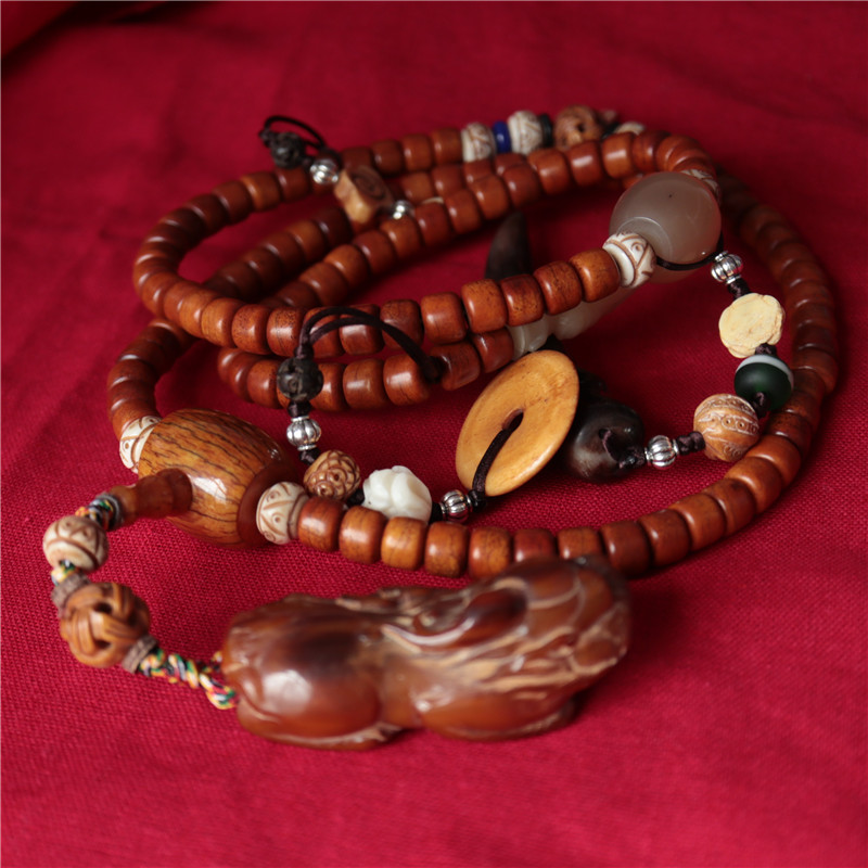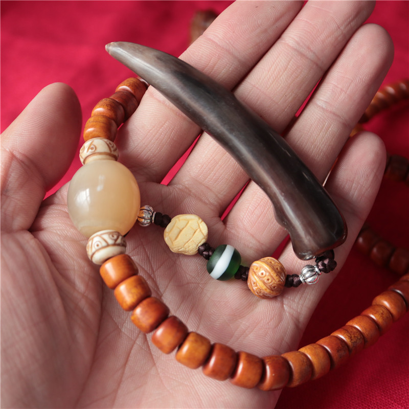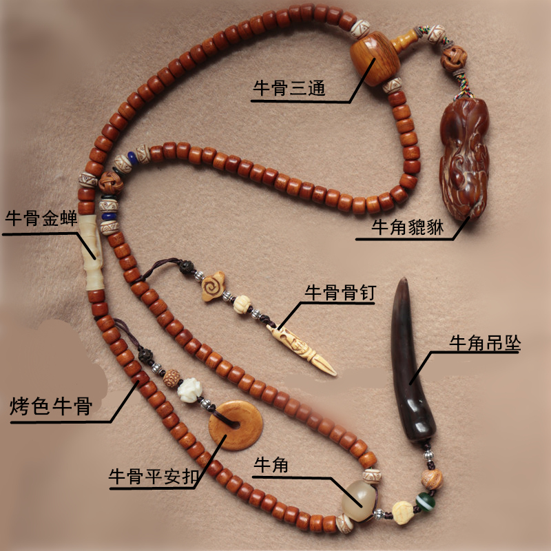 西藏?牛骨牛角雕刻貔貅佛珠項鏈手持藏式民族風牛骨佛珠念珠手持1入