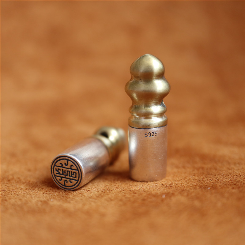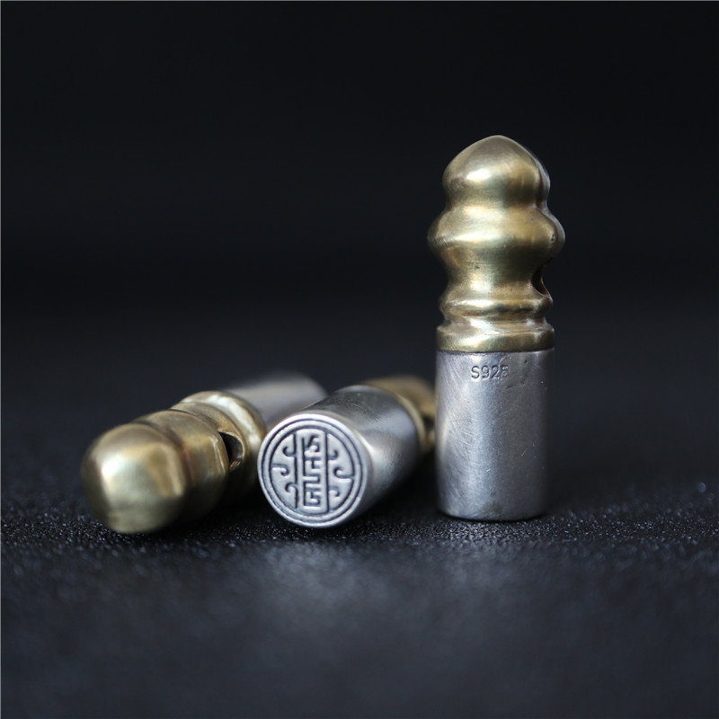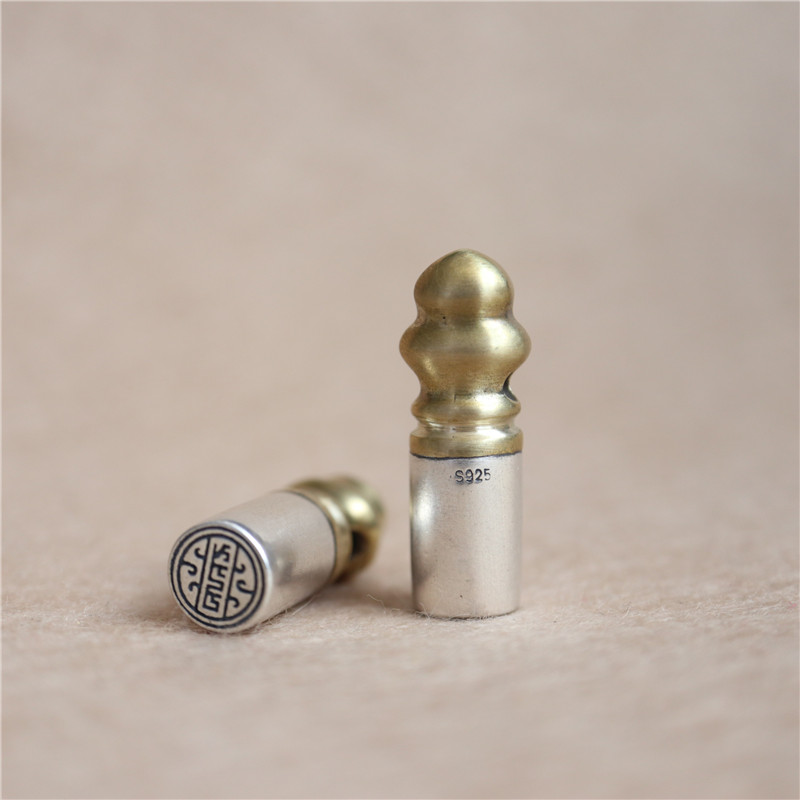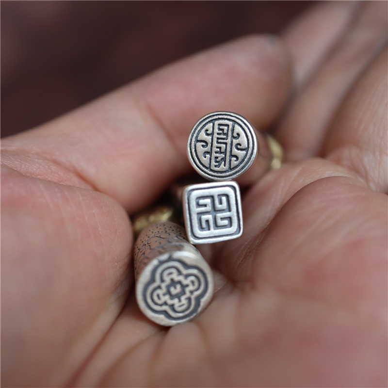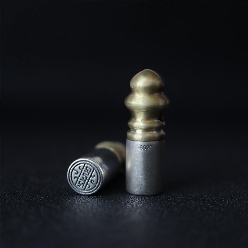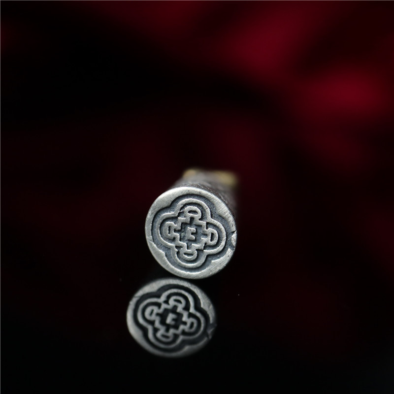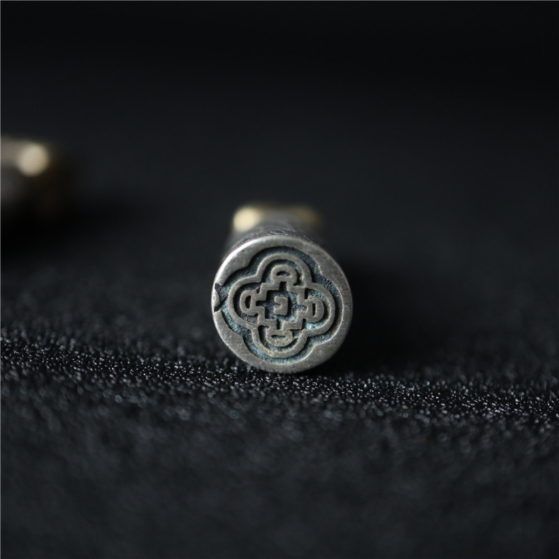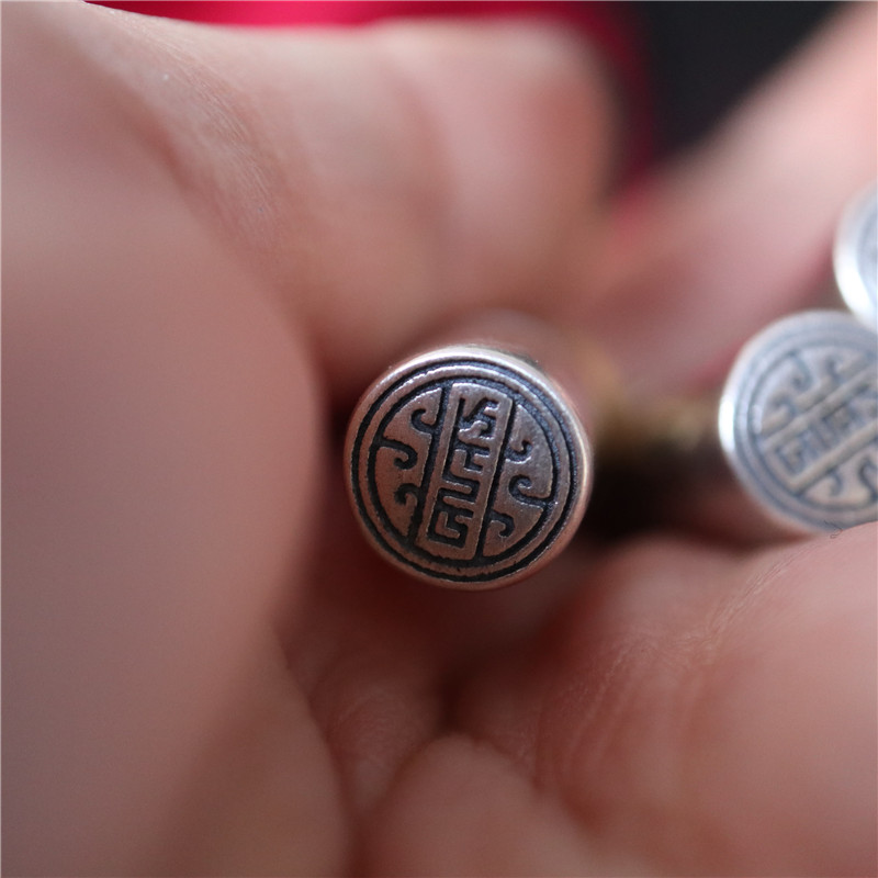西藏直發精工手工嵌銅鑄模925純銀印章配飾法器背云計數器卡子1入