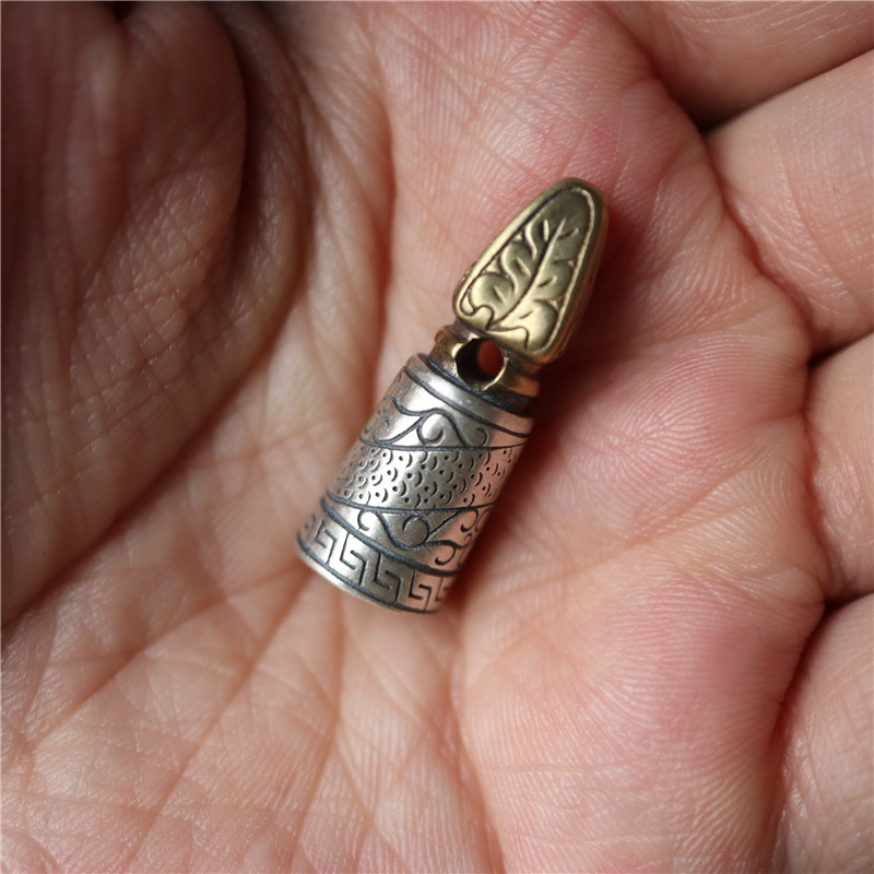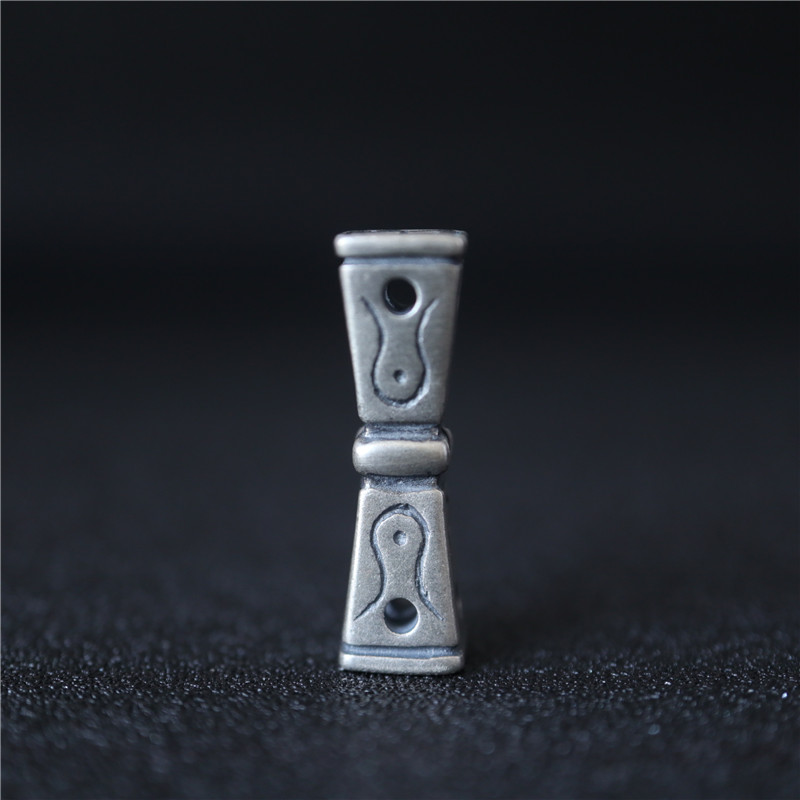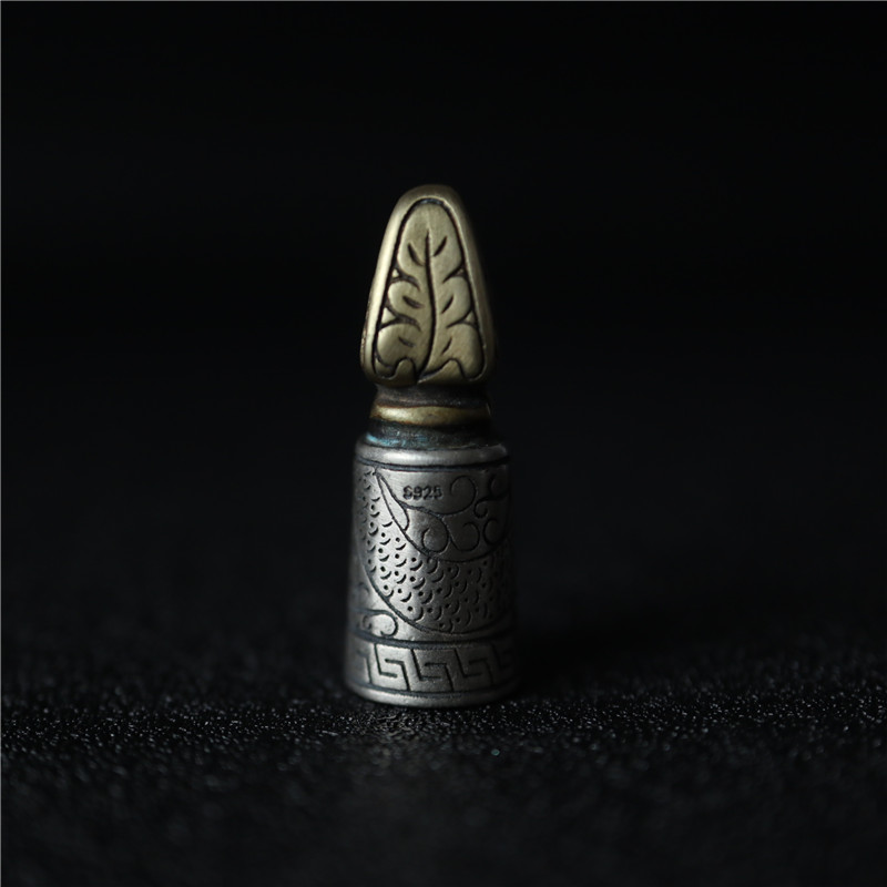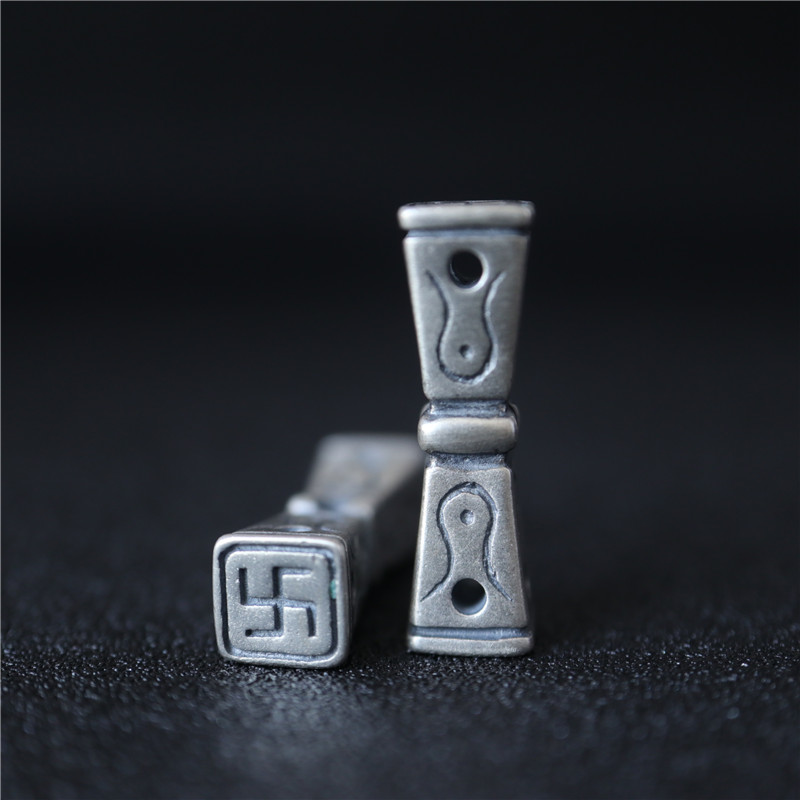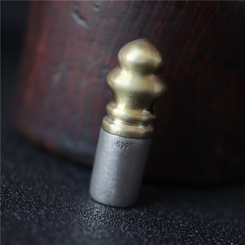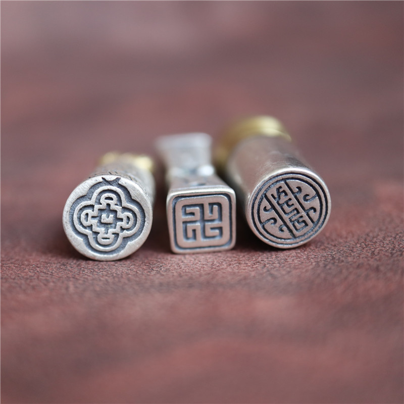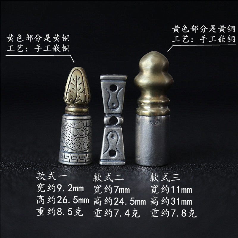 西藏直發精工手工嵌銅鑄模925純銀印章配飾法器背云計數器卡子1入