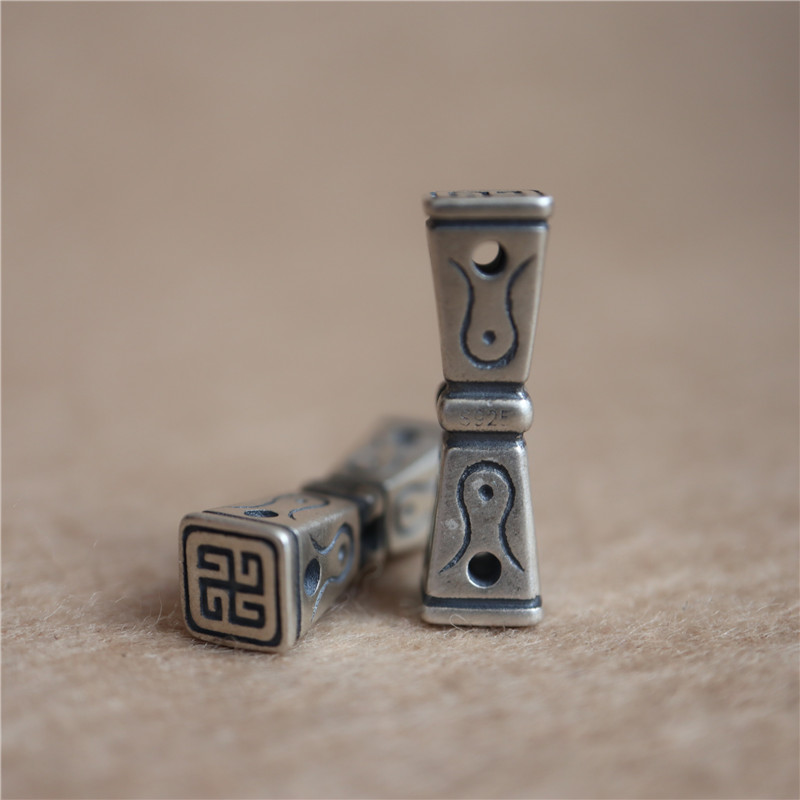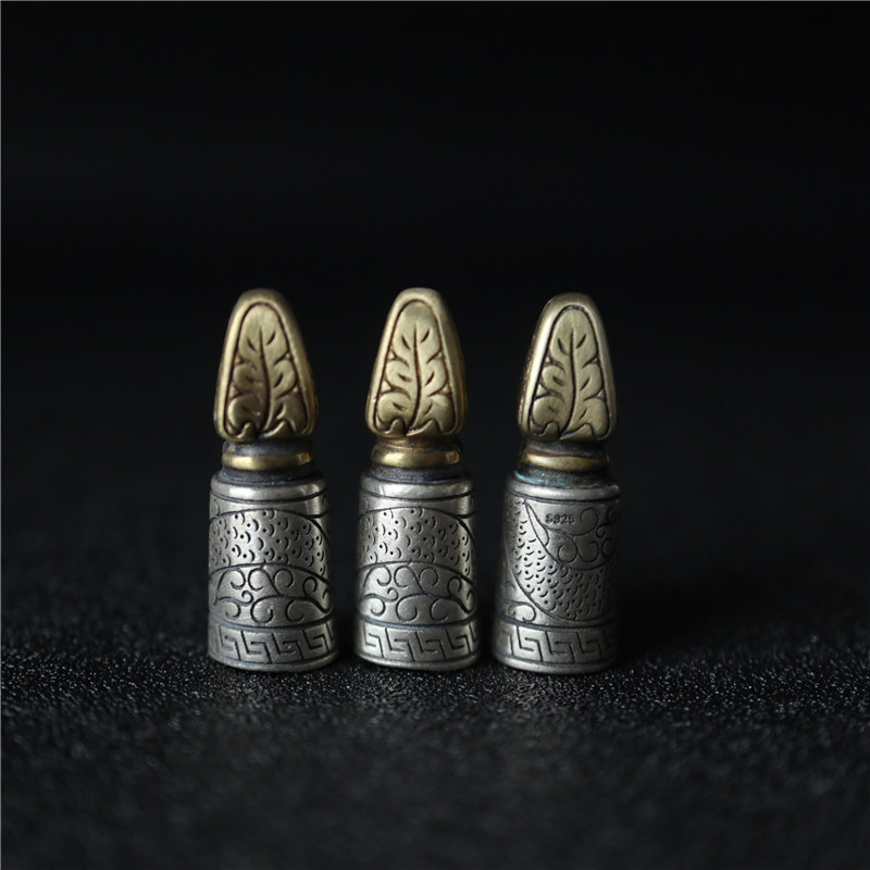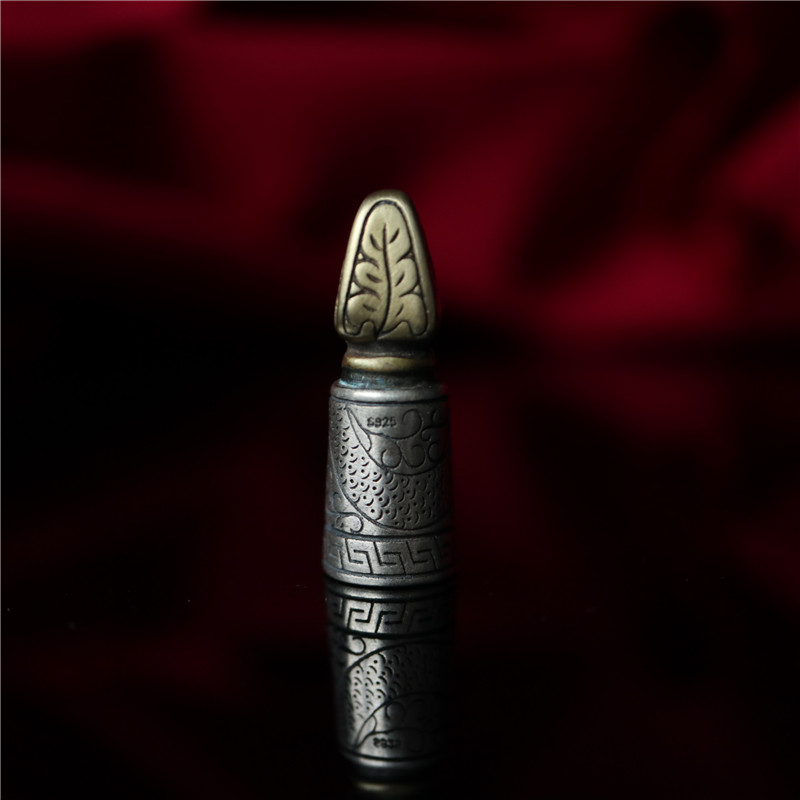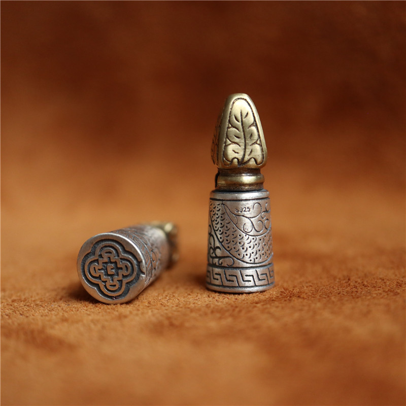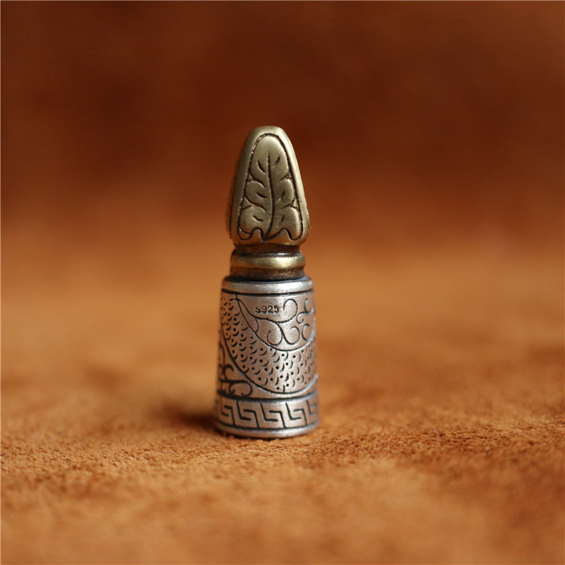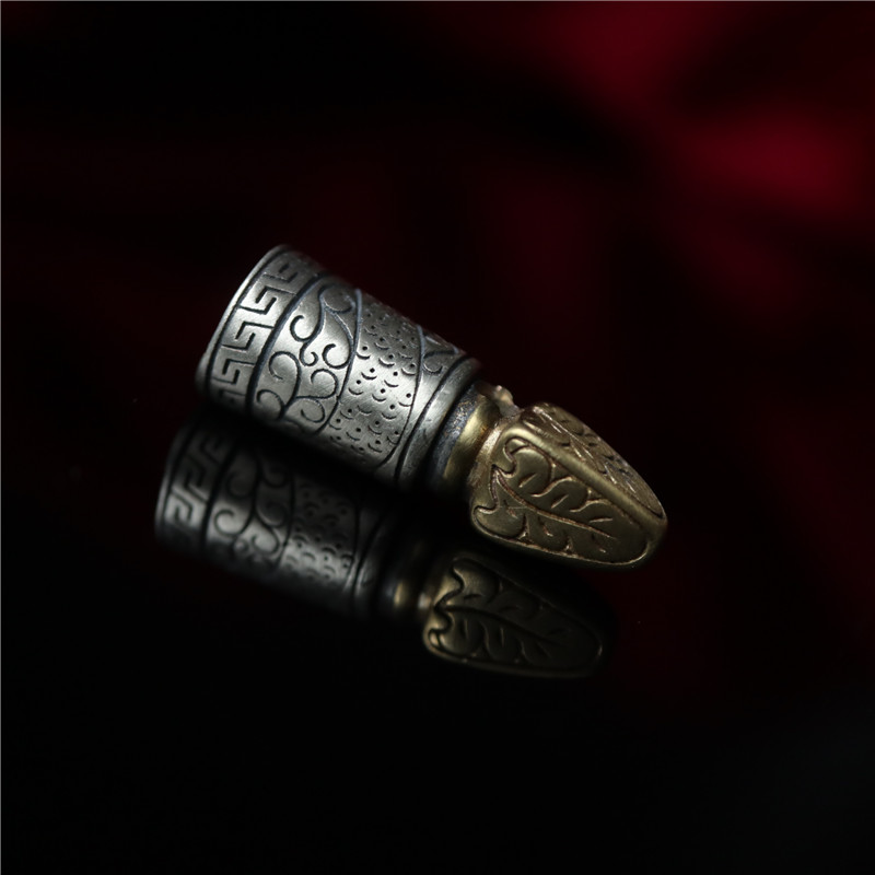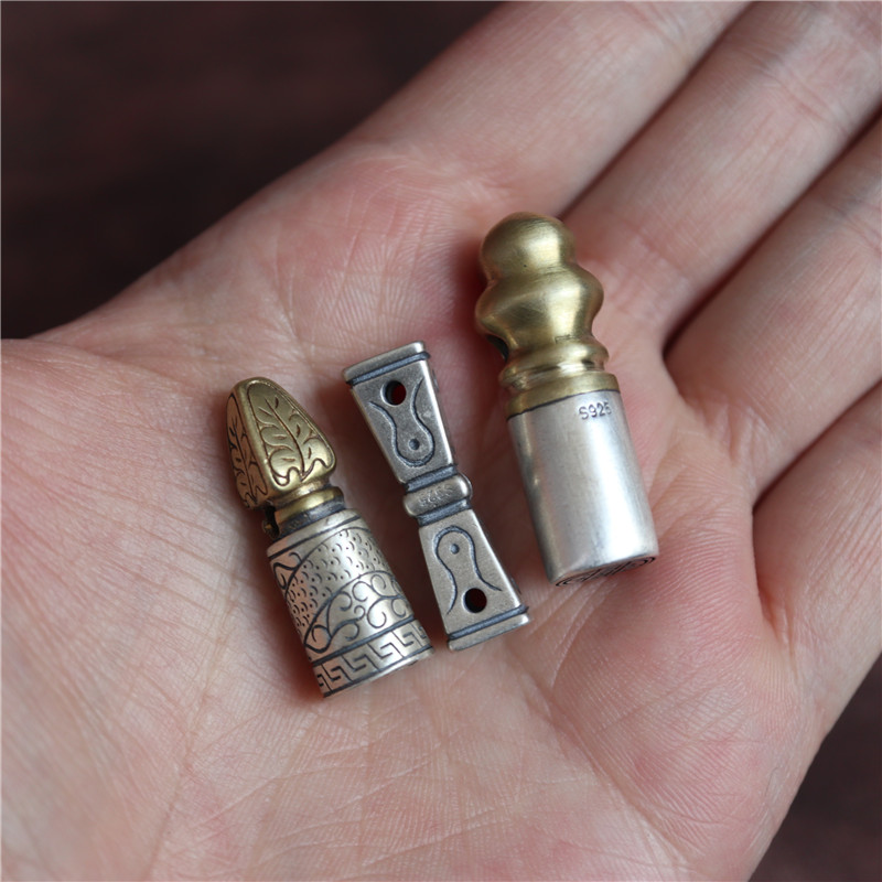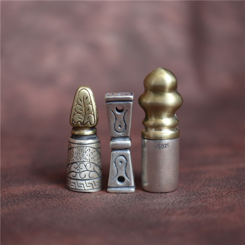 西藏直發精工手工嵌銅鑄模925純銀印章配飾法器背云計數器卡子1入