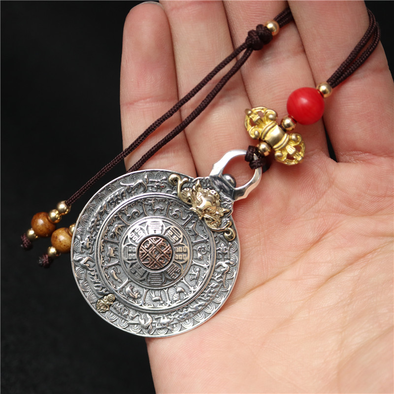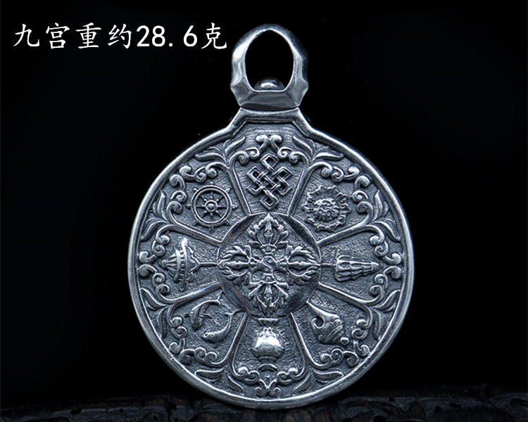 西藏 九宮八卦牌 925純銀 西藏佛牌護身轉運開光風水掛墜1入