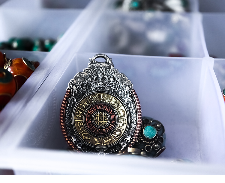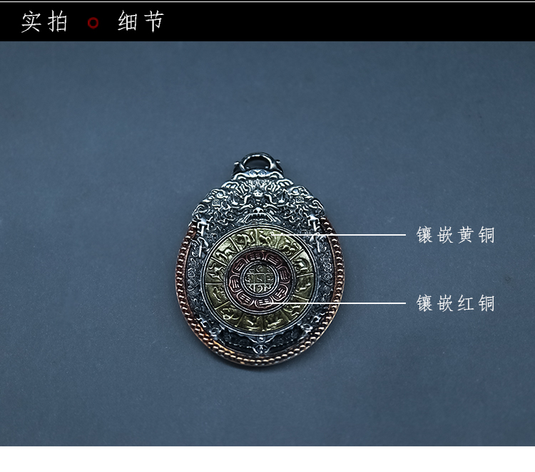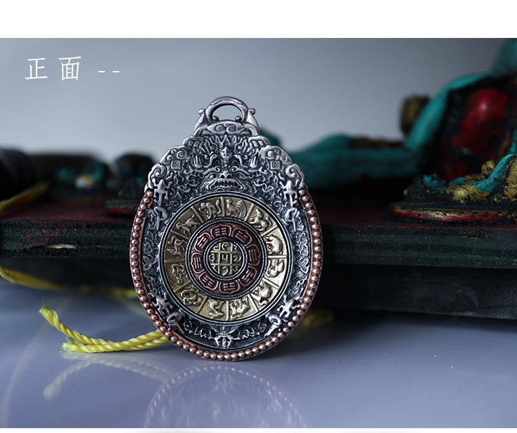 西藏 925純銀九宮八卦牌藏式九宮牌吊墜精工制作十字金剛杵九宮牌1入