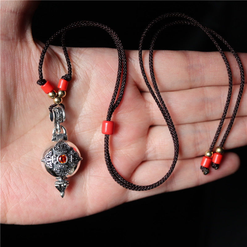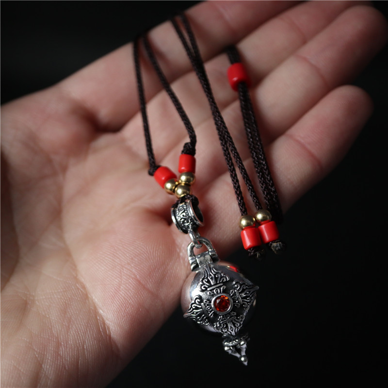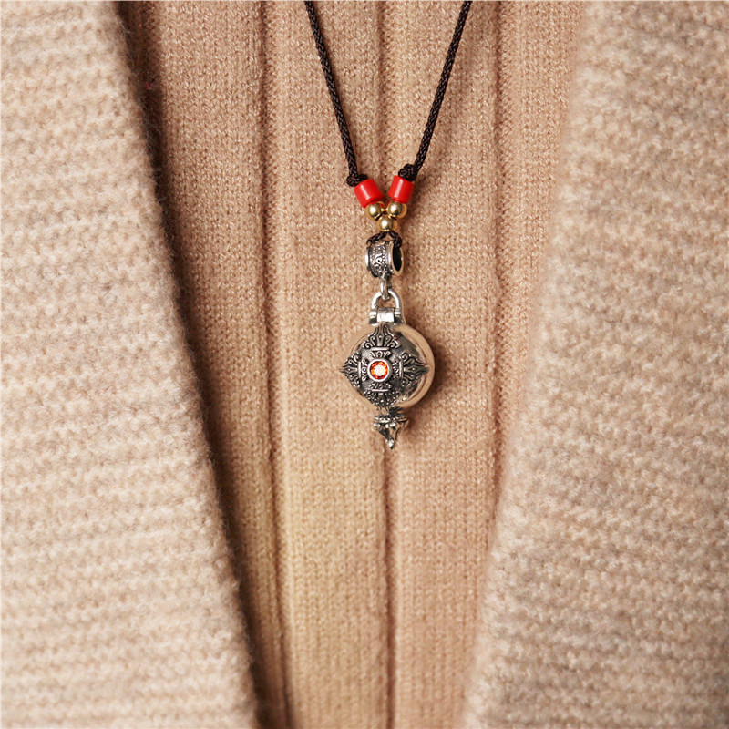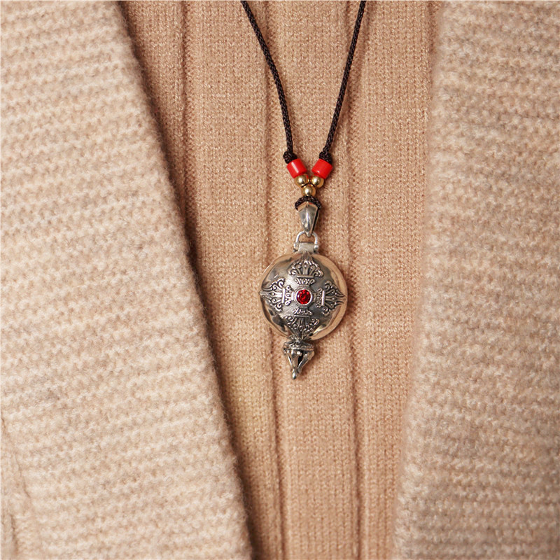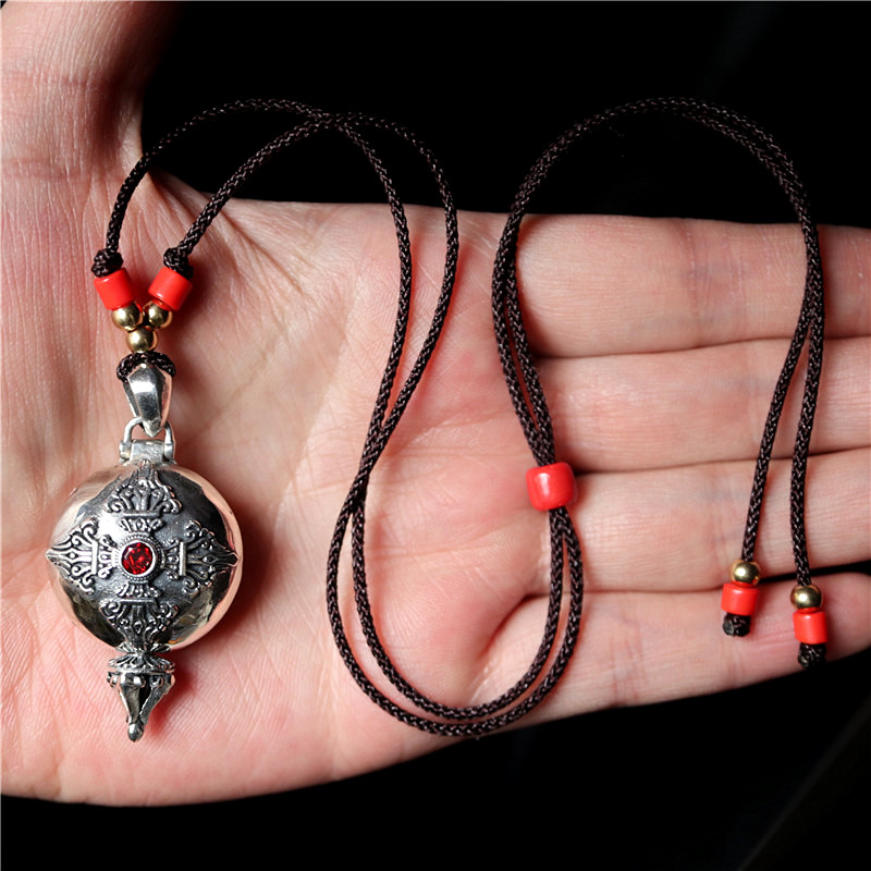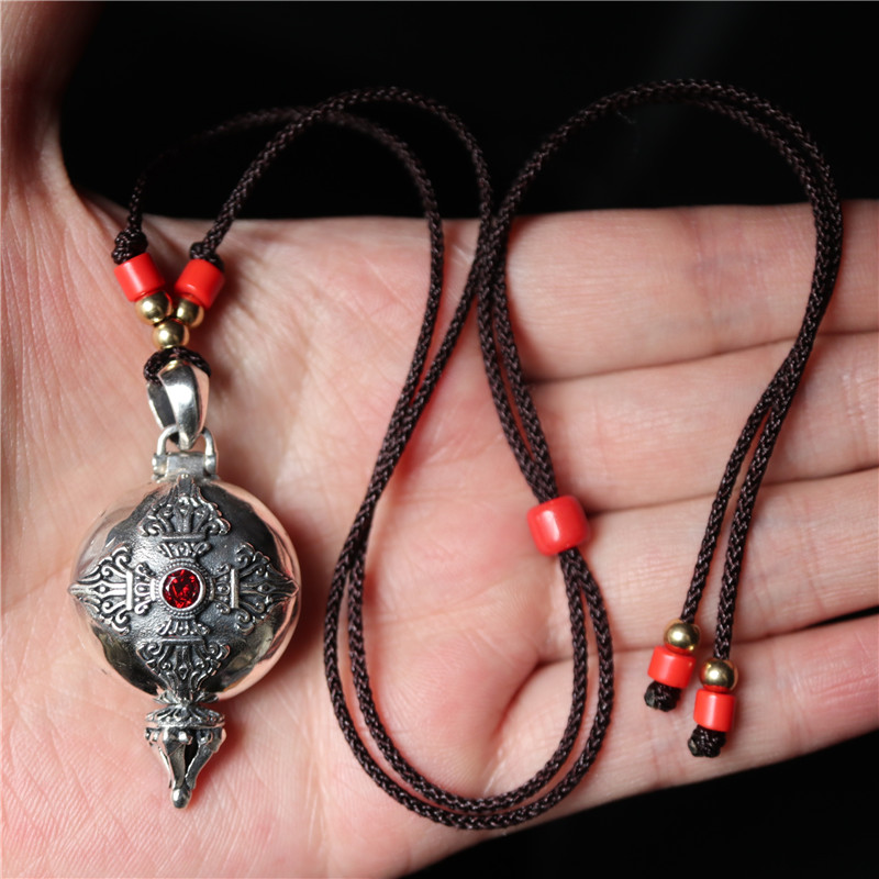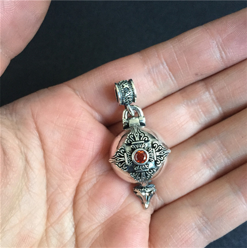 西藏S925純銀 嘎烏盒 可打開裝甘露丸項鏈吊墜藏式手工純銀噶烏盒1入