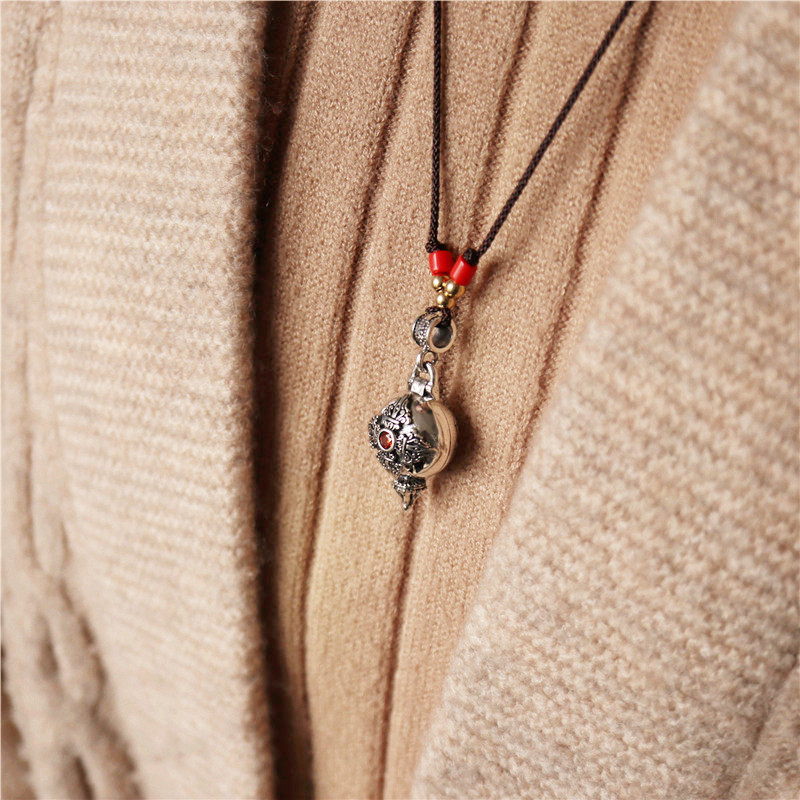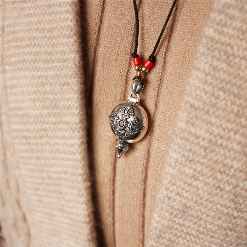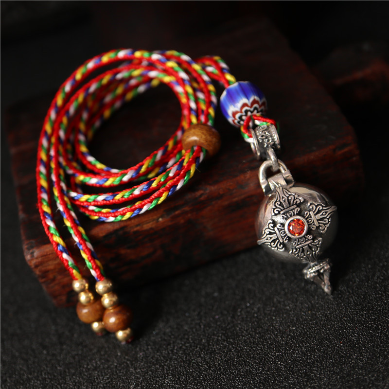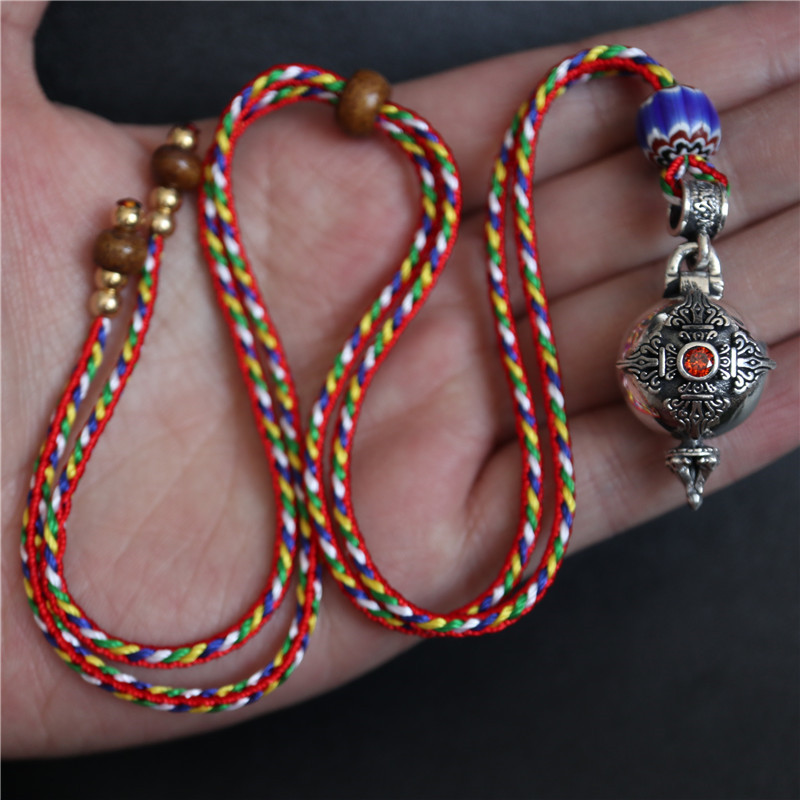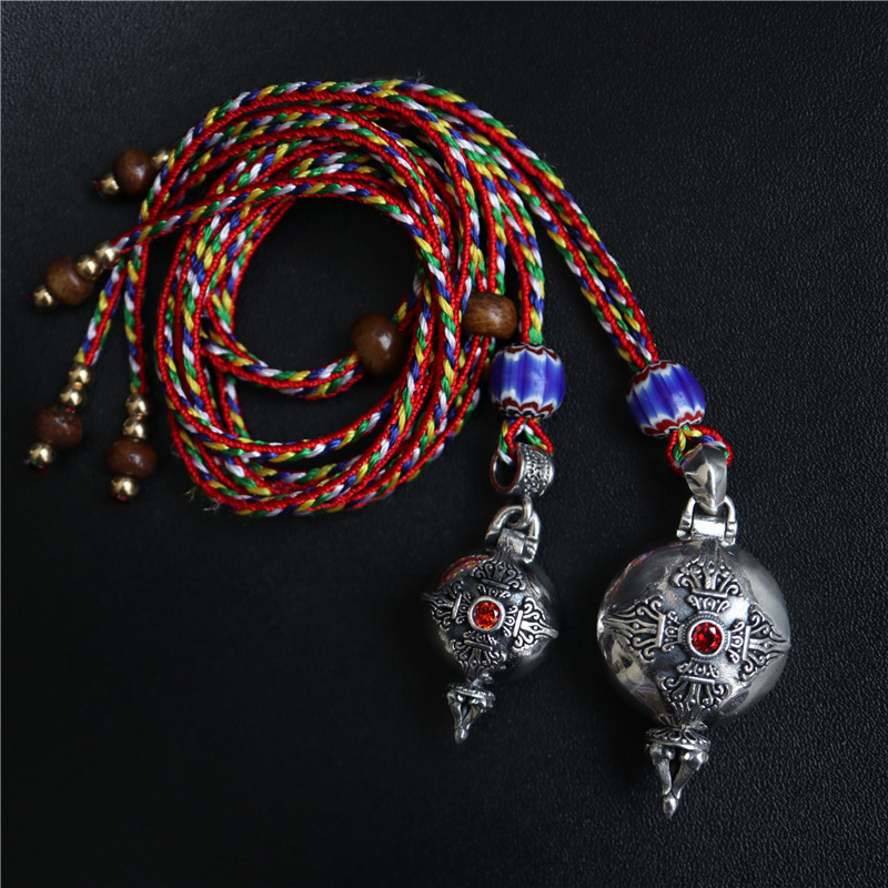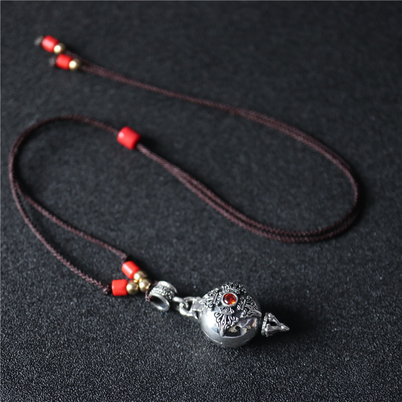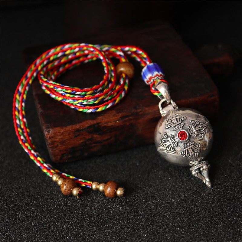 西藏S925純銀 嘎烏盒 可打開裝甘露丸項鏈吊墜藏式手工純銀噶烏盒1入