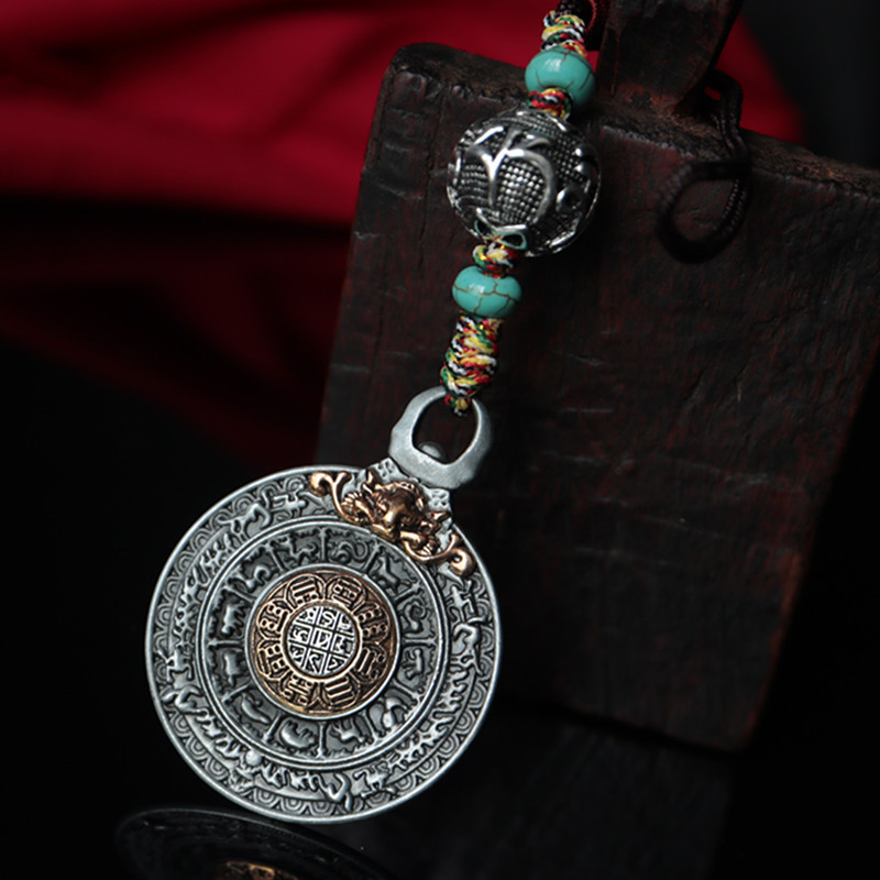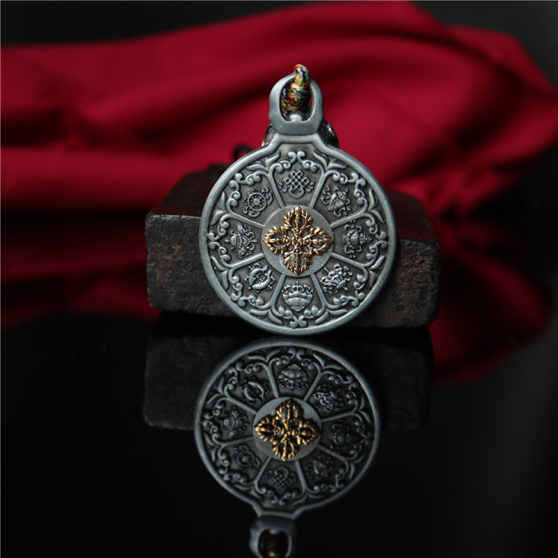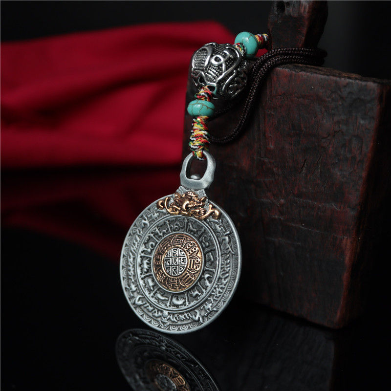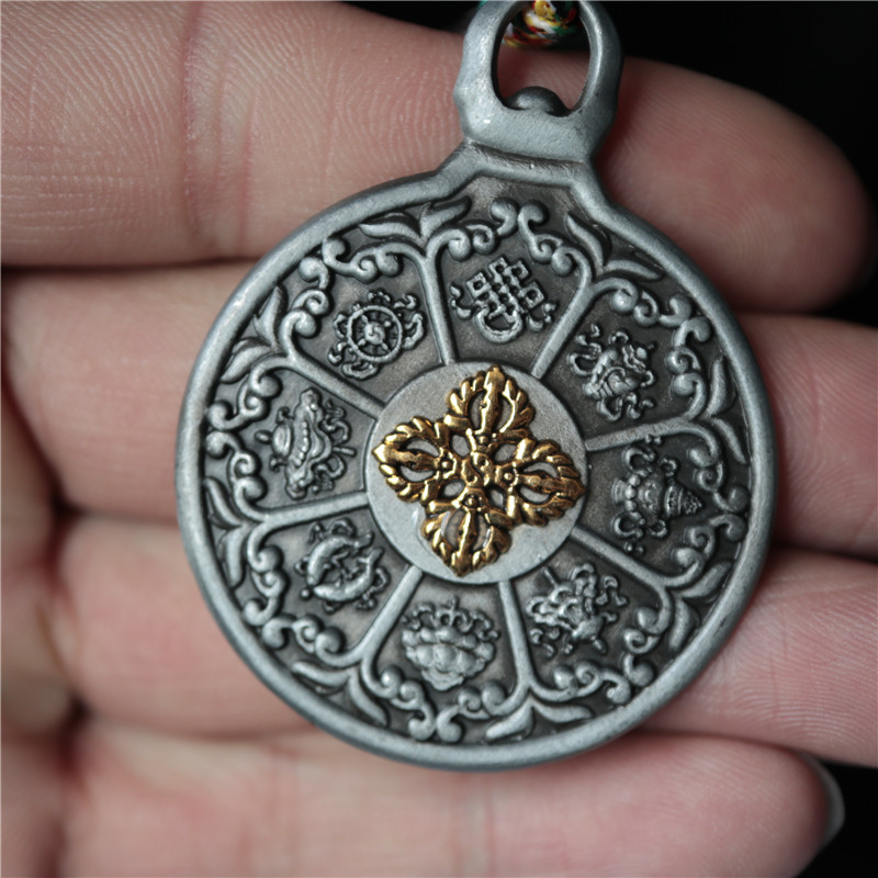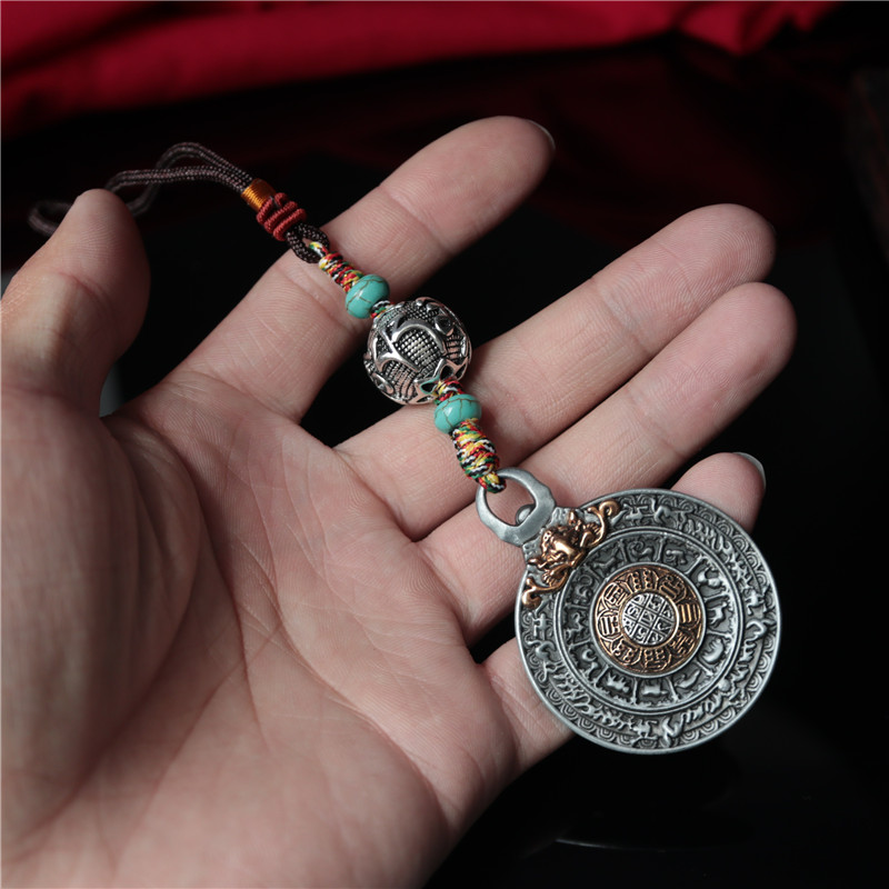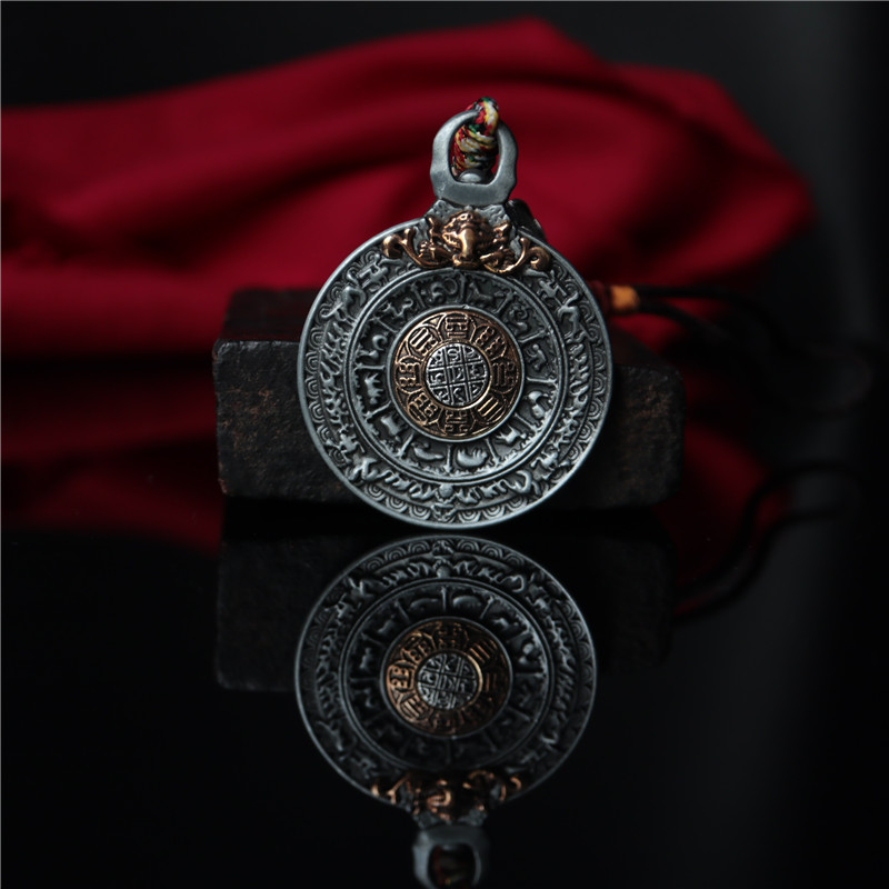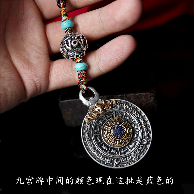 西藏直發銅合金九宮八卦牌藏式 藏八寶 六字真言 九宮 八卦牌腰牌1入