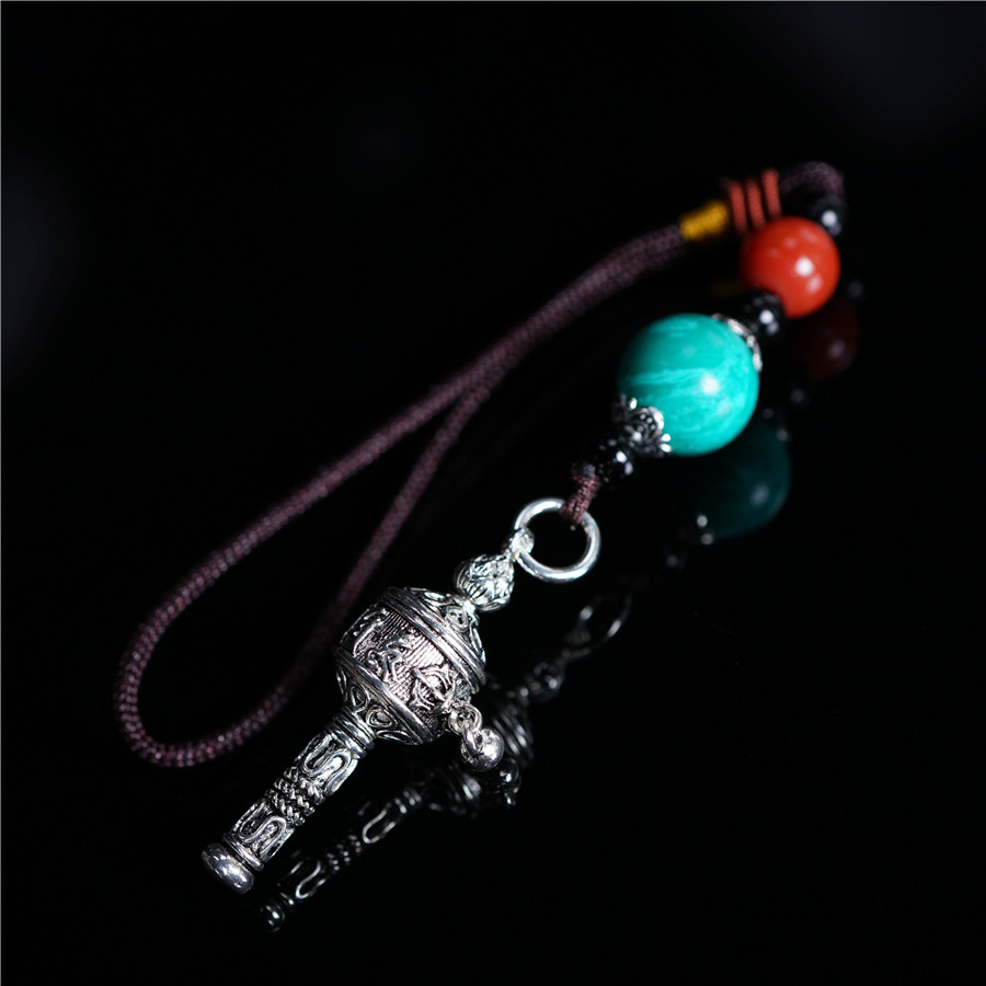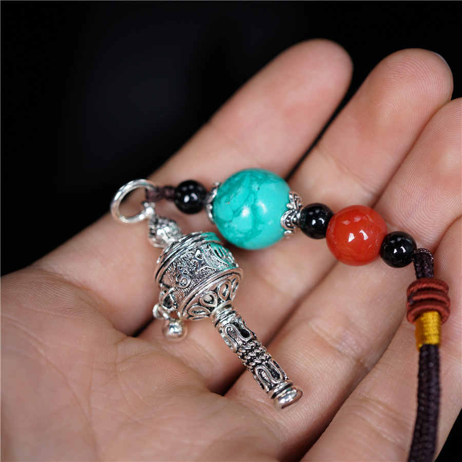藏傳手工編織原創轉經筒包掛車掛吊墜平安轉經筒鑰匙扣吊墜1入