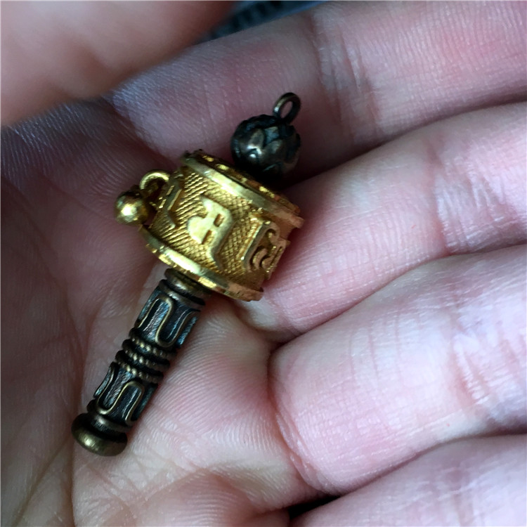 黃銅六字真言迷你轉經筒吊墜藏式 民族風 避邪轉運 轉經筒 吊墜1入