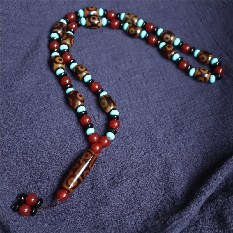 西藏直發天然九眼三眼天珠項鏈吊墜藏式瑪瑙玉髓精工九眼天珠吊墜1入