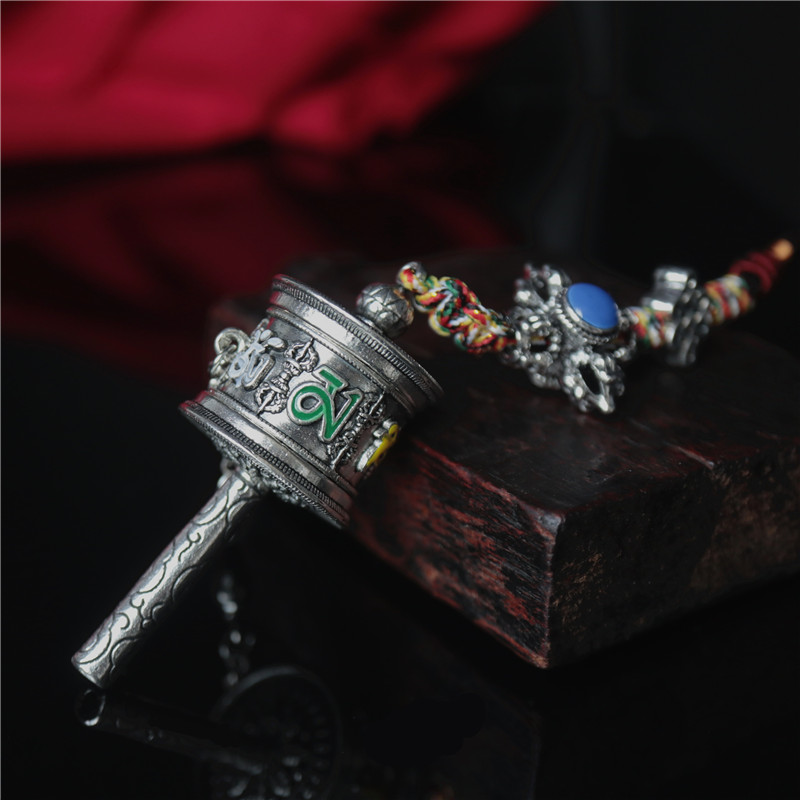 西藏直發六字真言轉經筒吊墜金剛杵配飾轉經筒鈴鐺 diy 掛飾 掛件1入