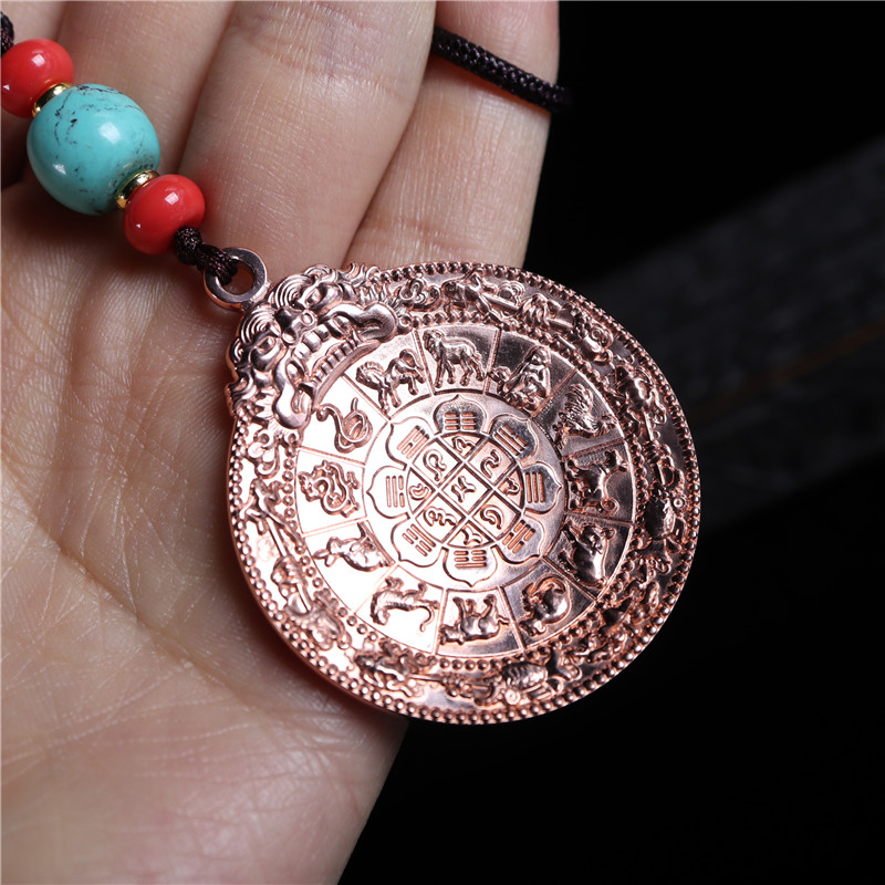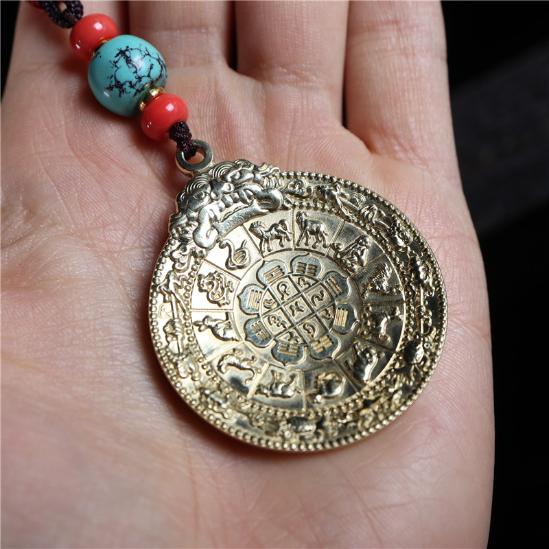 紫銅紅銅九宮八卦牌腰牌吊墜掛件車掛包掛吊墜化太歲保平安九宮牌1入