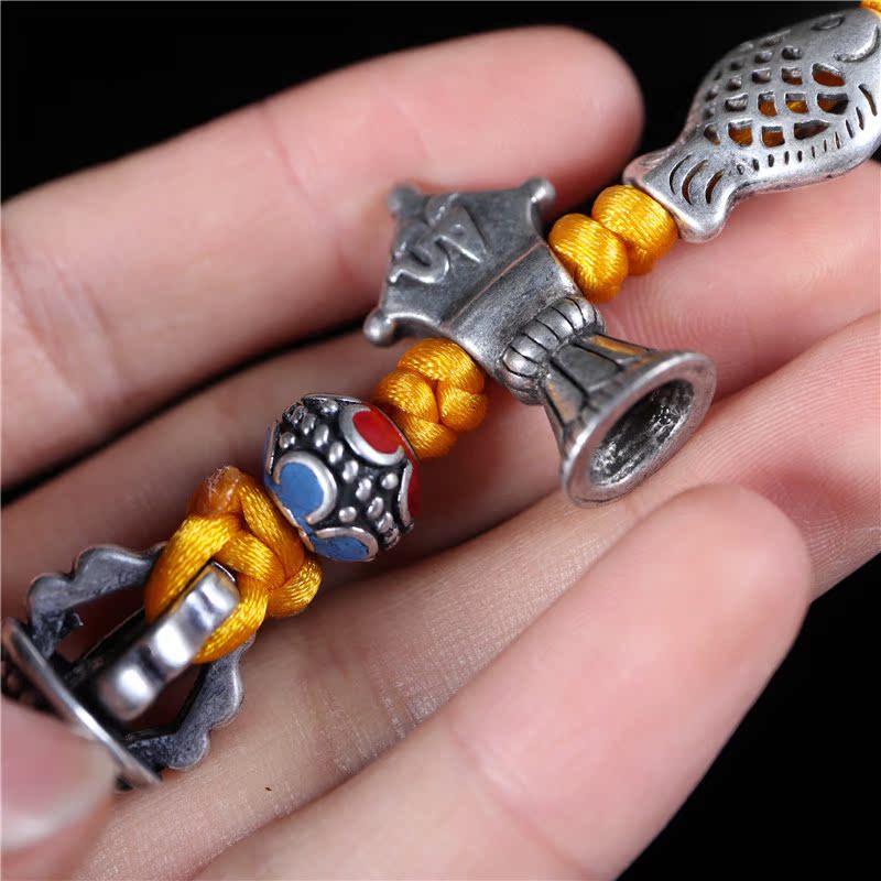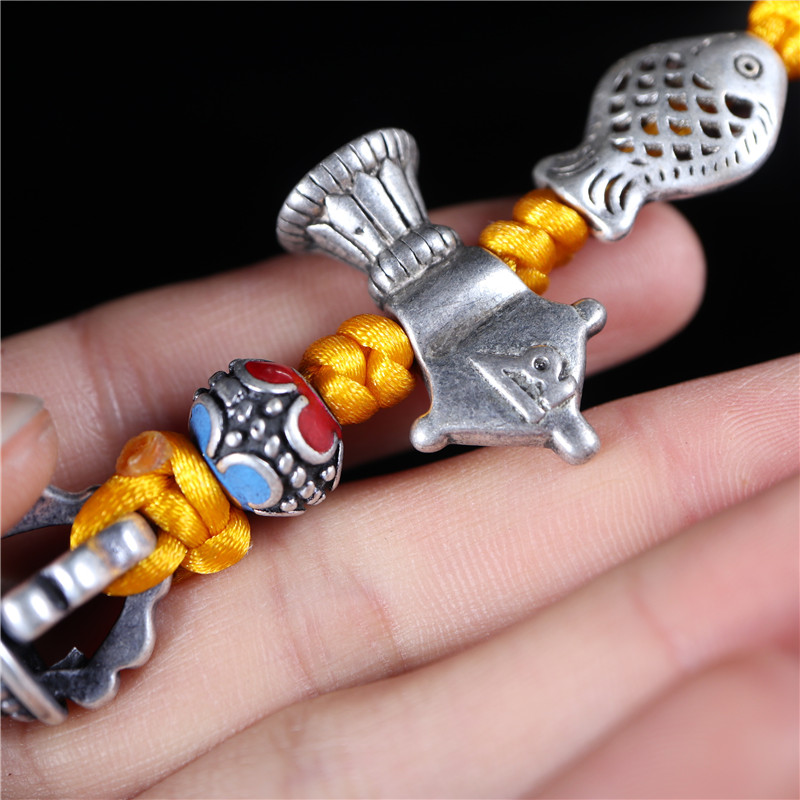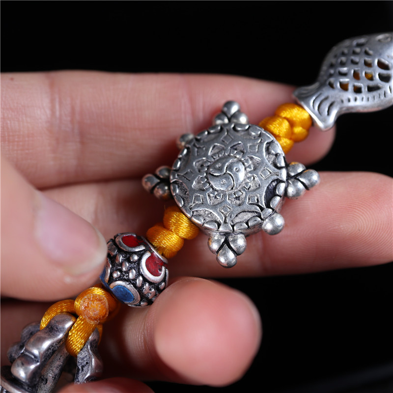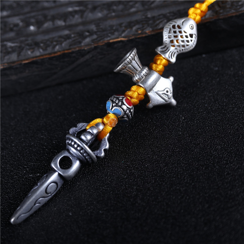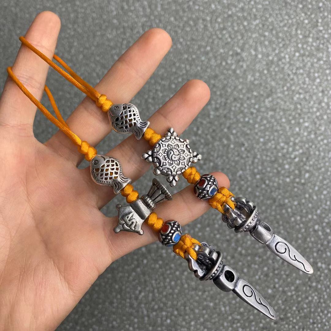 藏銀白銅原創手工編織車掛包掛鑰匙掛民族風金剛杵吊墜掛件1入