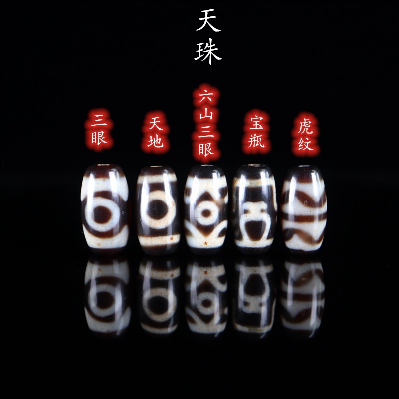 西藏老礦天珠三眼虎牙寶瓶 藏傳天珠配飾 diy佛珠手串頂珠腰珠1入