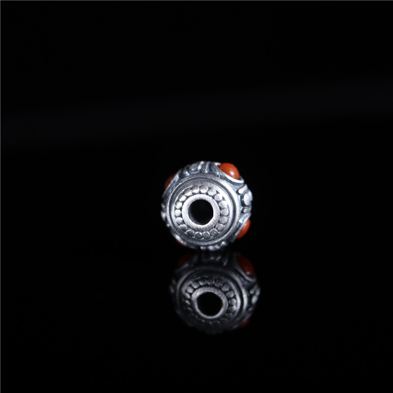 10.5mm藏式鑲嵌南紅銀配珠藏式老配珠仿老復古配珠1入