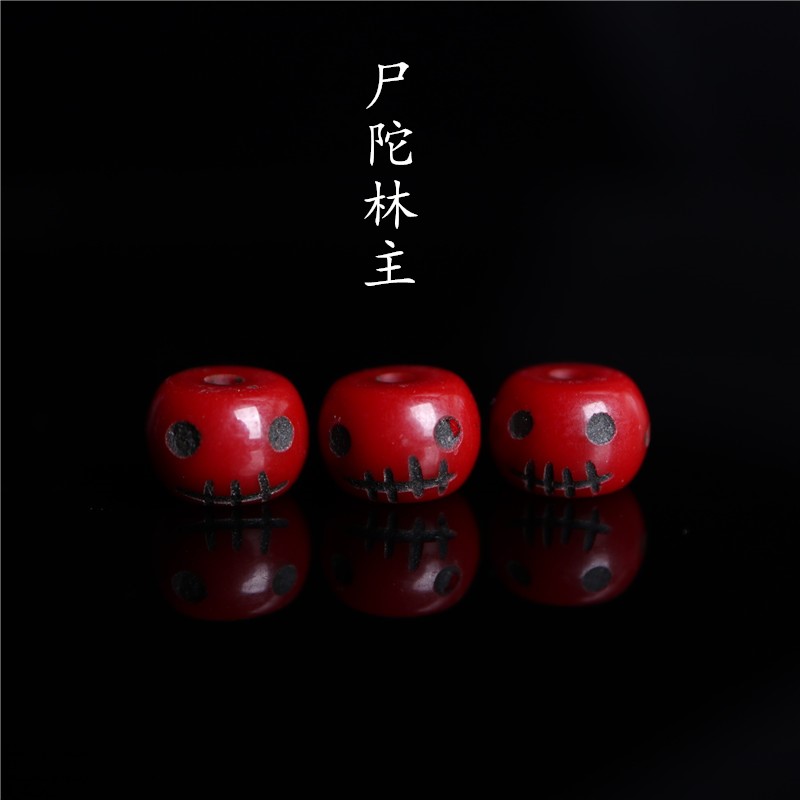 10mm藏式紅色料器尸駝林配珠念珠金剛星月菩提佛珠配件1入