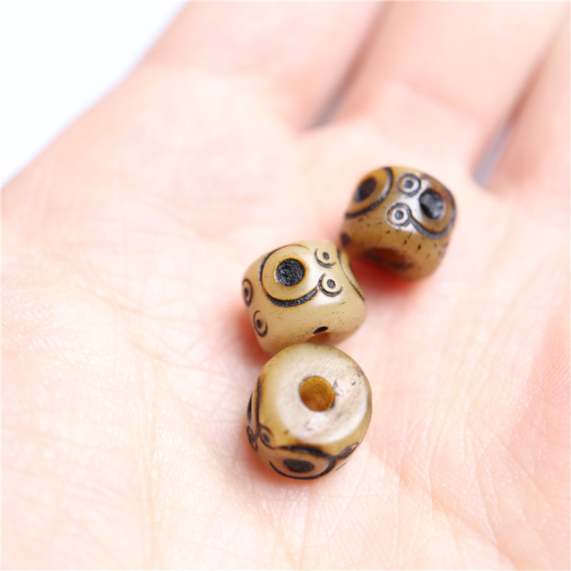 10mm藏式手工雕刻咒點?牛骨配珠金剛星月佛珠配飾配件1入
