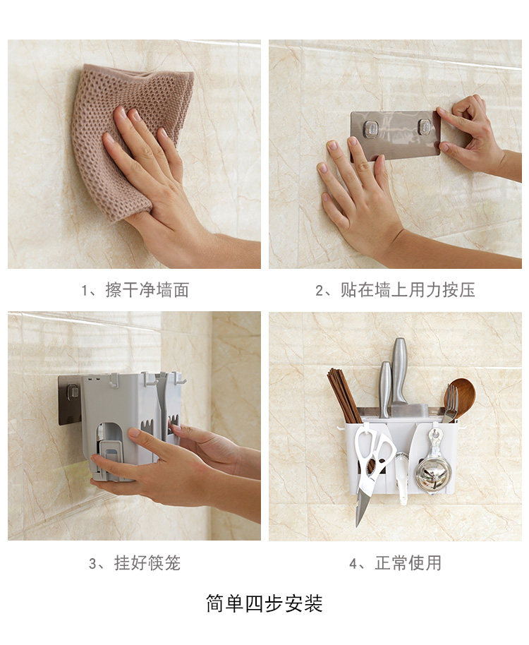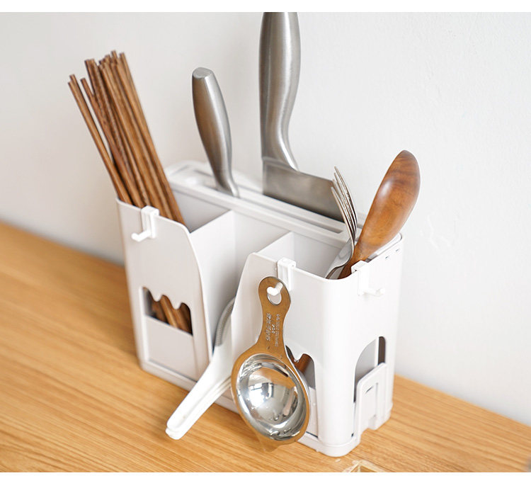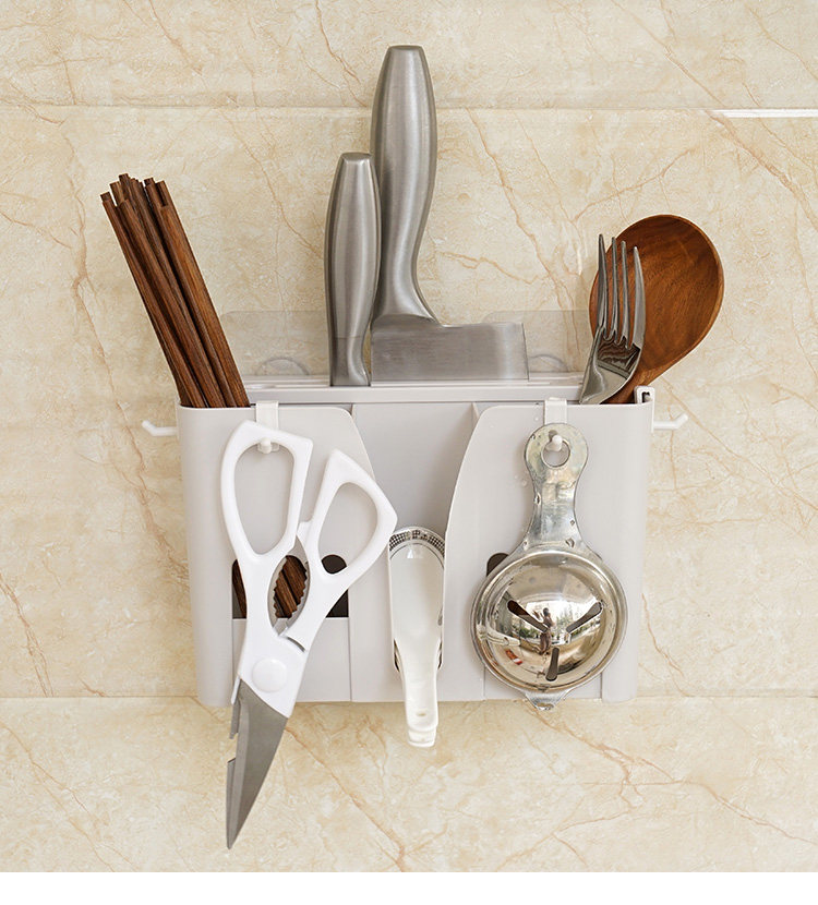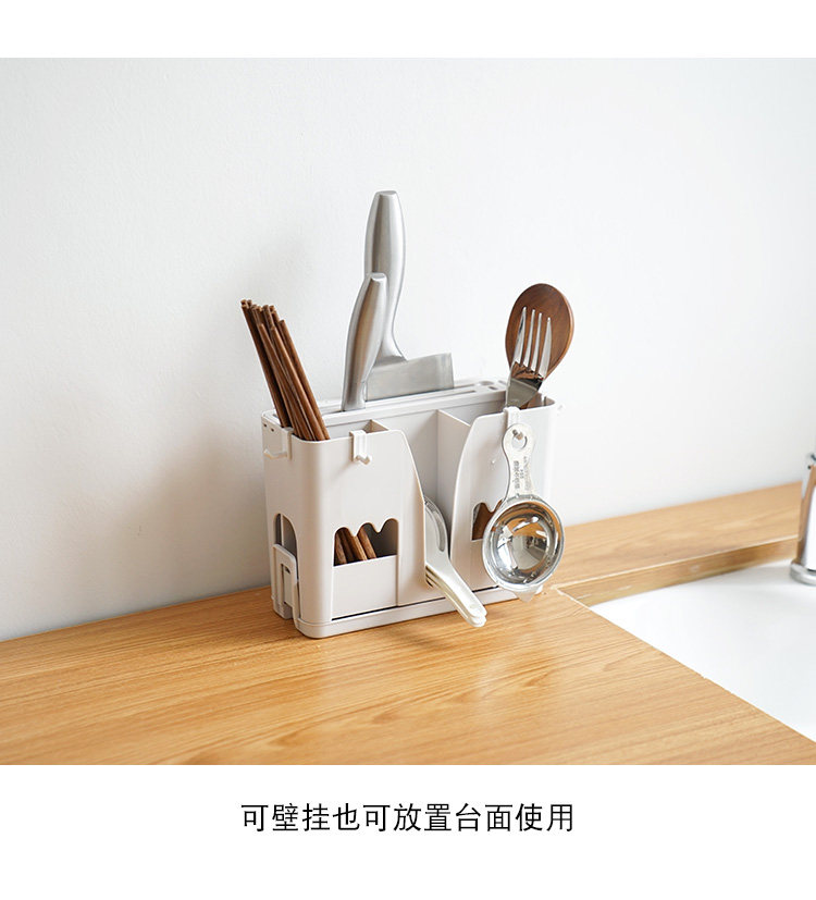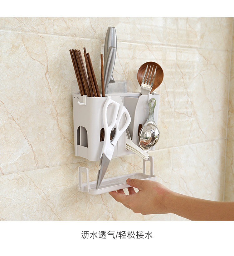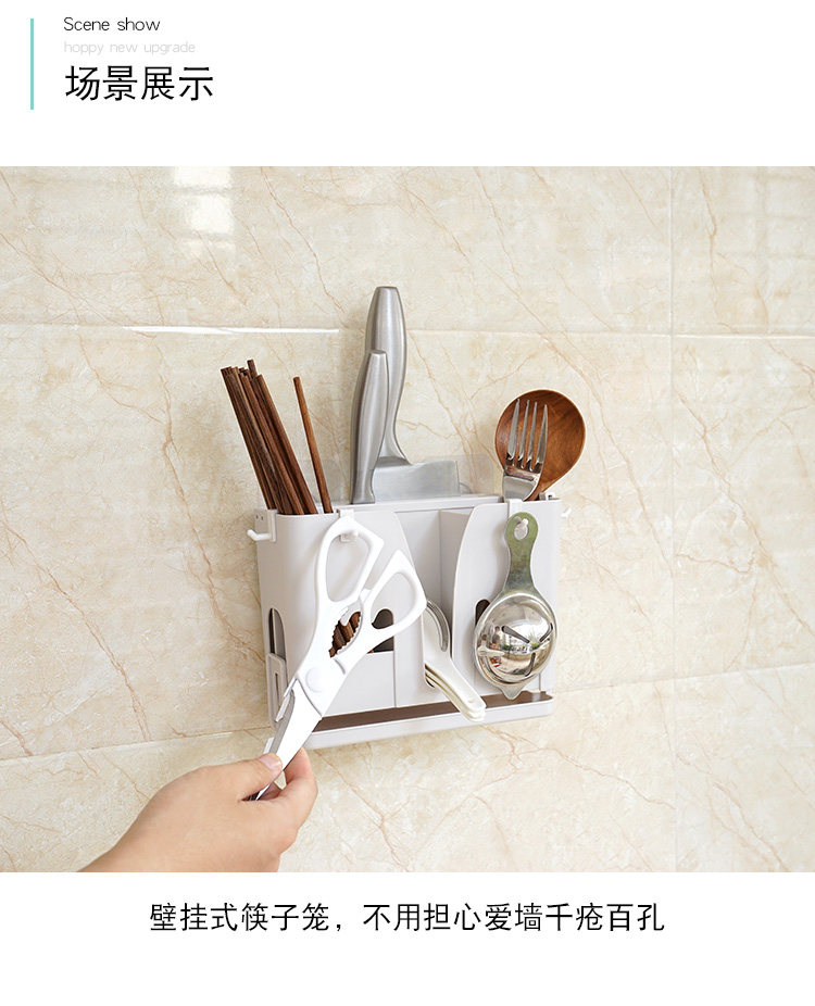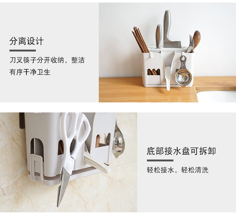 多功能掛式刀架筷子筒一體壁掛免打孔家用瀝水插筷子勺子收納架1入