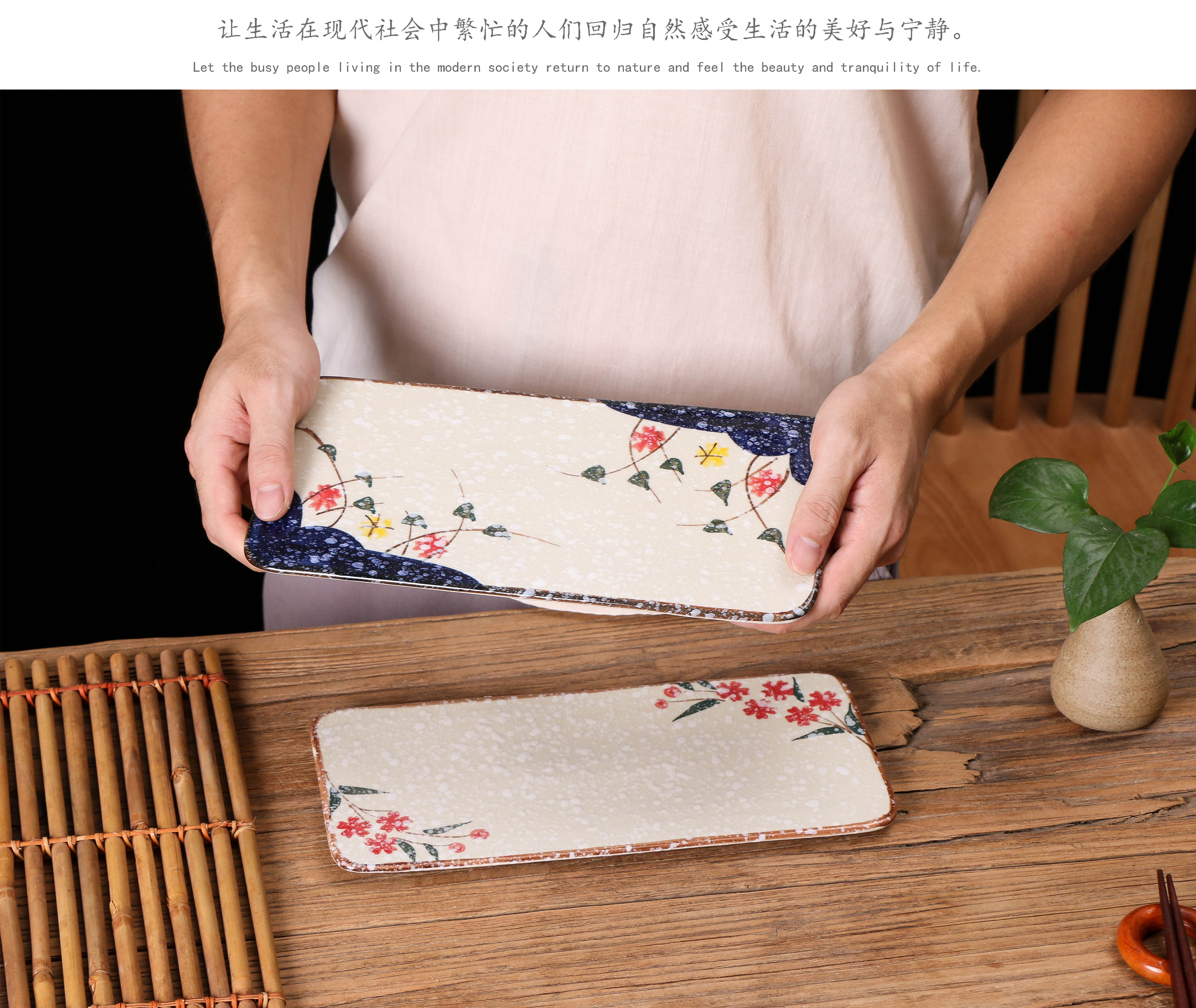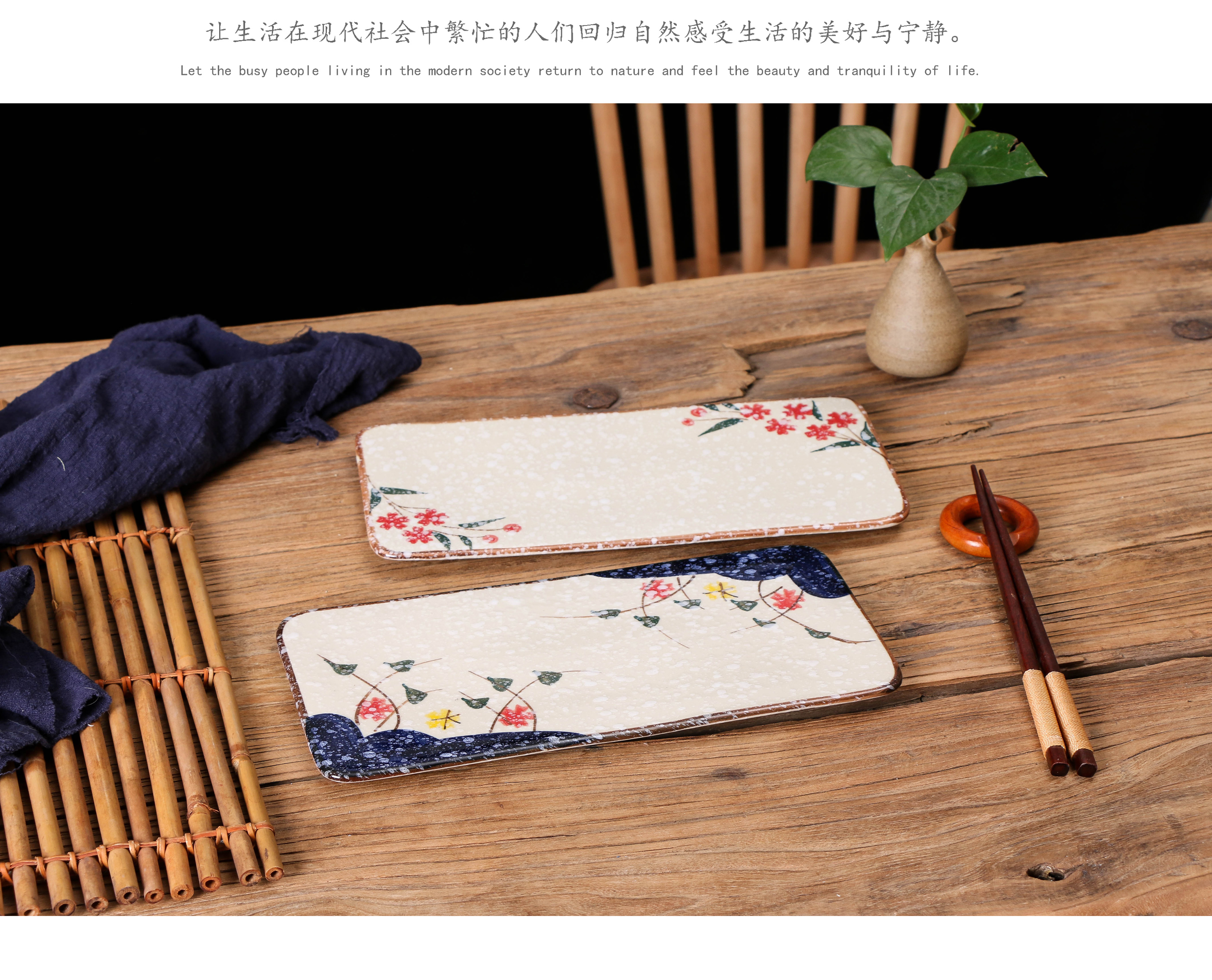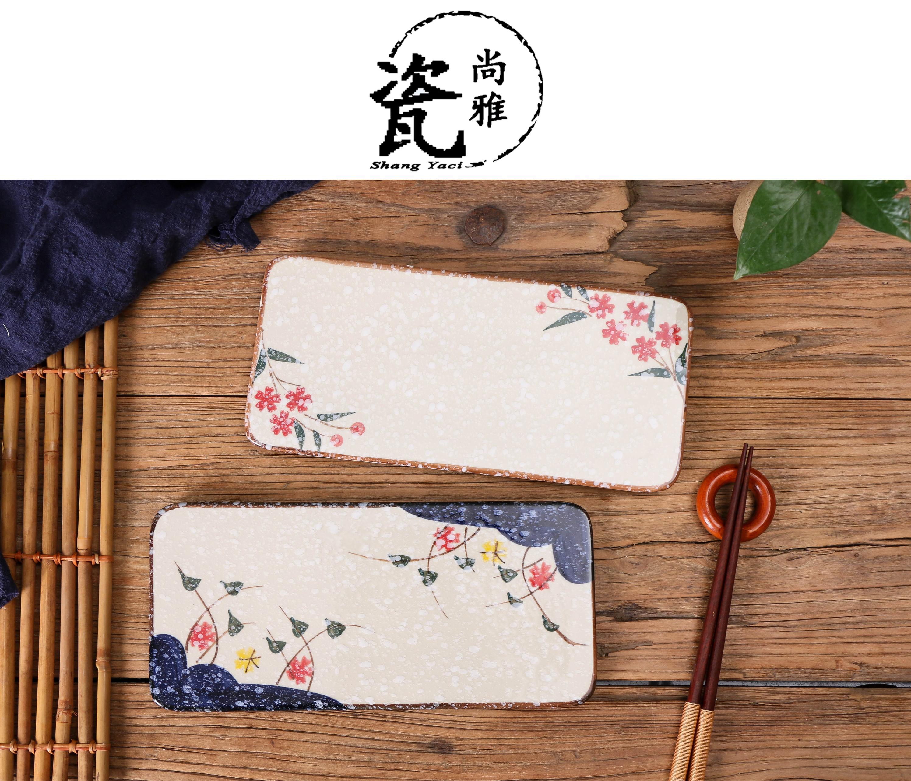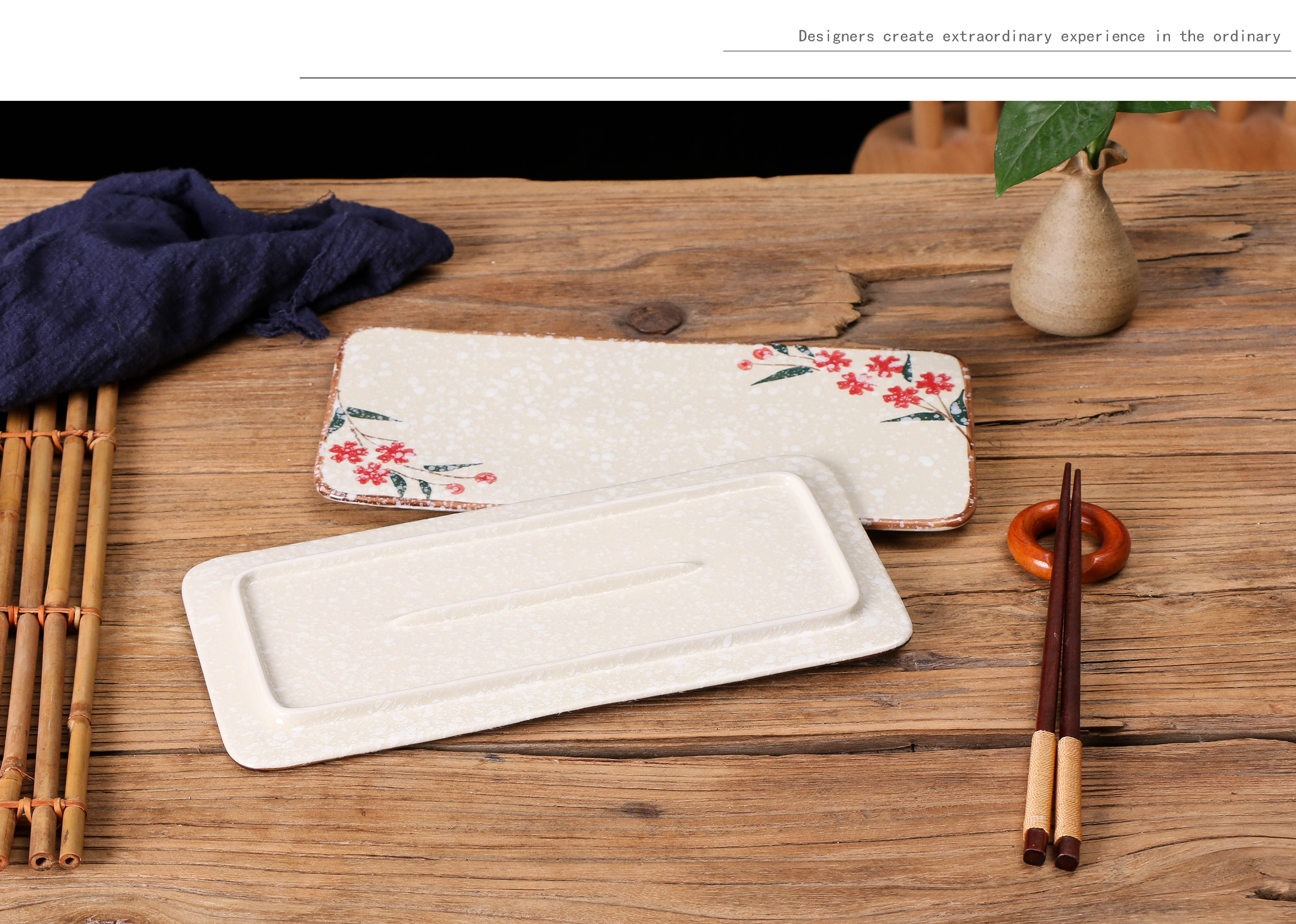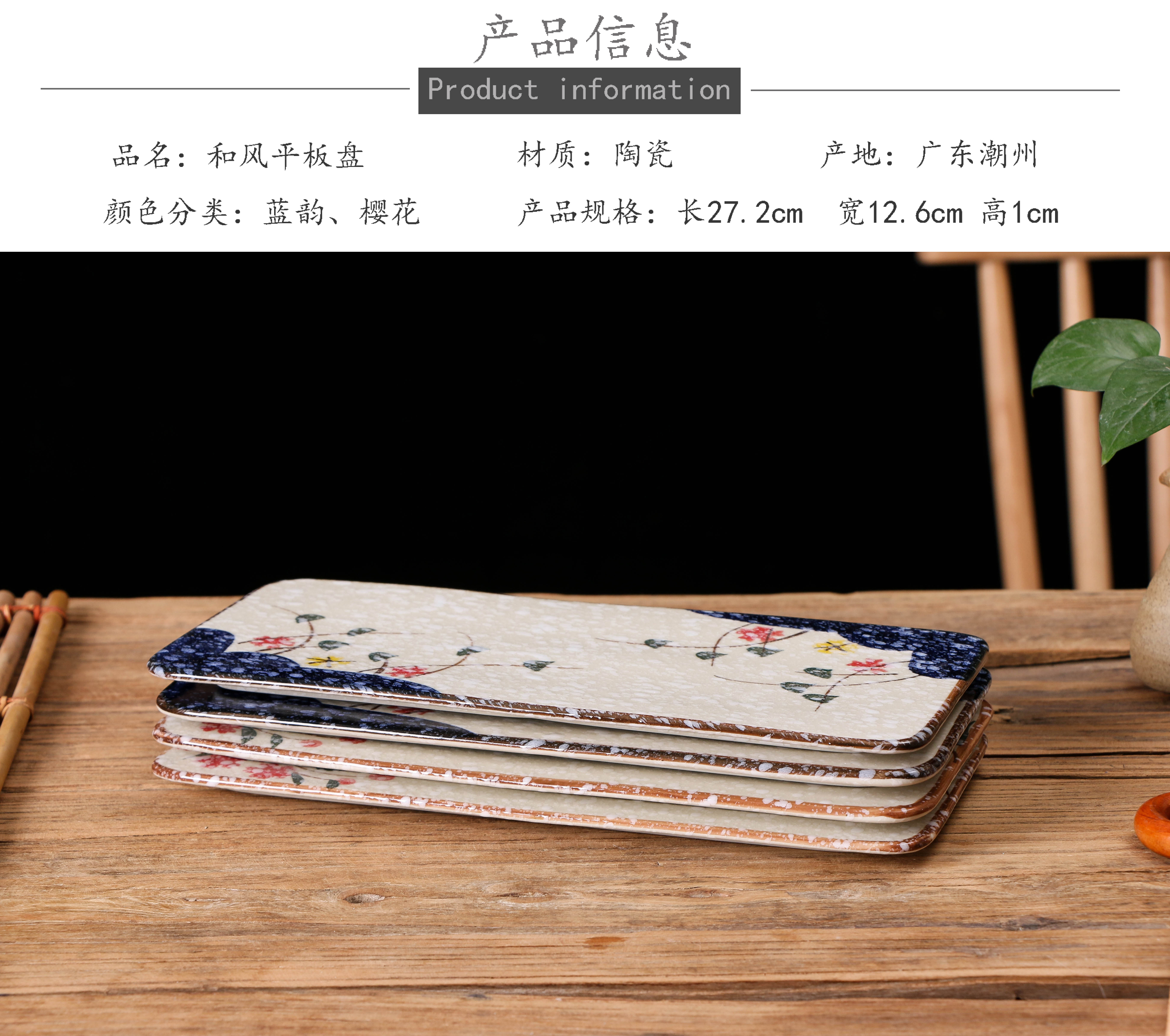 創意陶瓷日式和風平板盤長方形托盤壽司盤甜點水果盤餐廳刺身擺盤1入