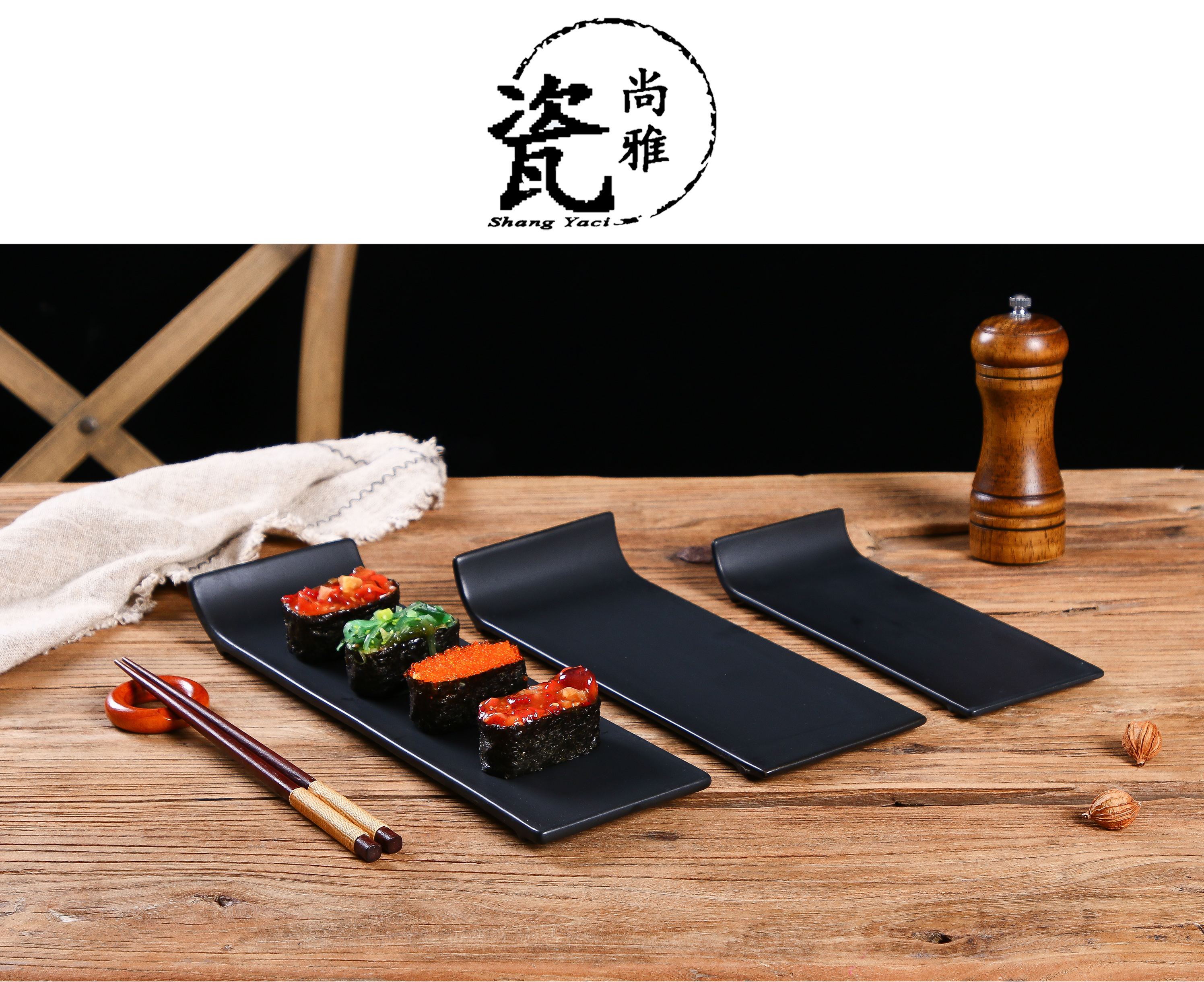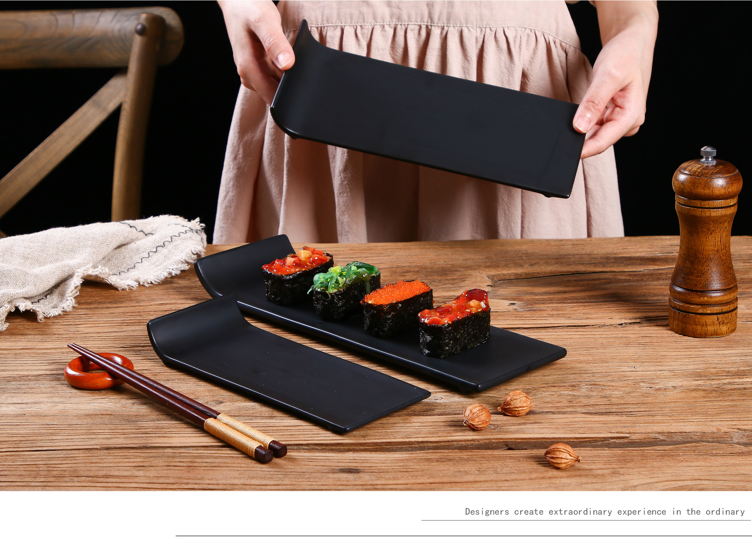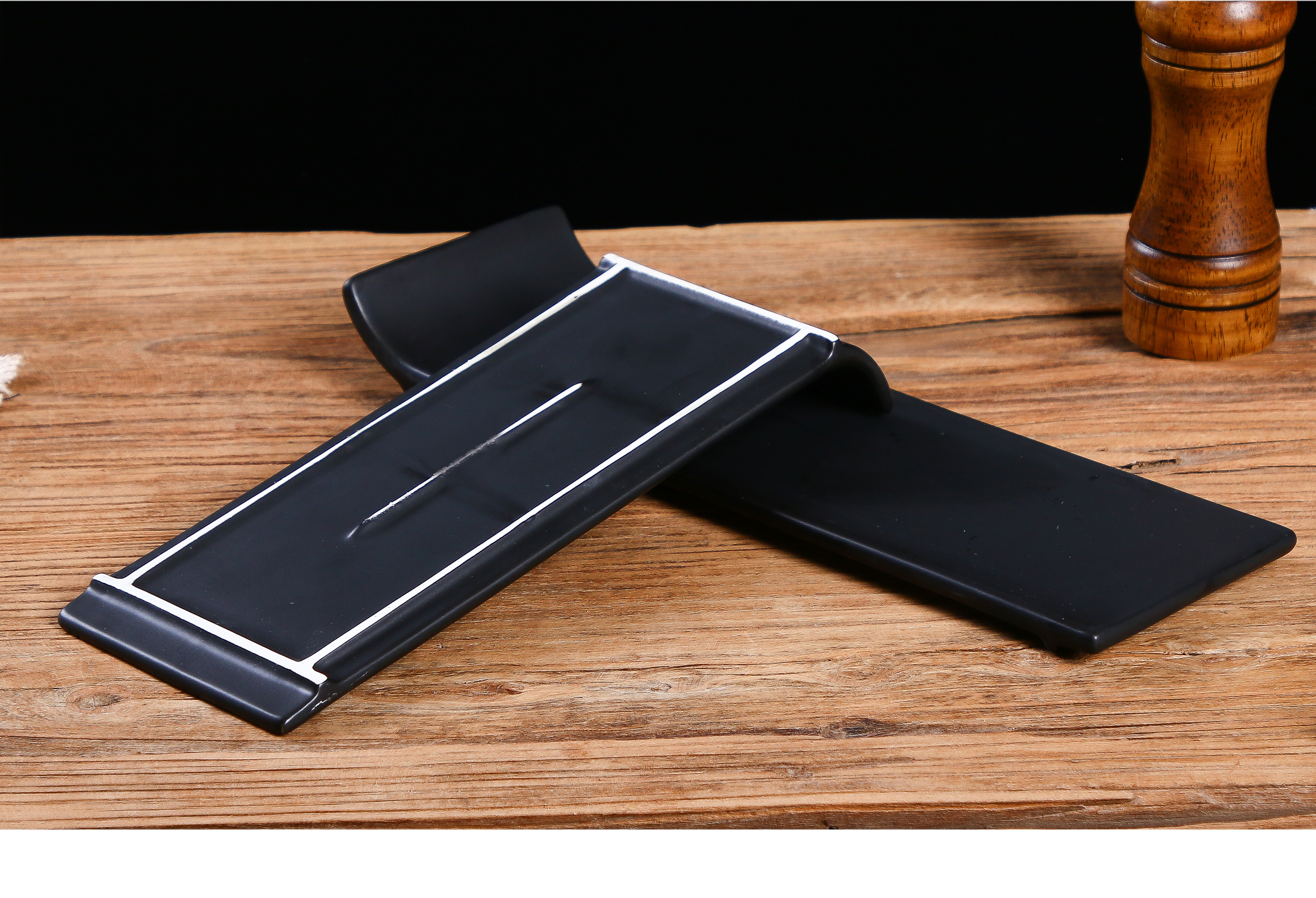 陶瓷黑色啞光平板盤日式壽司盤刺身盤蛋糕盤擺臺托盤長條冷菜盤子1入