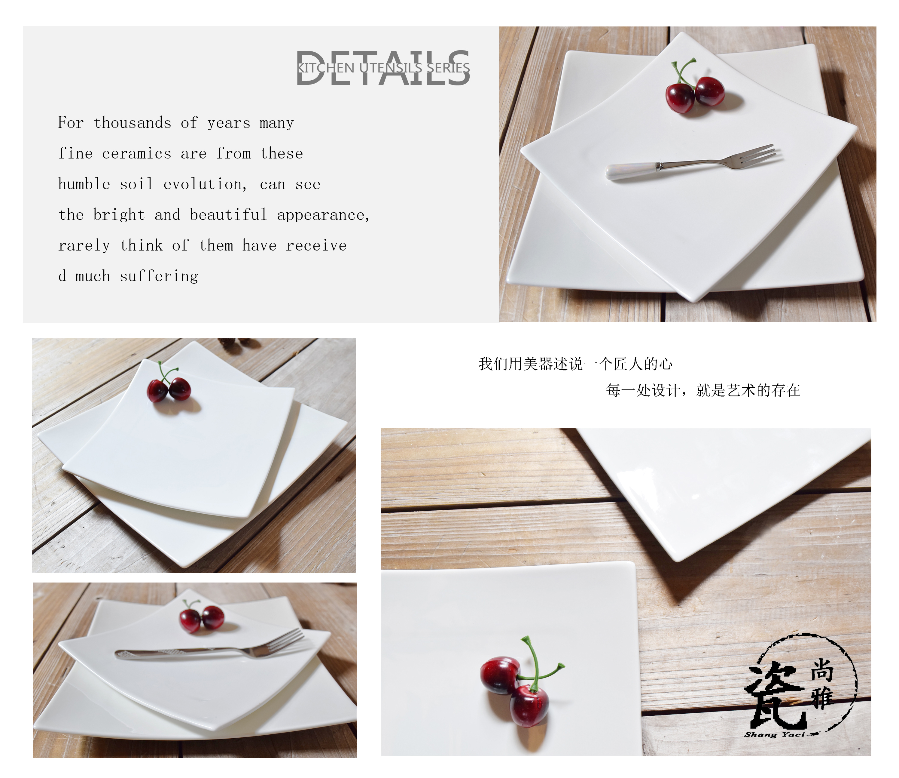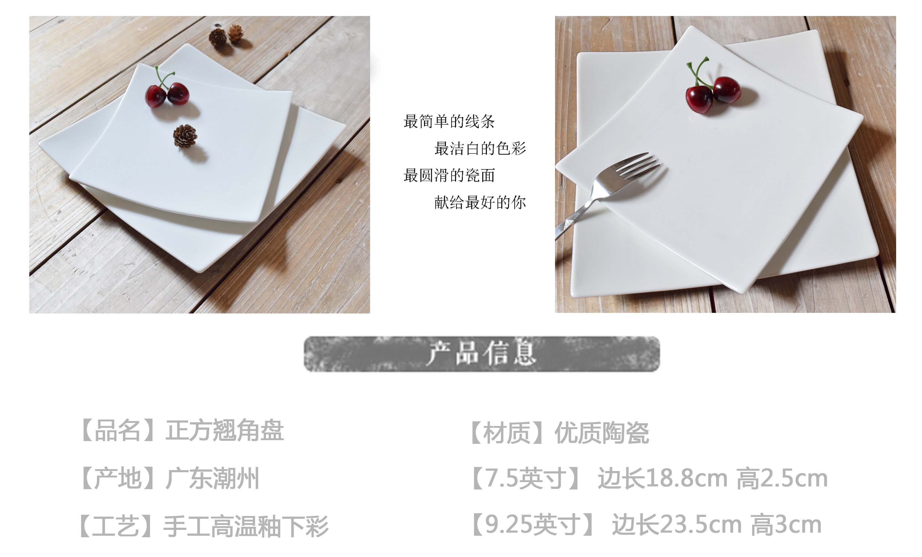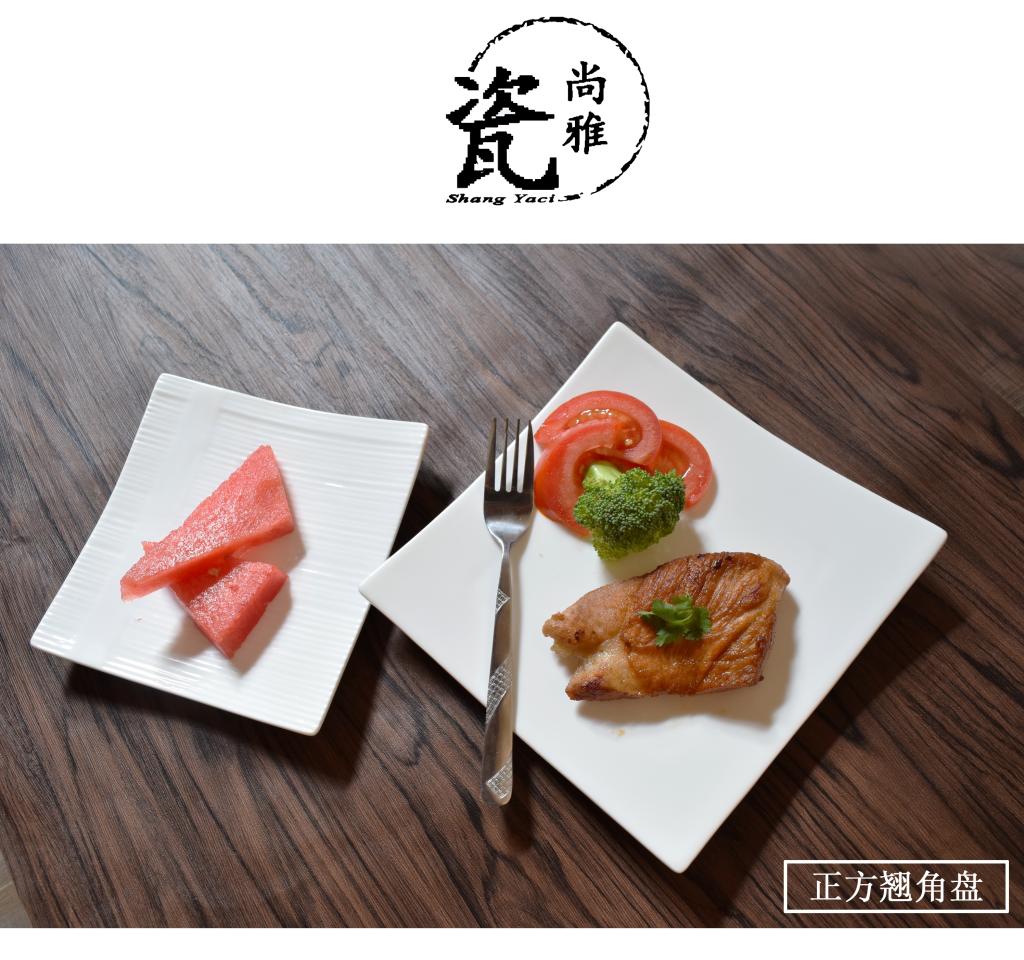西餐盤翹角盤酒店陶瓷盤子牛排盤意面平盤點心盤正方餐具家用菜盤1入