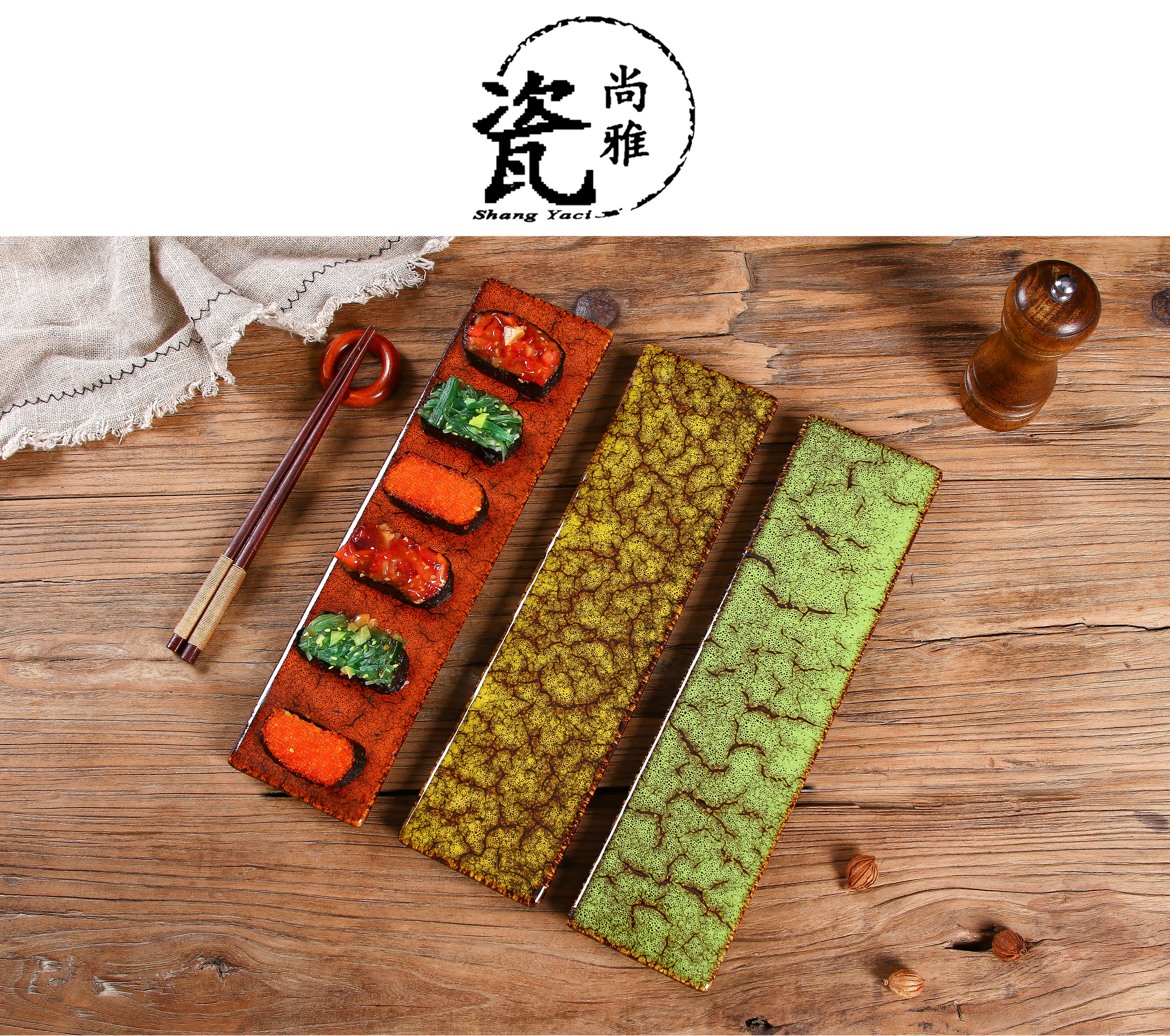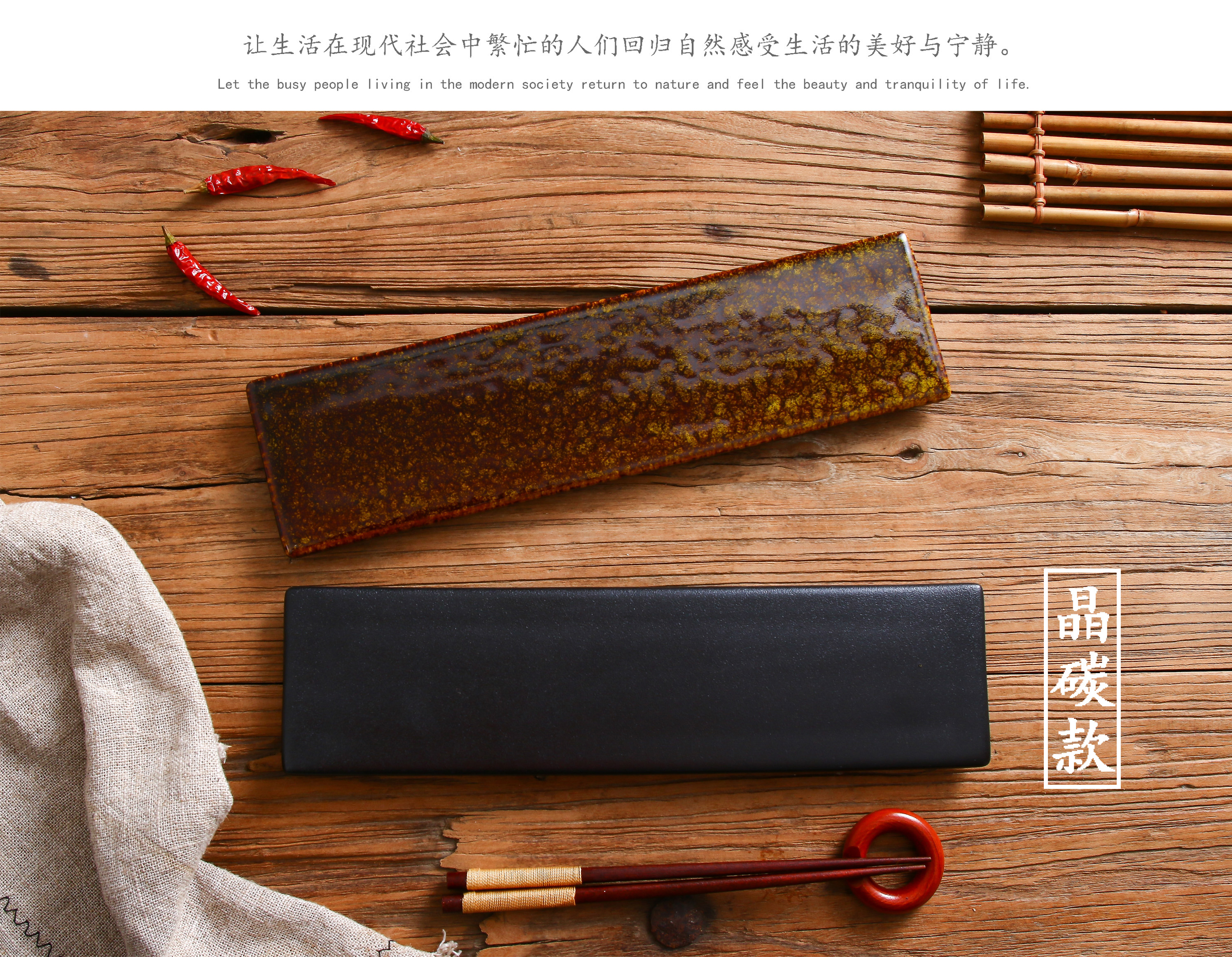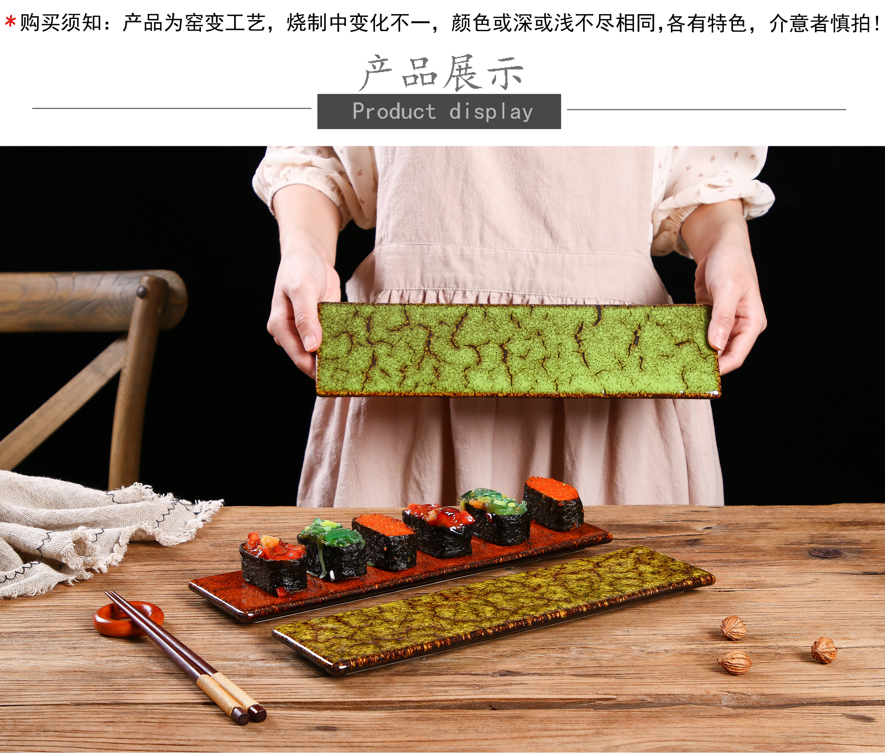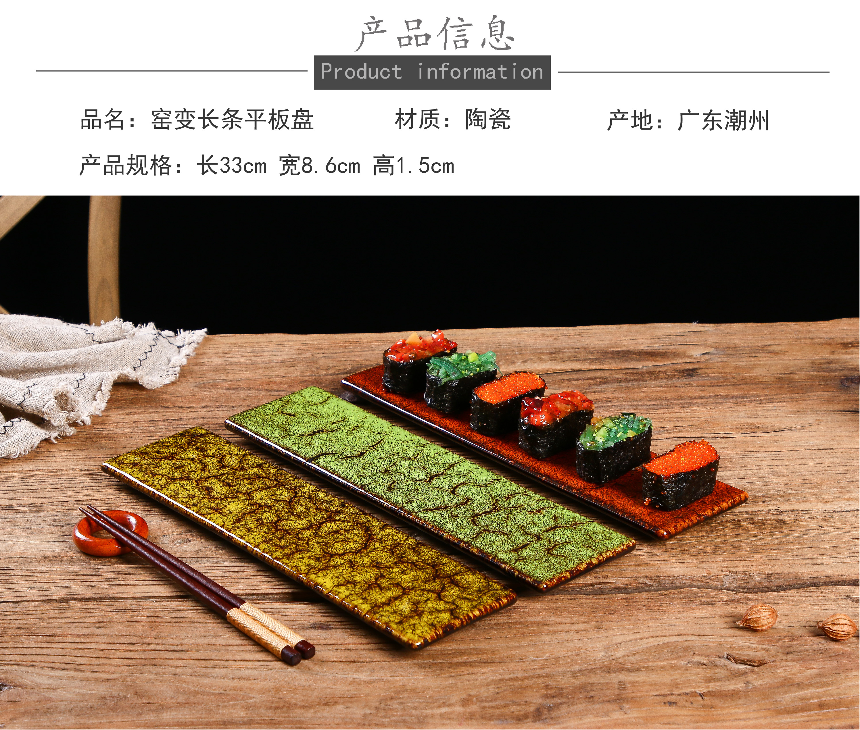 創意日式陶瓷窯變長條平板盤托盤壽司盤點心蛋糕盤餐廳擺臺刺身盤1入