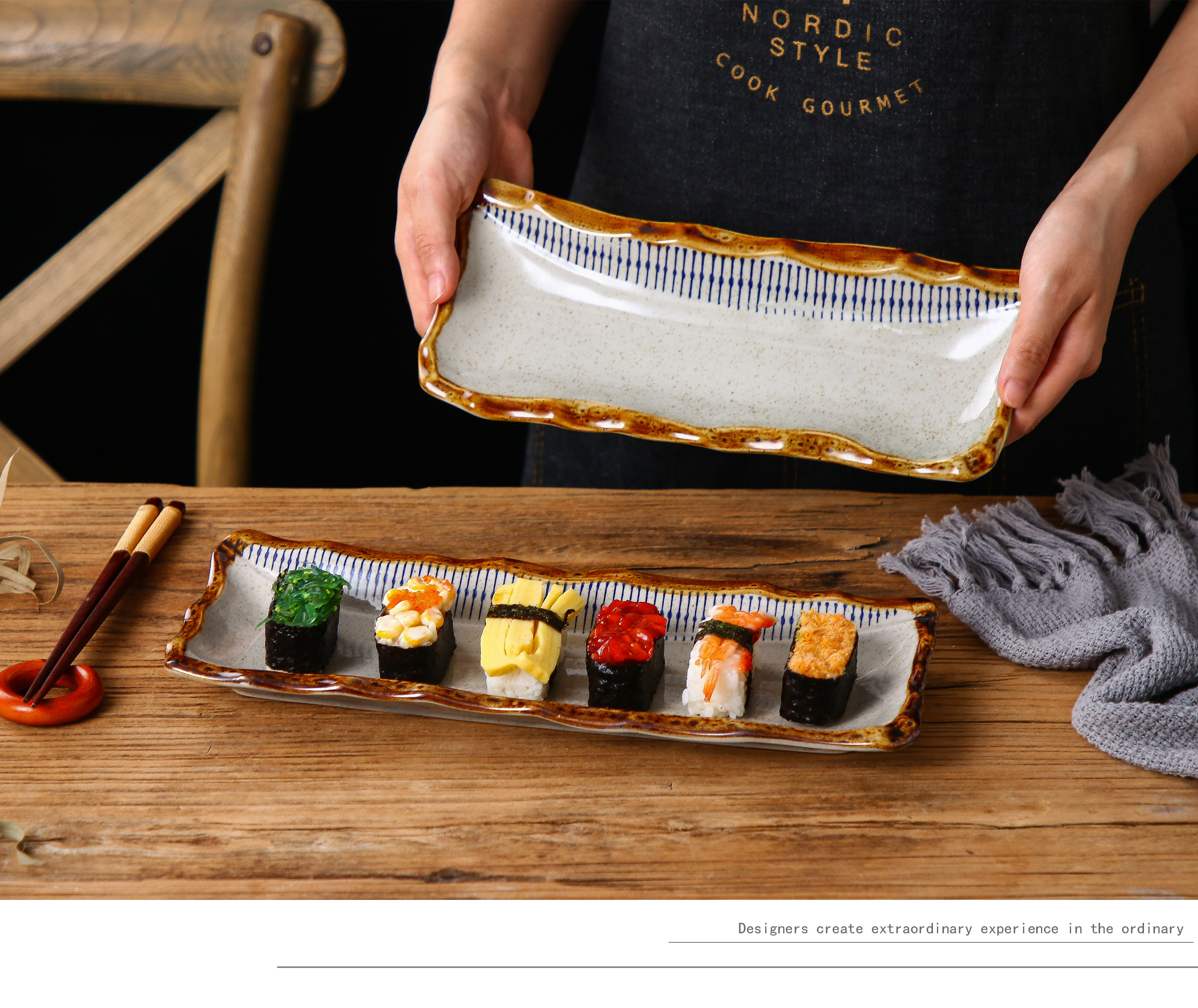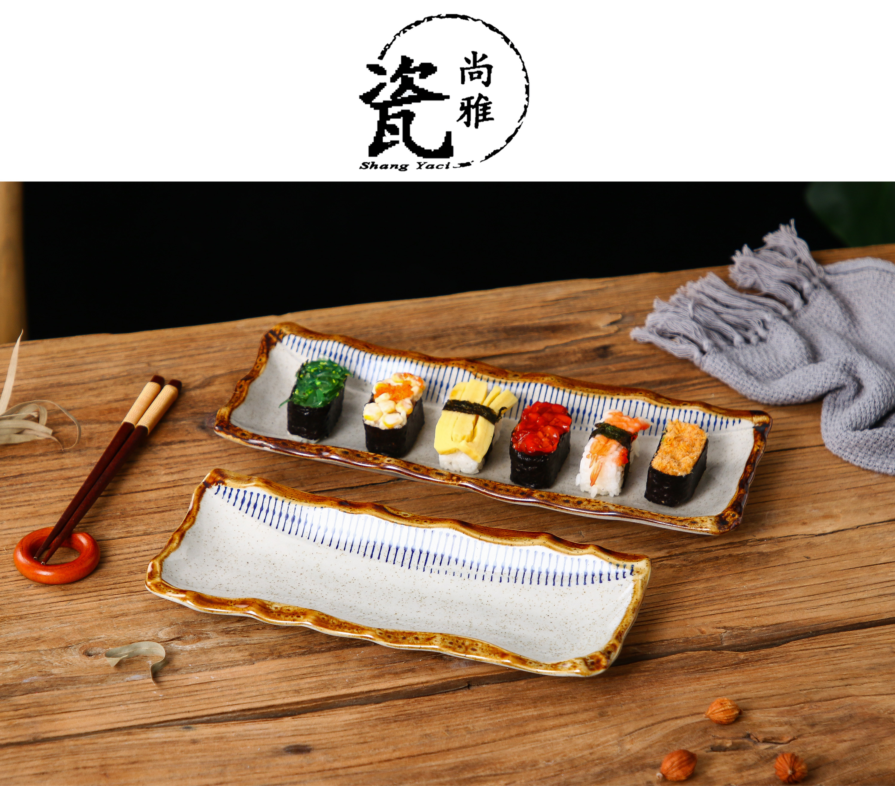 陶瓷日式長條盤壽司盤刺身盤餐廳擺臺盤商用菜盤子水果盤異形盤子1入
