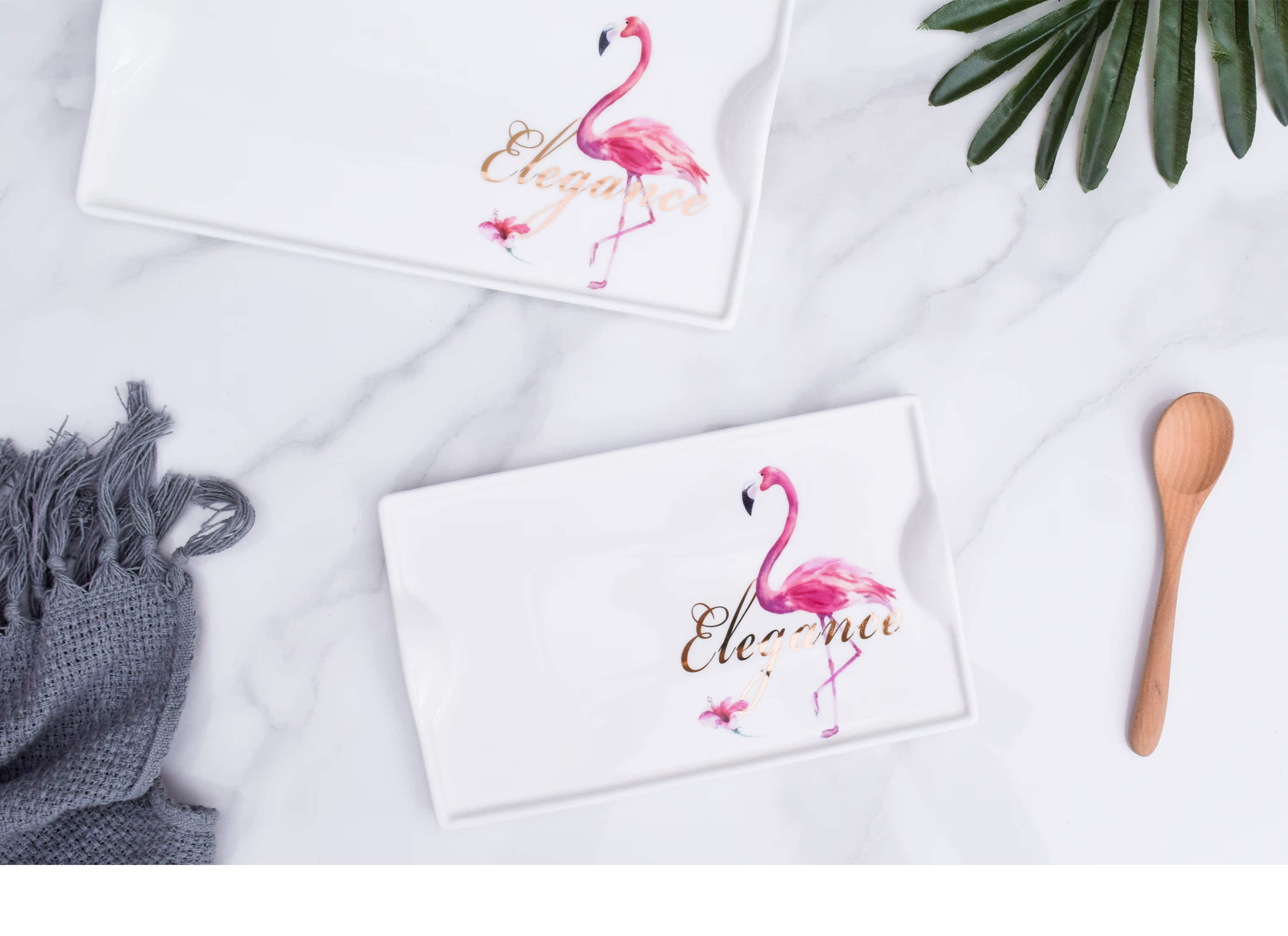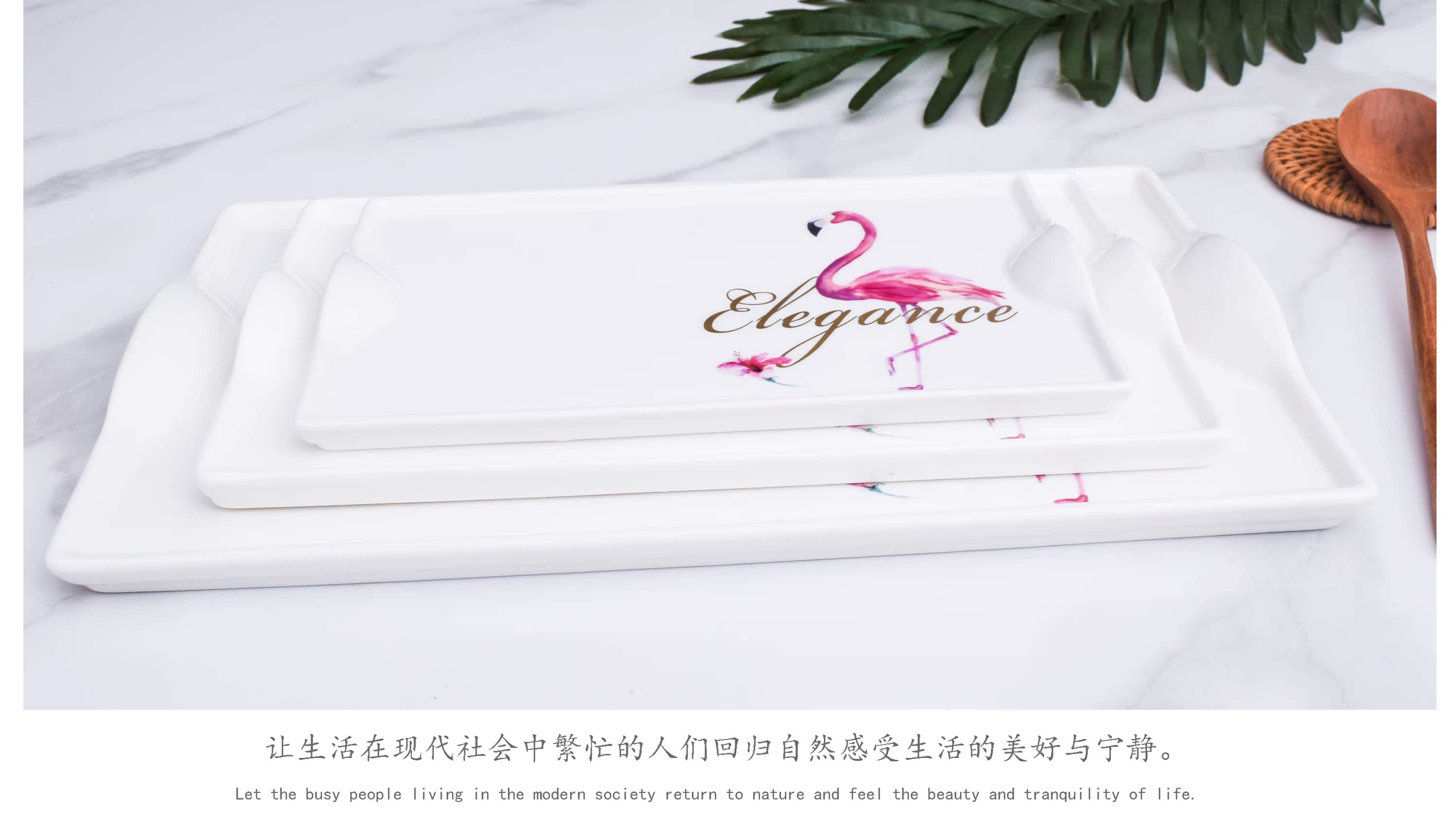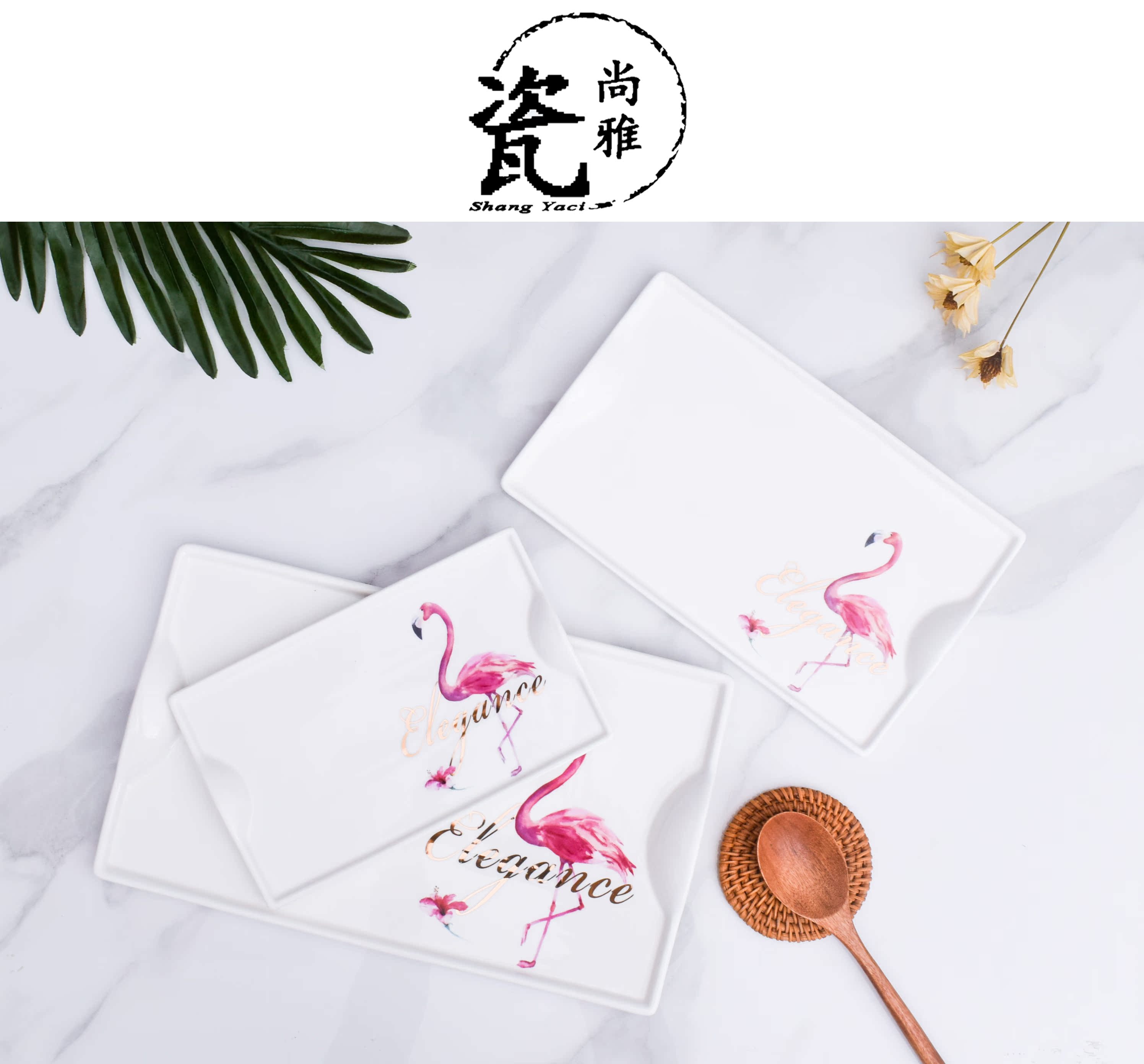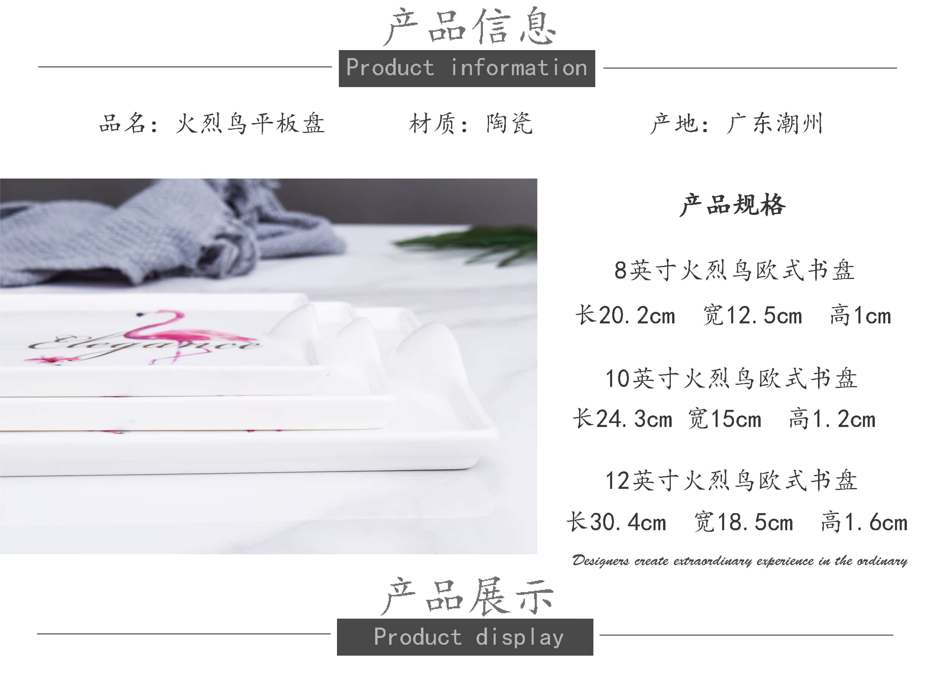 創意陶瓷火烈鳥長方托盤蛋糕平盤小吃碟早餐盤甜品擺盤烘焙菜盤子1入