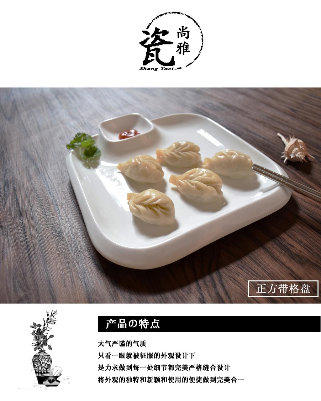 餃子盤多用調料碟陶瓷碟點心盤飯盤創意西餐盤涼菜盤家用四方盤子1入