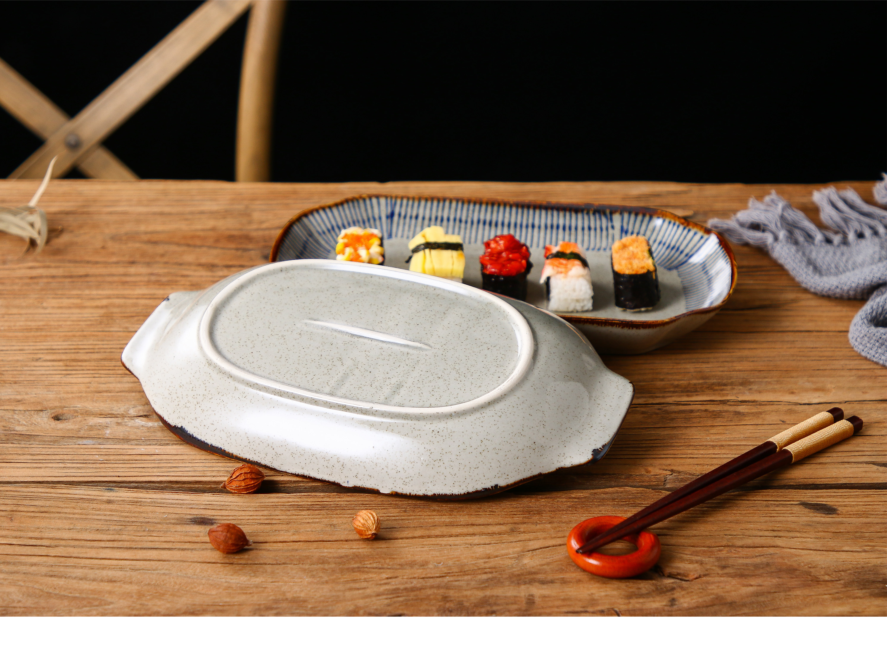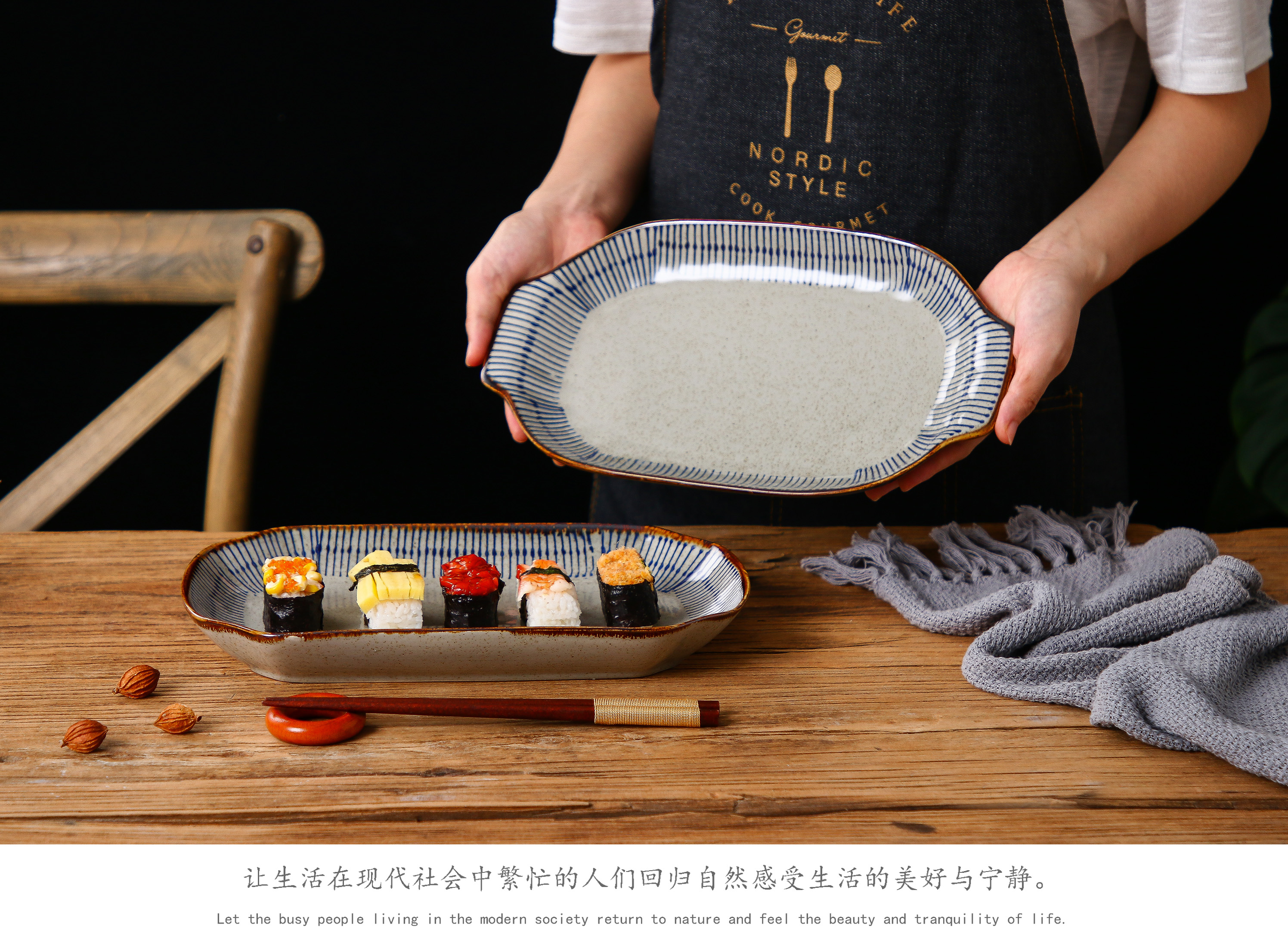 創意和風陶瓷長方盤深盤魚盤水果盤日式餐廳擺臺盤子家用盤子商用1入