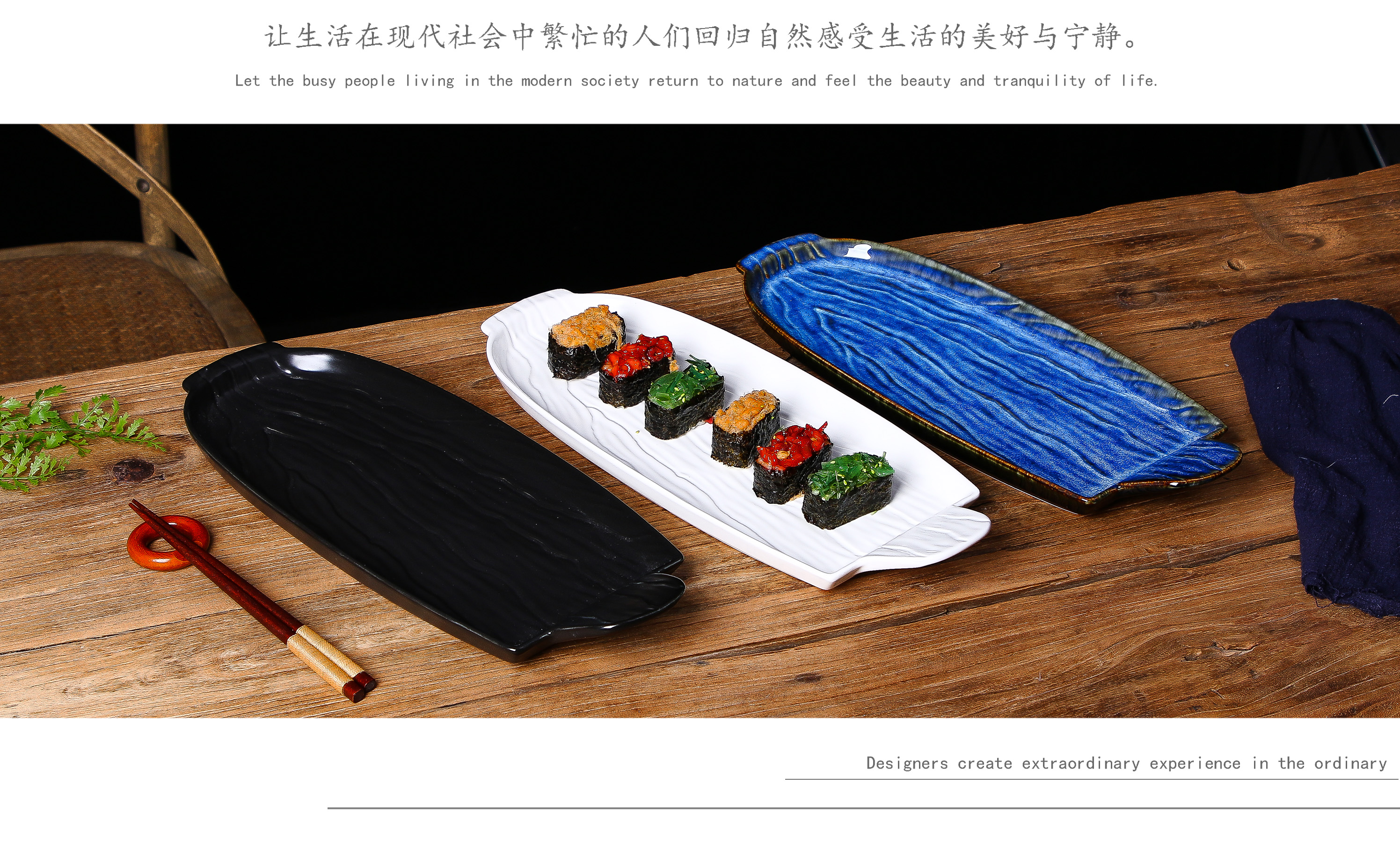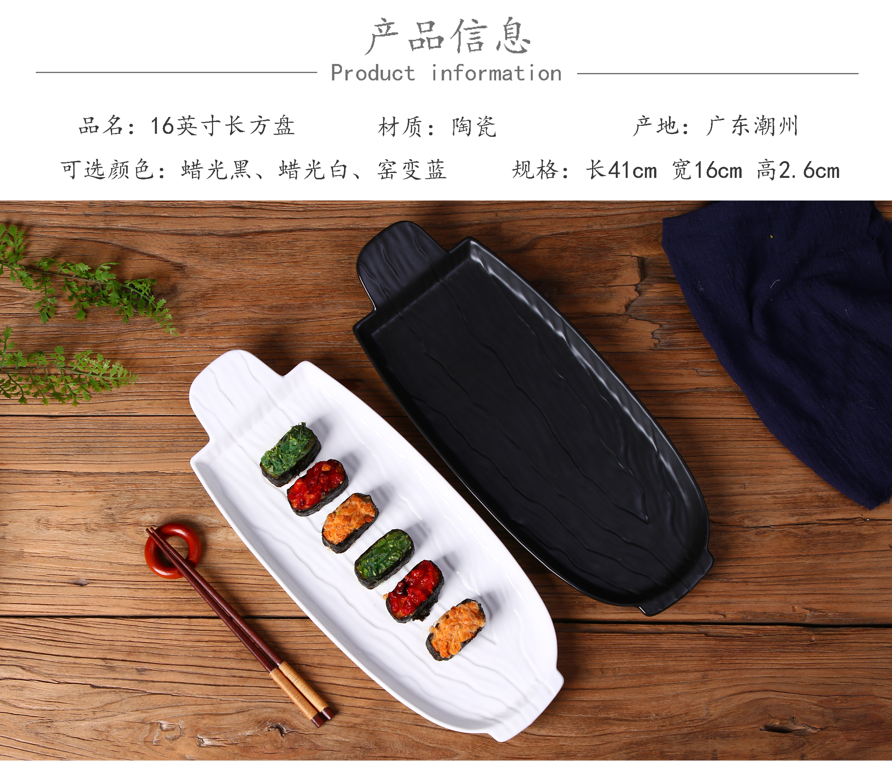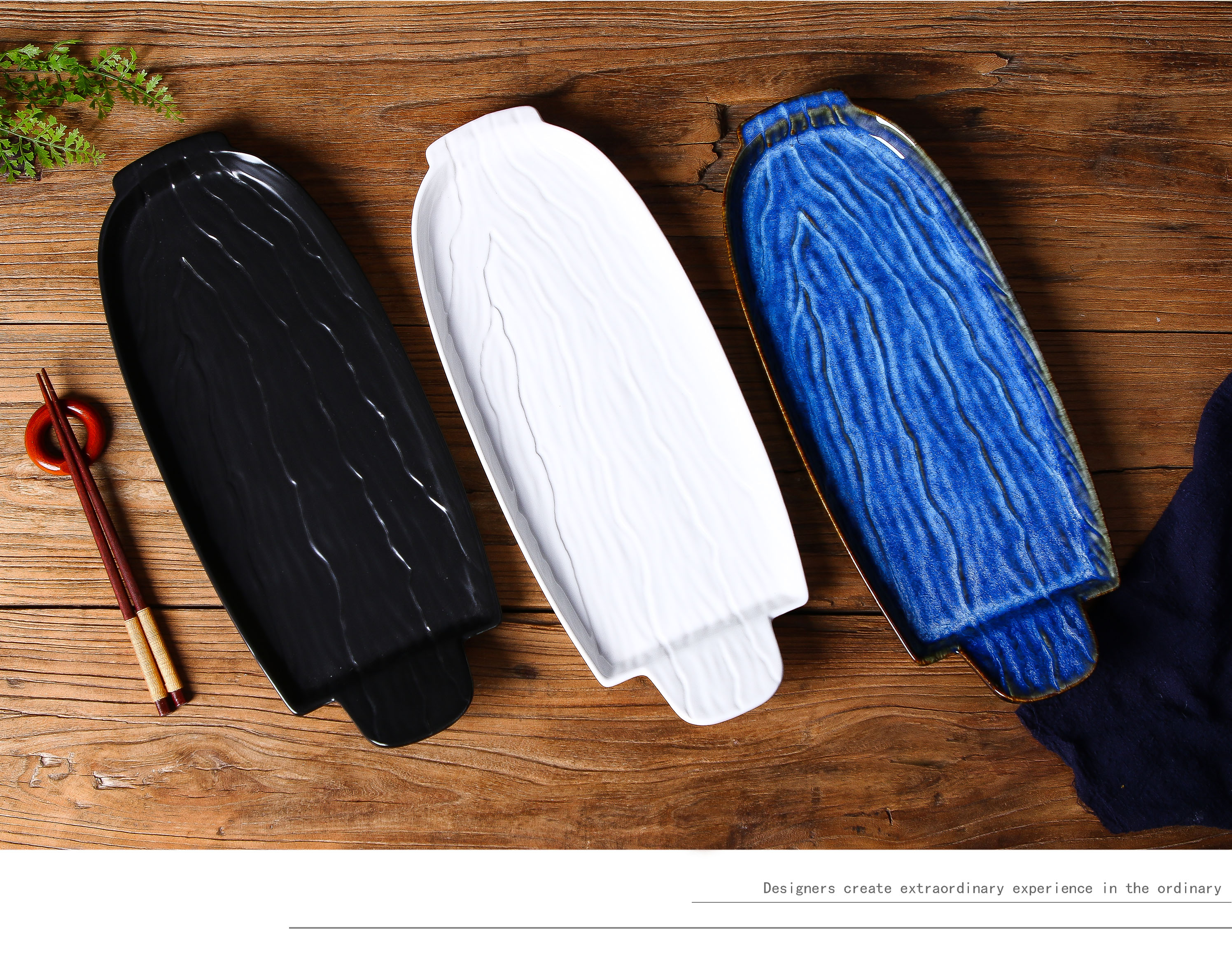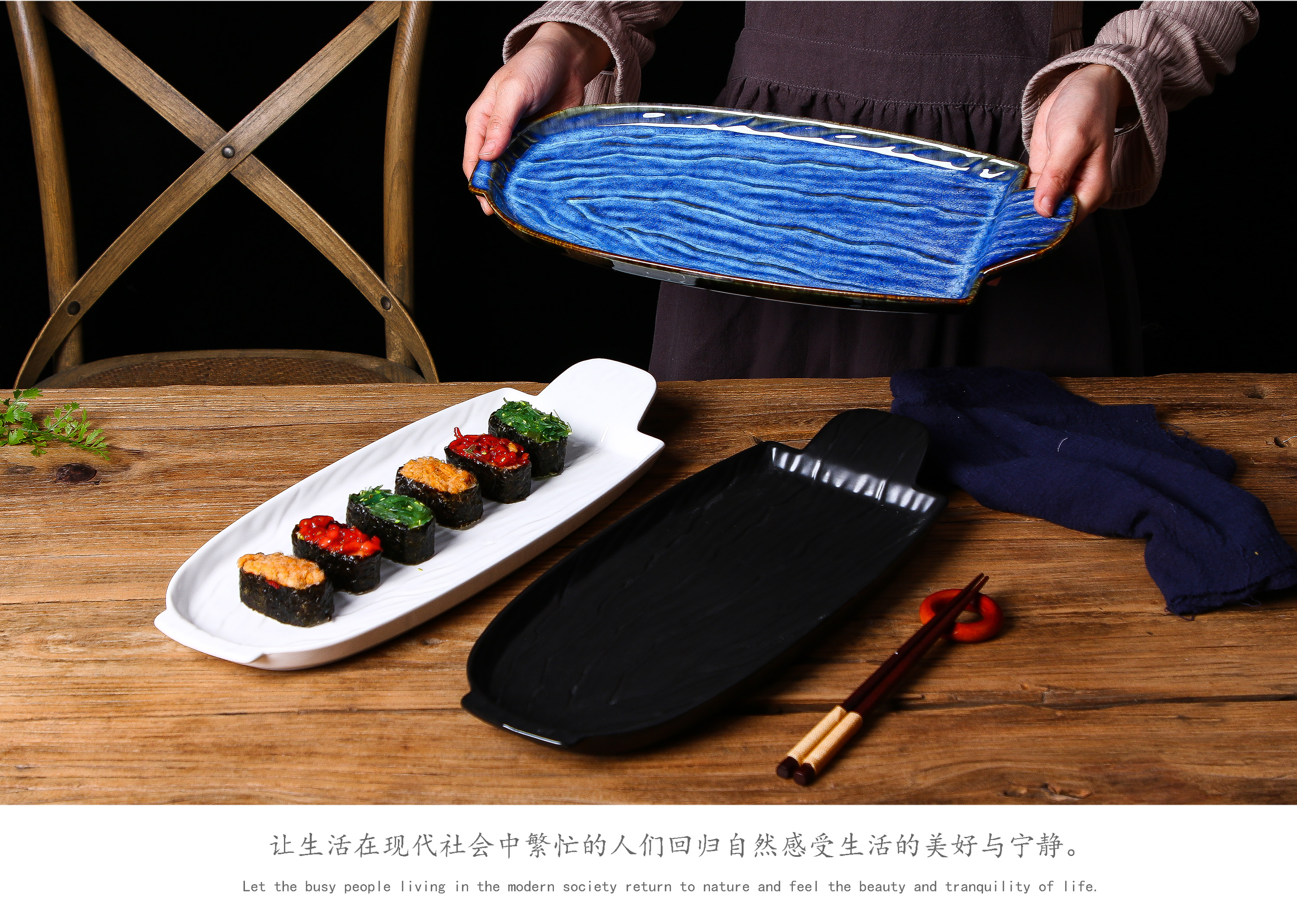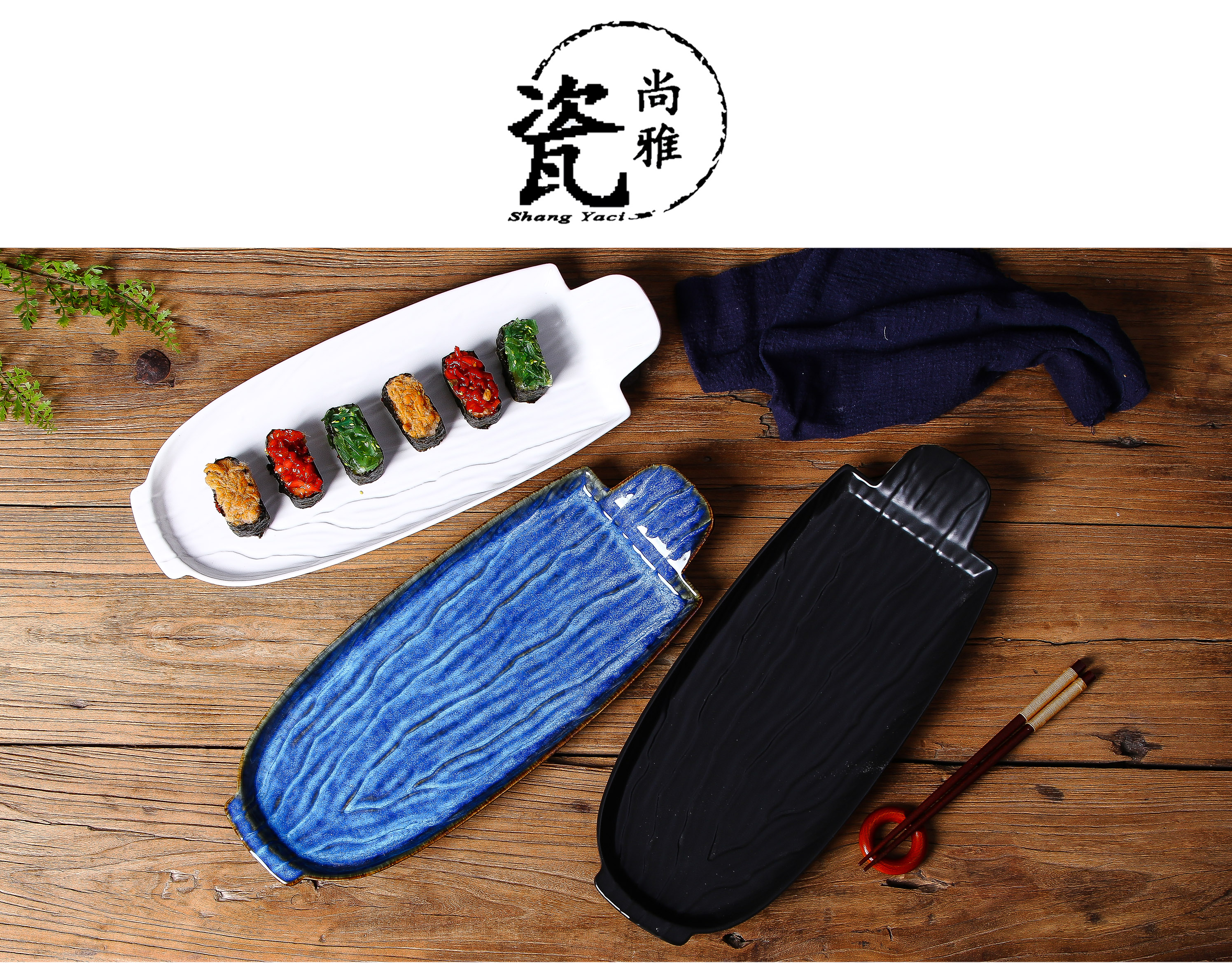 創意窯變陶瓷壽司盤刺身盤魚盤帶把長盤商用擺臺菜盤大號料理餐具1入