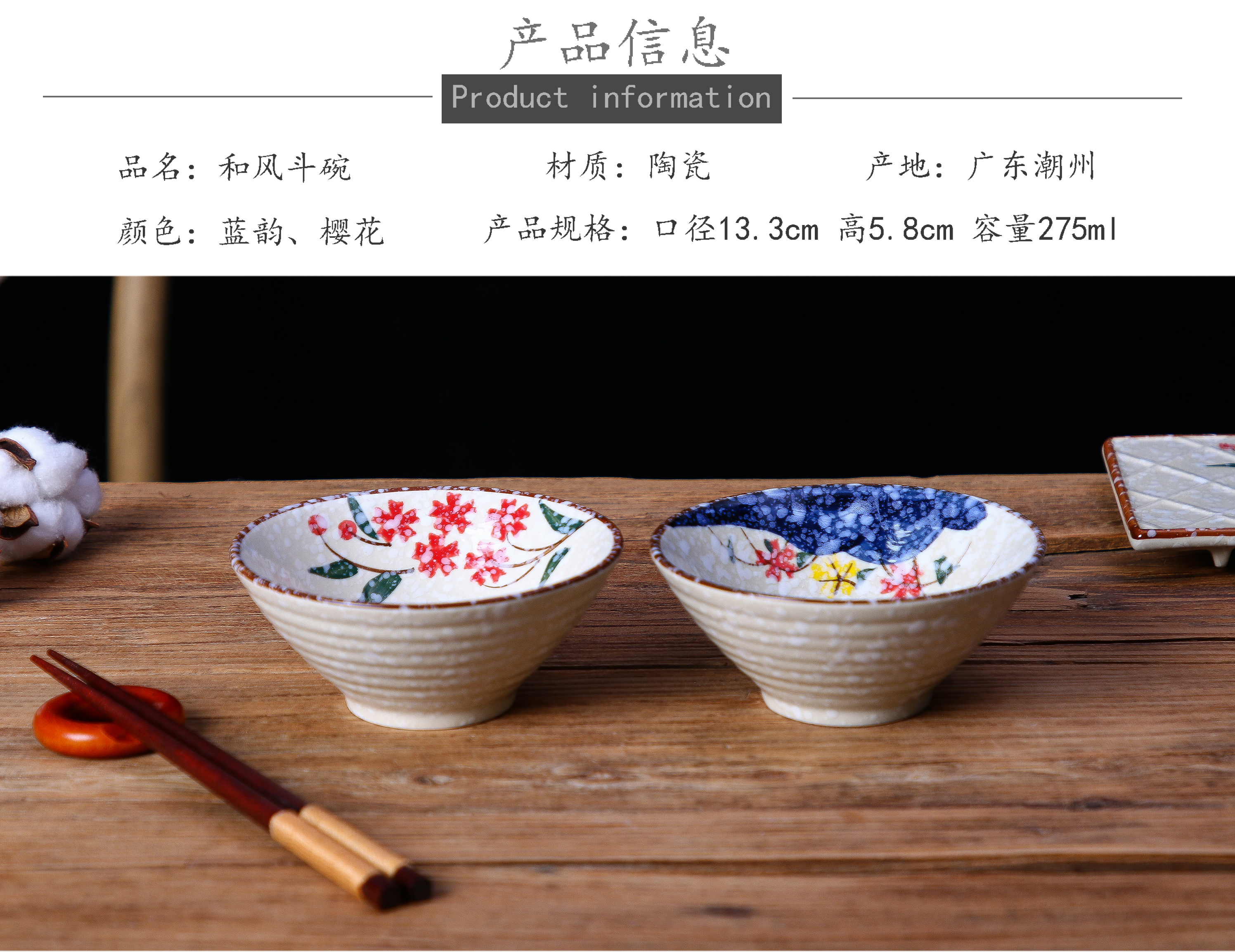 陶瓷日式和風碗5英寸斗碗喇叭碗飯碗湯碗商用擺臺甜品碗家用餐具1入