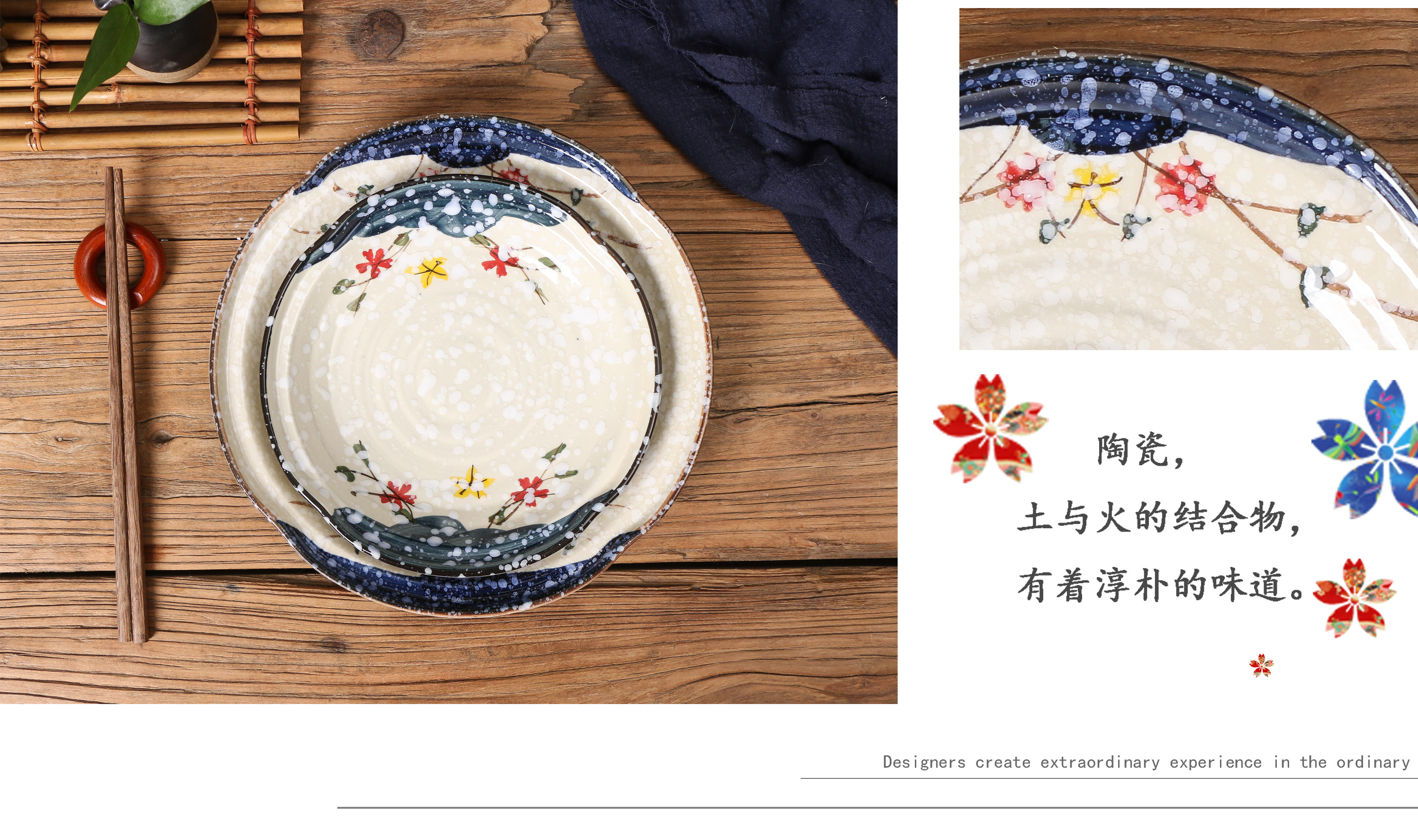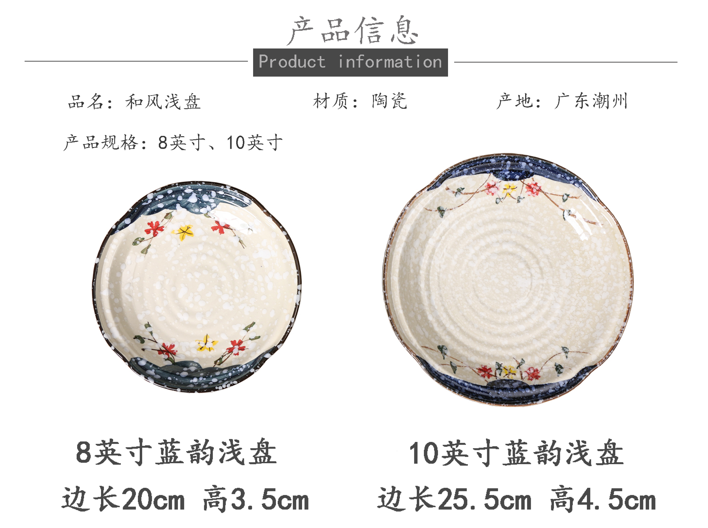 創意和風個性陶瓷盤子水果飯盤淺盤菜盤餐廳擺臺商用盤子家用餐具1入