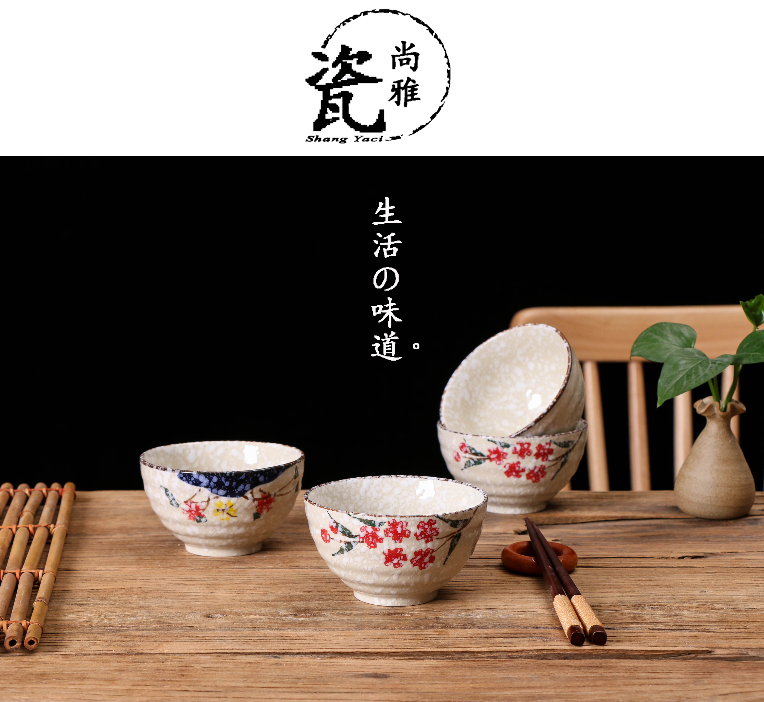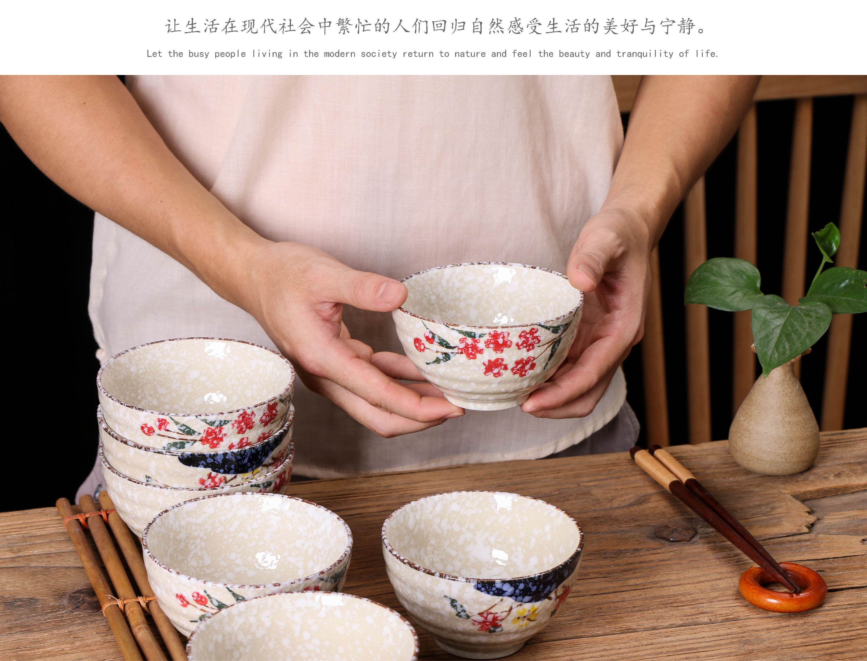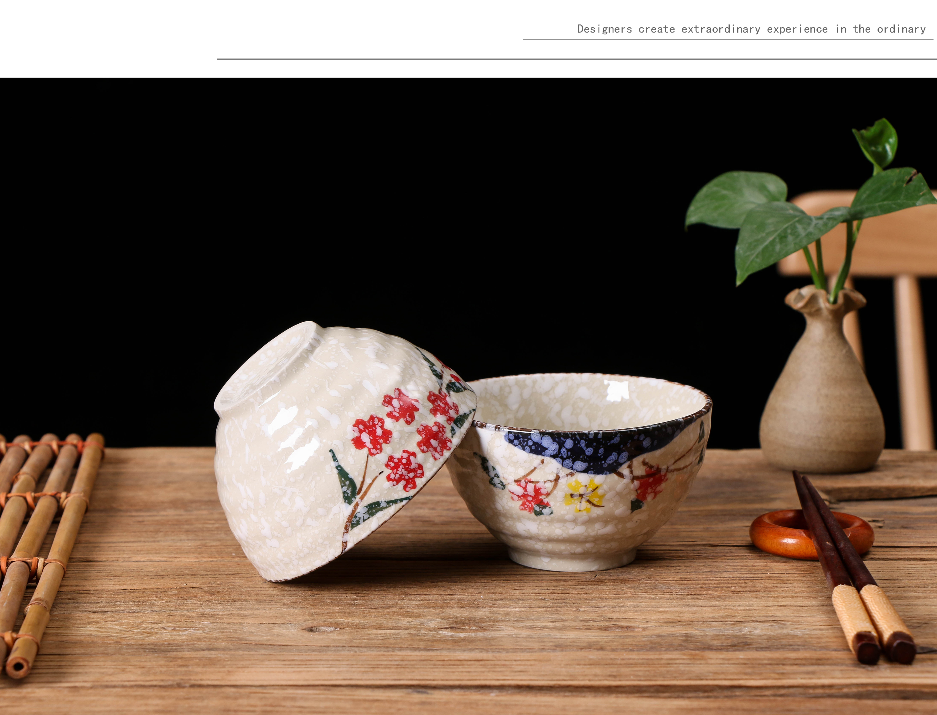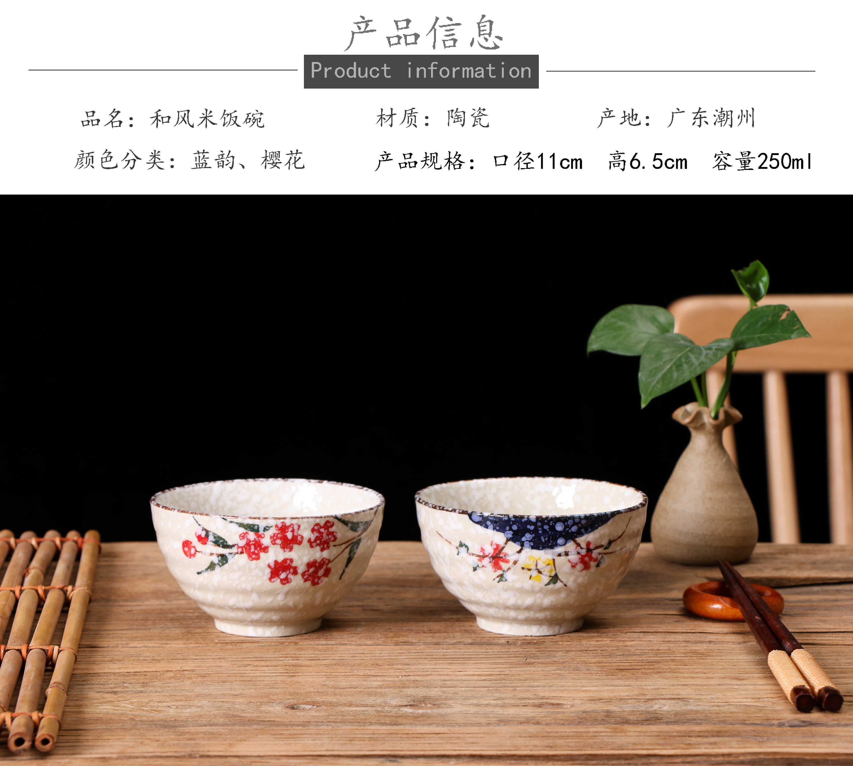 陶瓷米飯碗日系和風套裝碗湯碗早餐碗甜品碗家用飯碗商用碗釉下彩1入