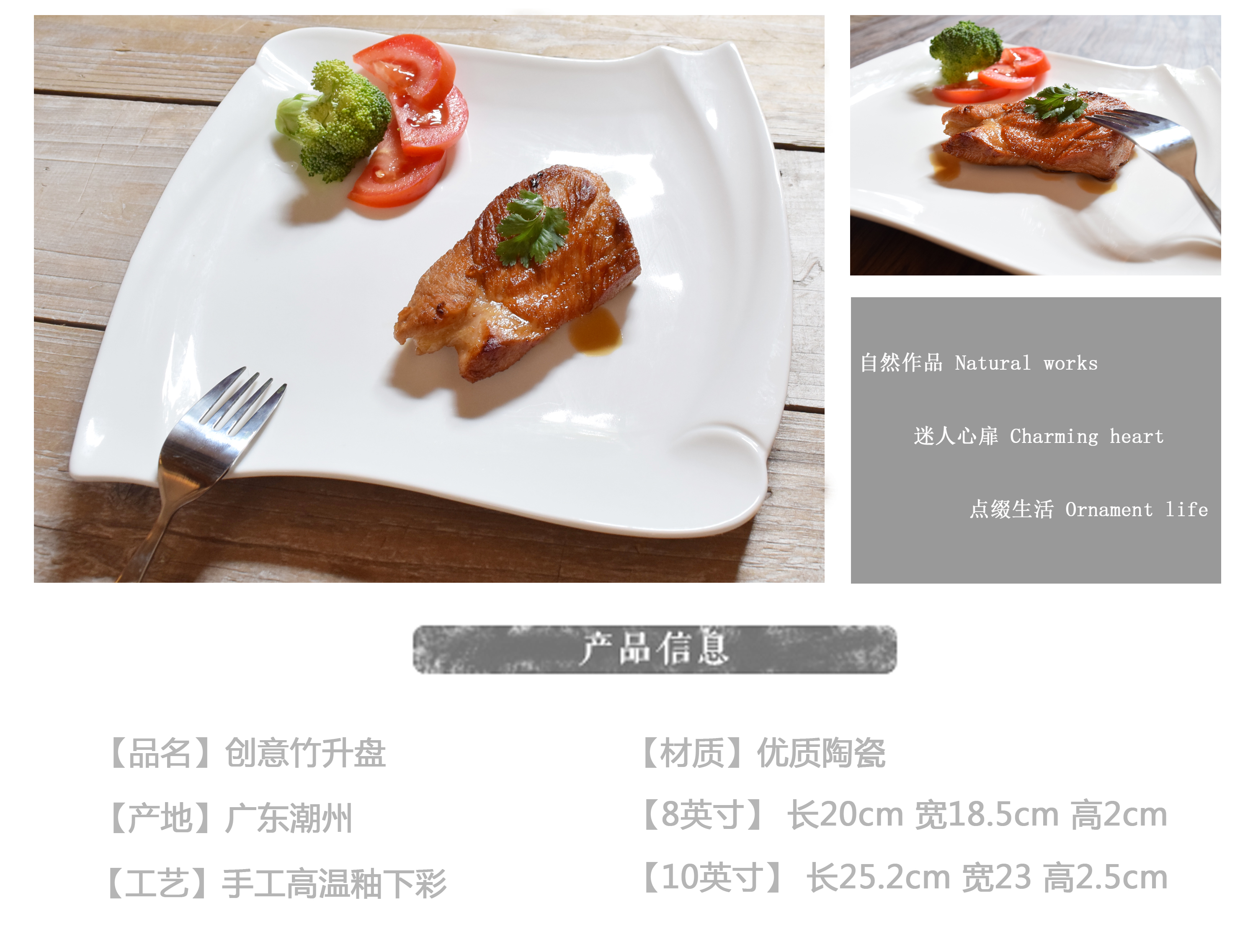 西餐盤竹升盤純白陶瓷盤子牛排盤意面平盤早餐點心盤餐具家用菜盤1入