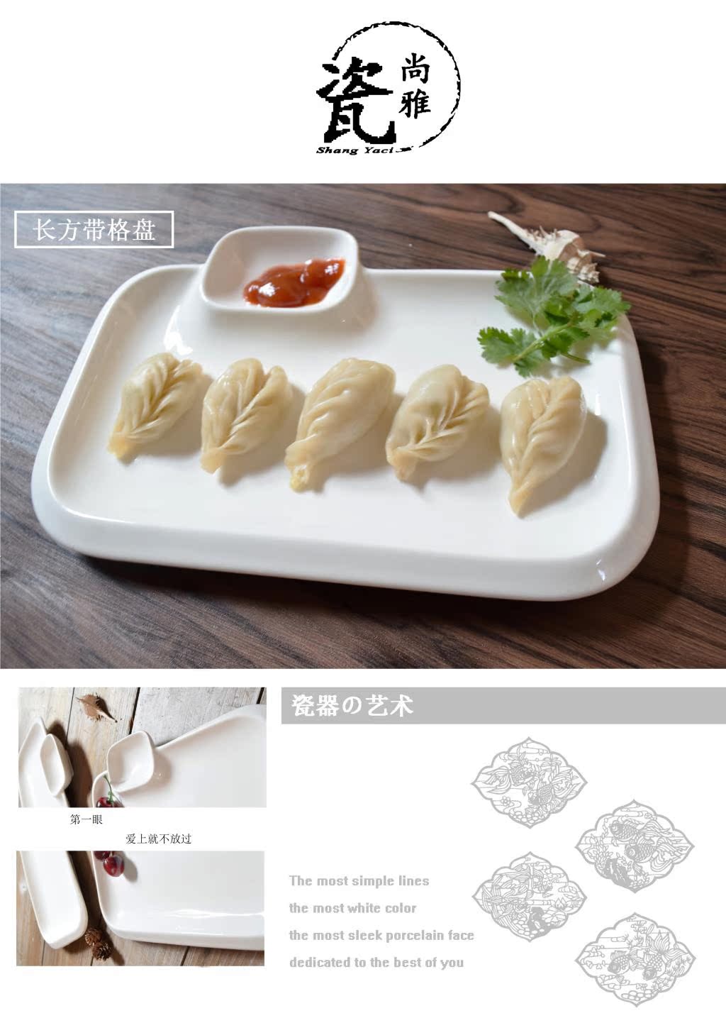 餃子盤多用調料碟陶瓷碟點心盤飯盤創意西餐盤涼菜盤家用長方盤子1入