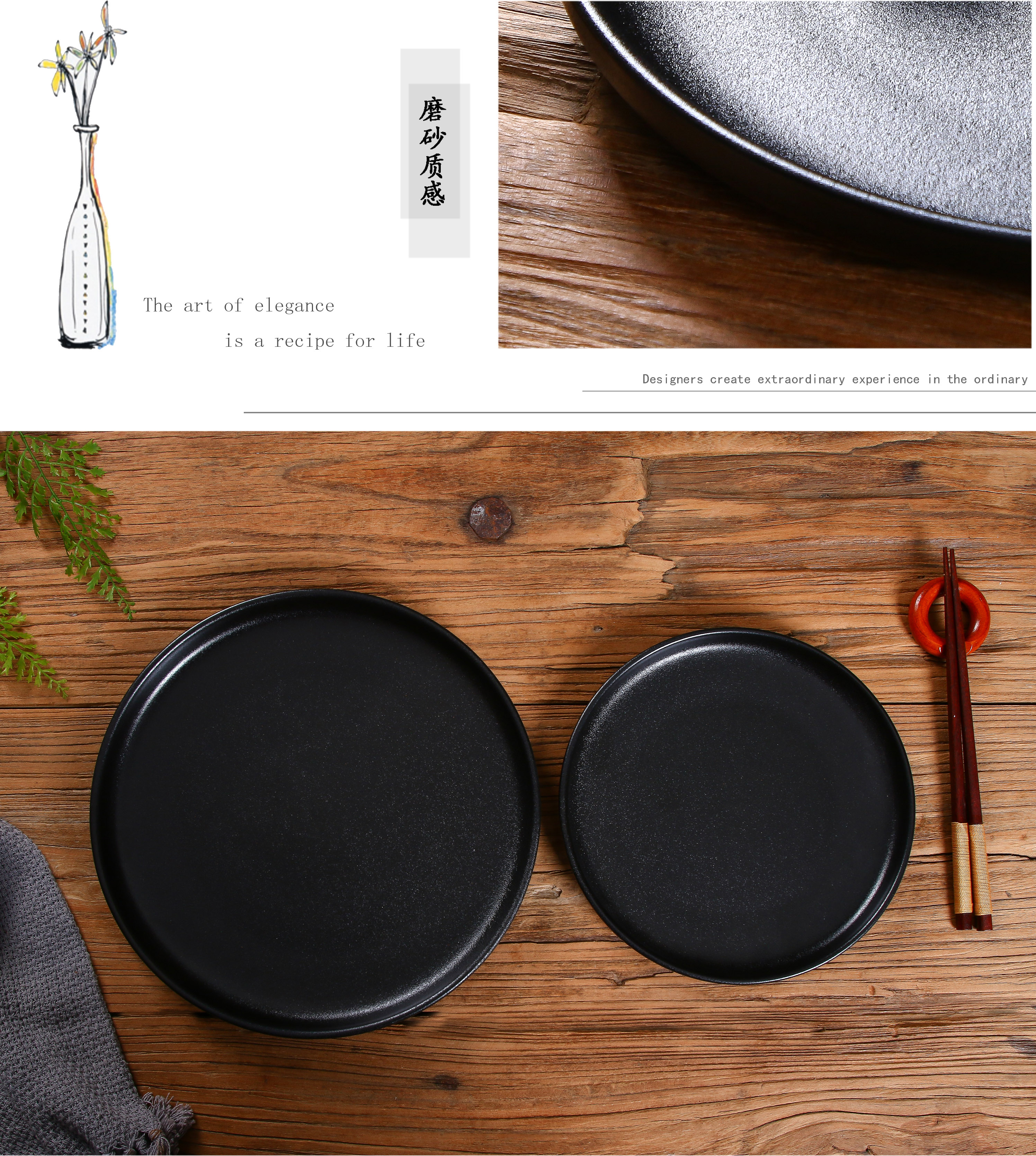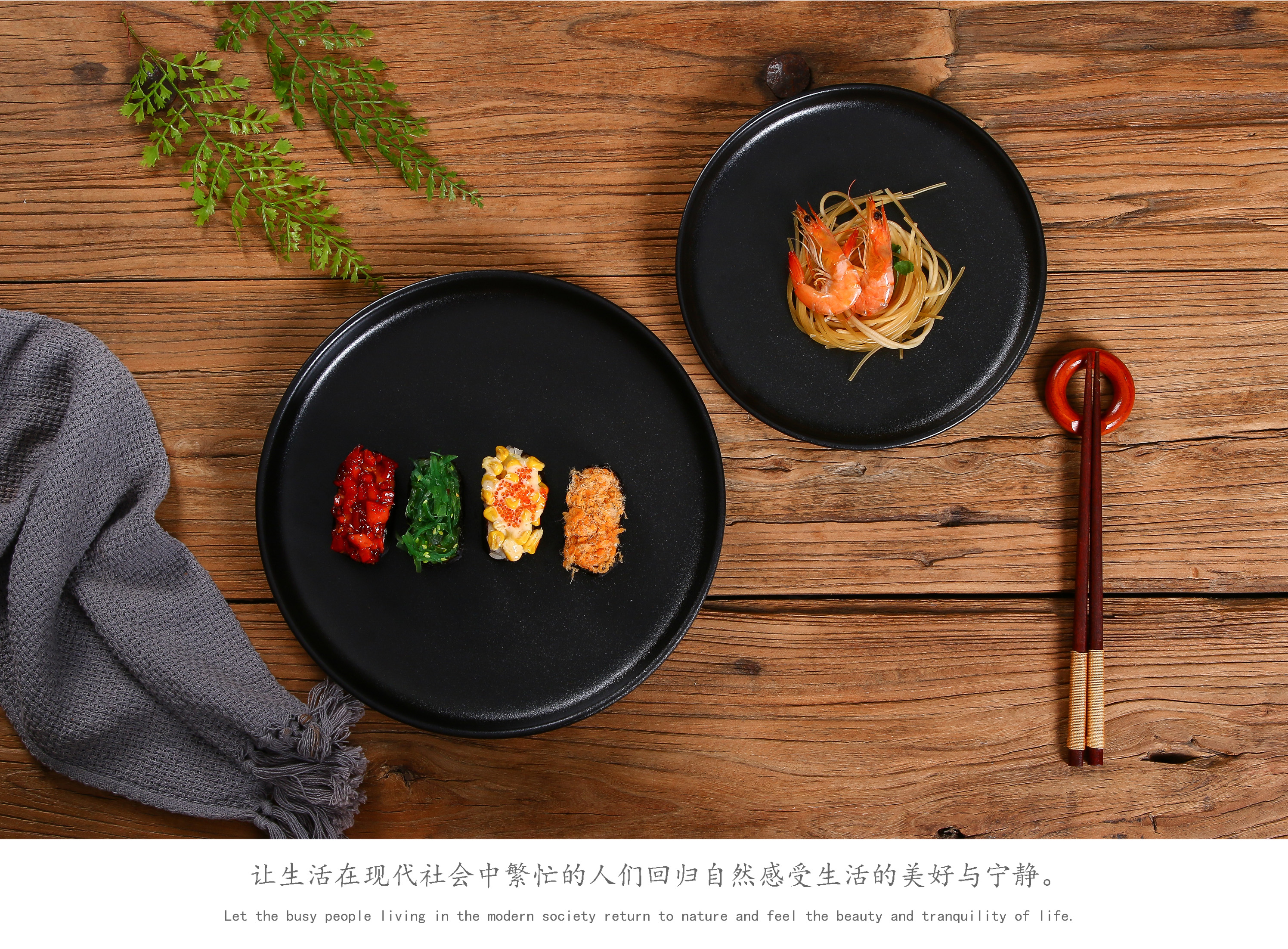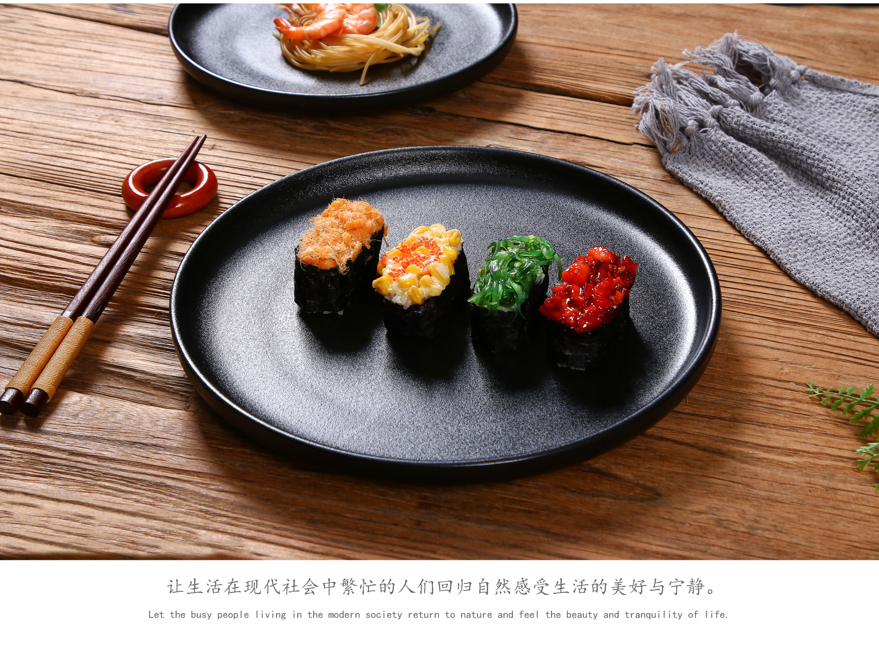 創意簡約黑色陶瓷牛排盤意面盤水果沙拉盤壽司盤圓盤餐廳擺臺淺盤1入