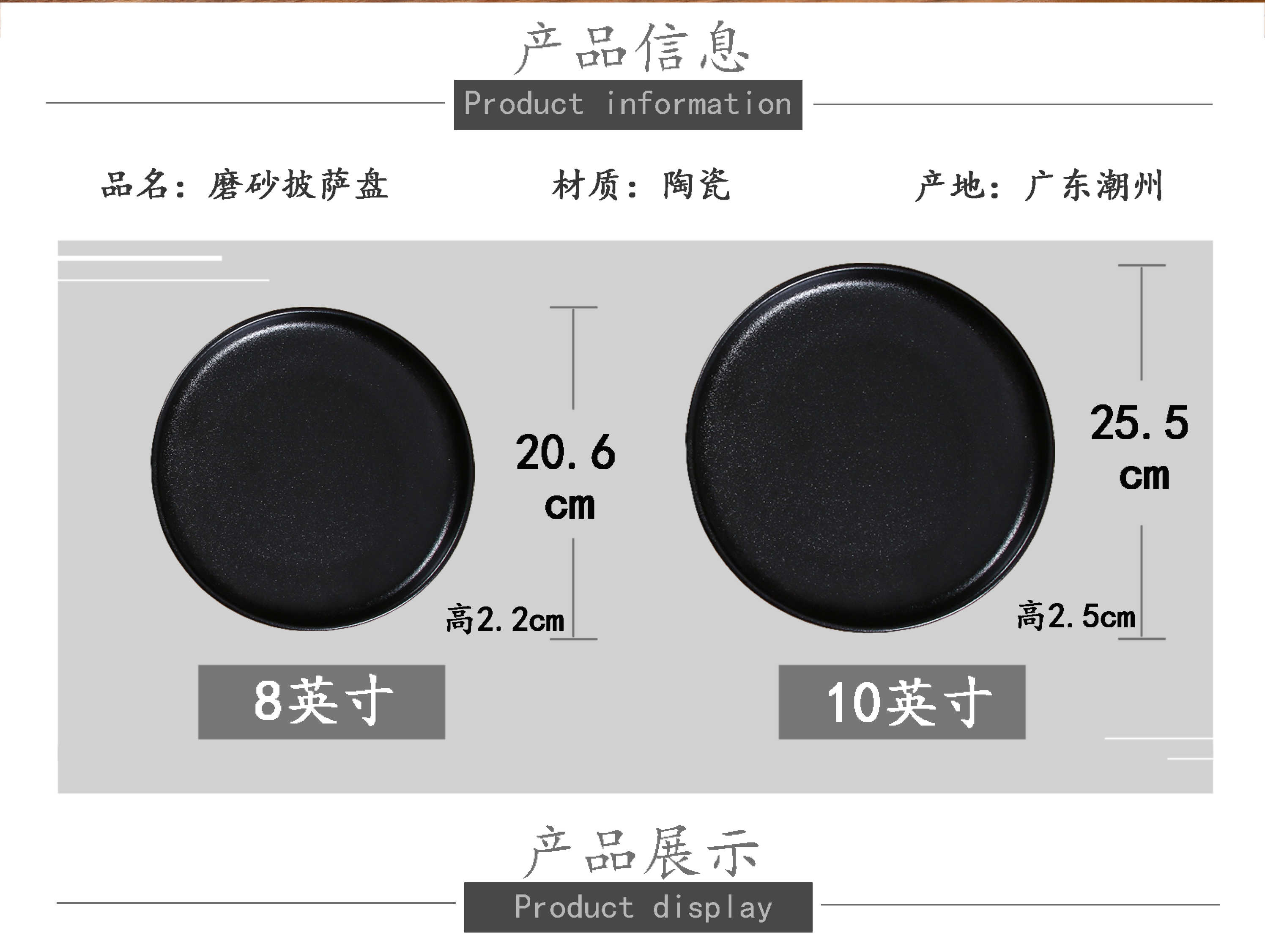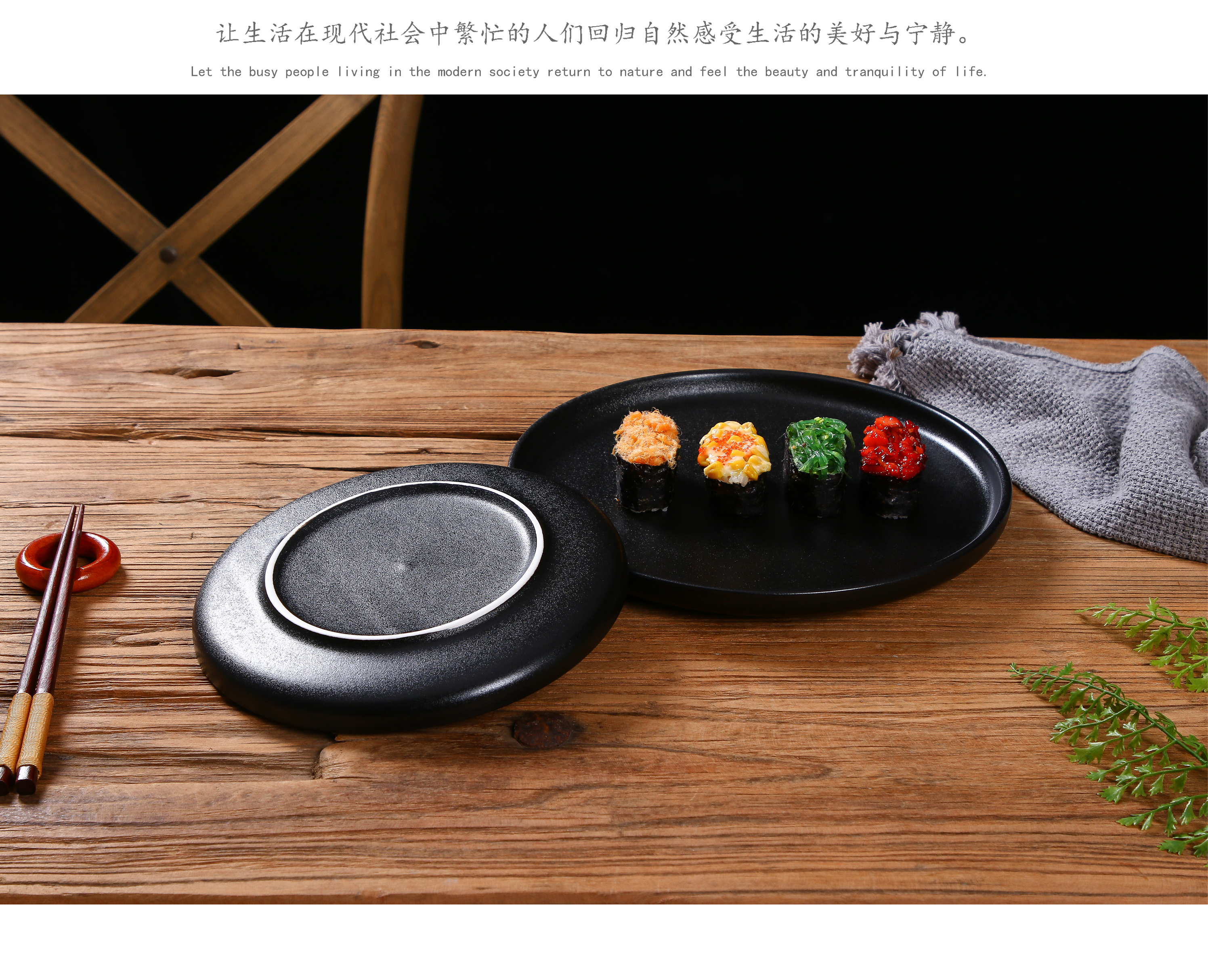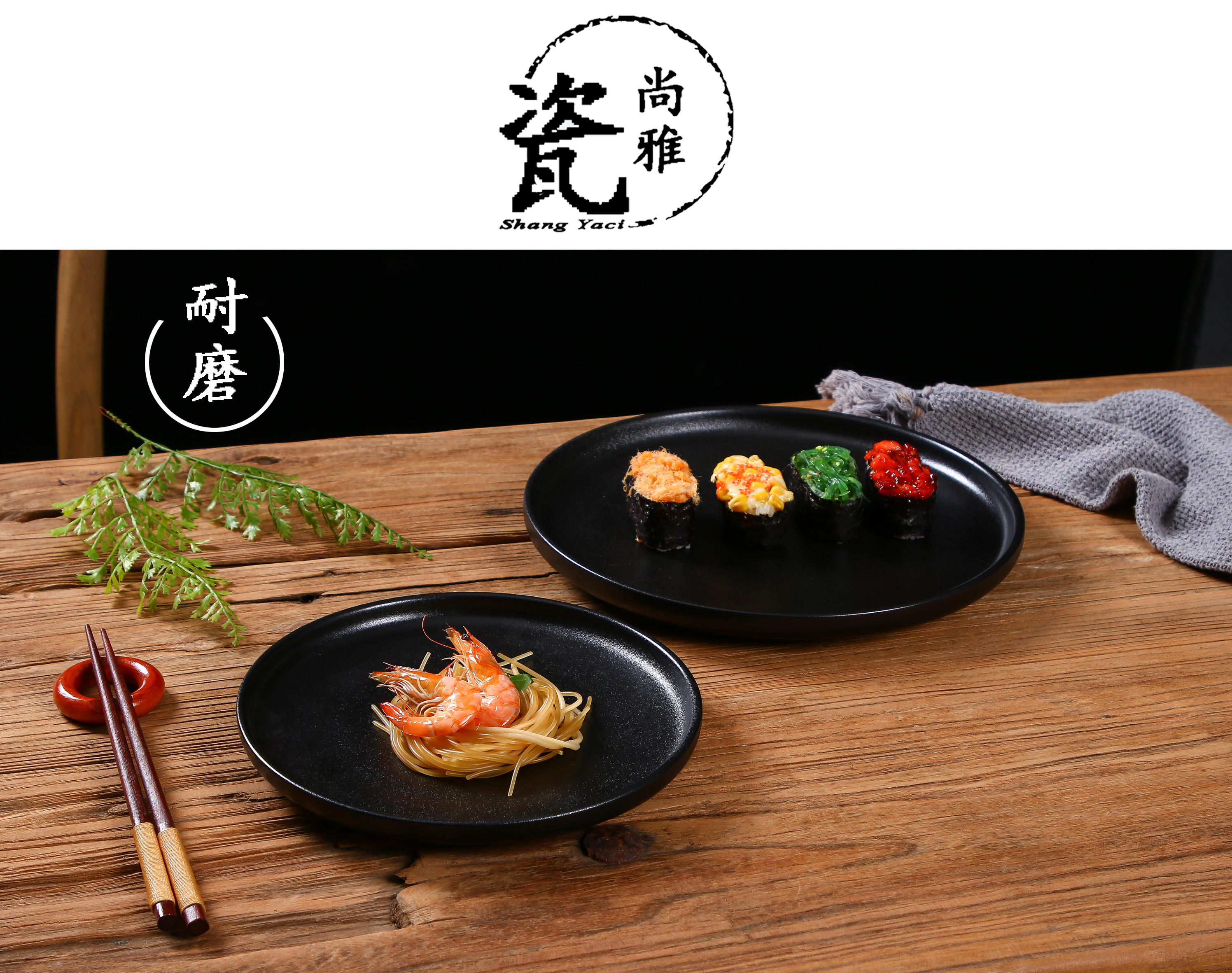 創意簡約黑色陶瓷牛排盤意面盤水果沙拉盤壽司盤圓盤餐廳擺臺淺盤1入