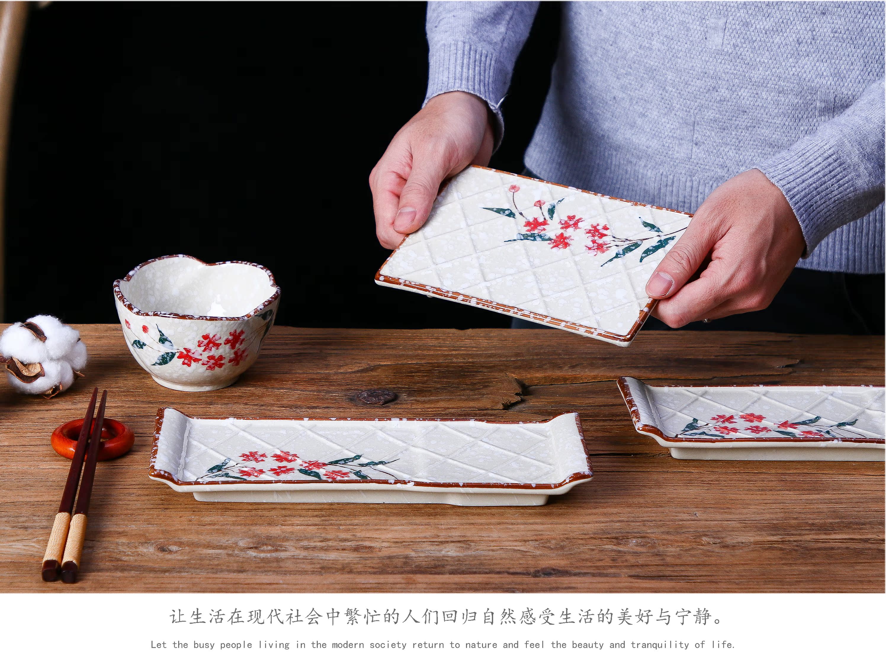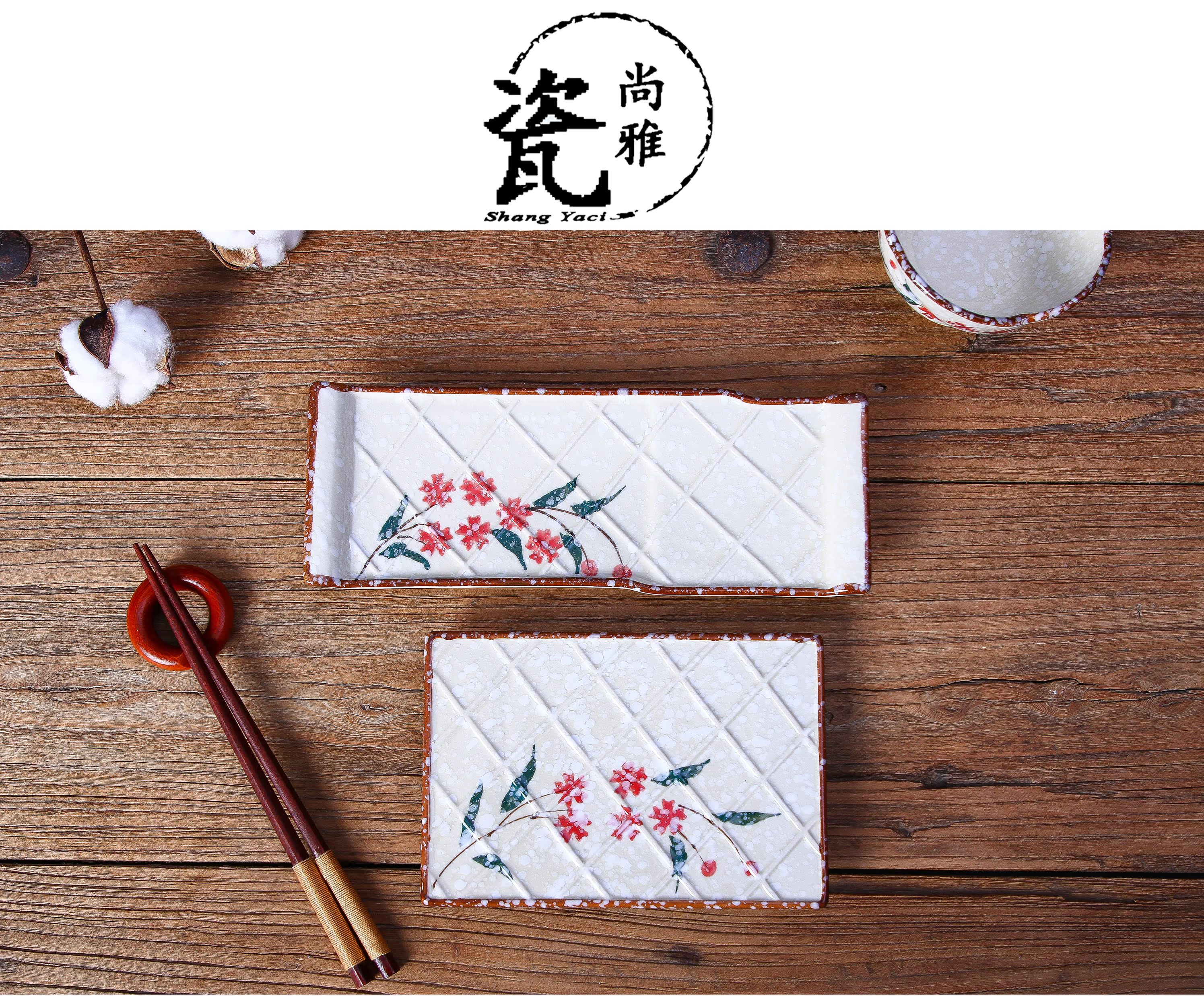 陶瓷日式和風長方壽司盤料理刺身盤商務擺臺餐廳小吃甜點水果盤子1入