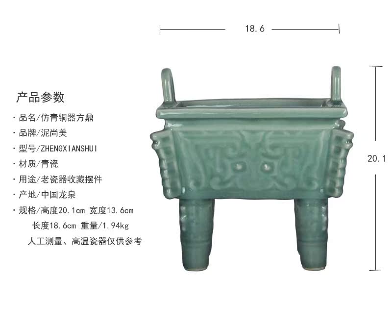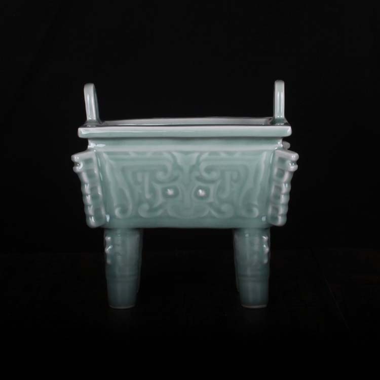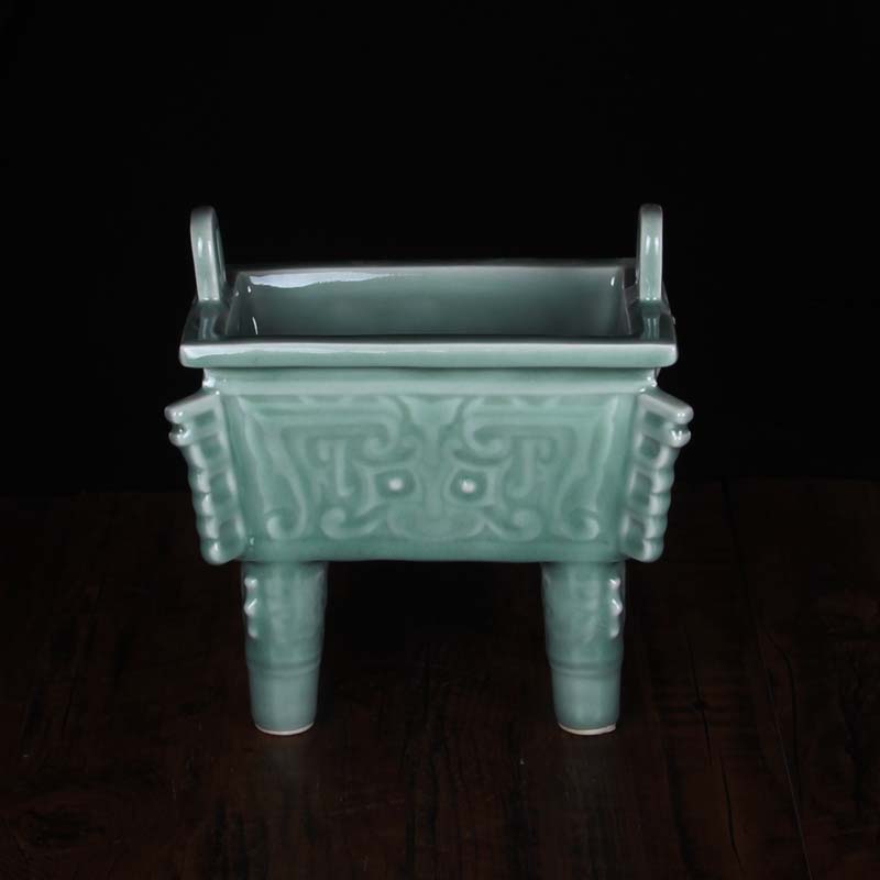龍泉青瓷仿青銅器香爐聚寶龍鼎方鼎寶鼎擺件鎮宅聚招財旺財保平安1入