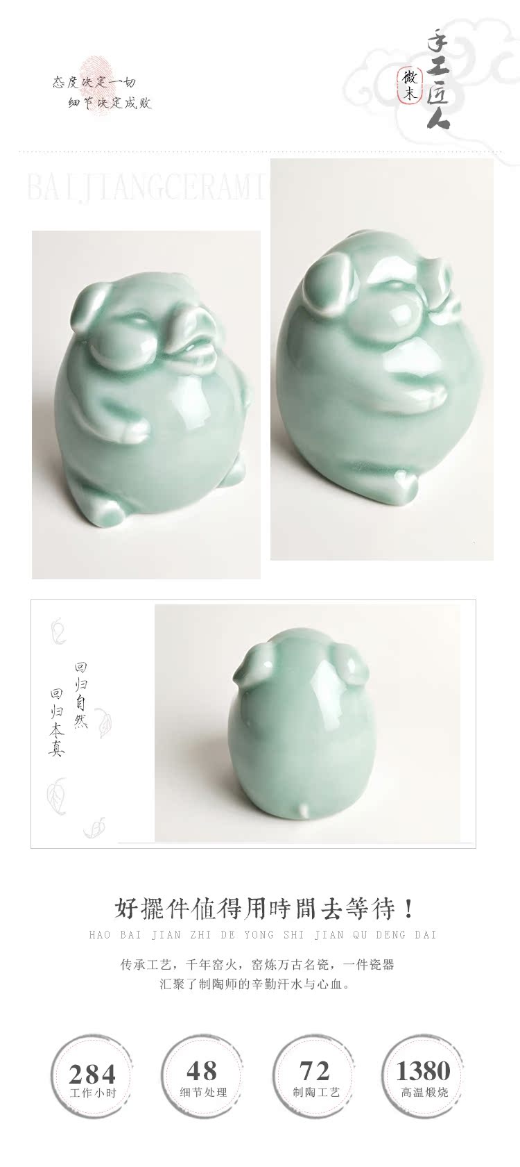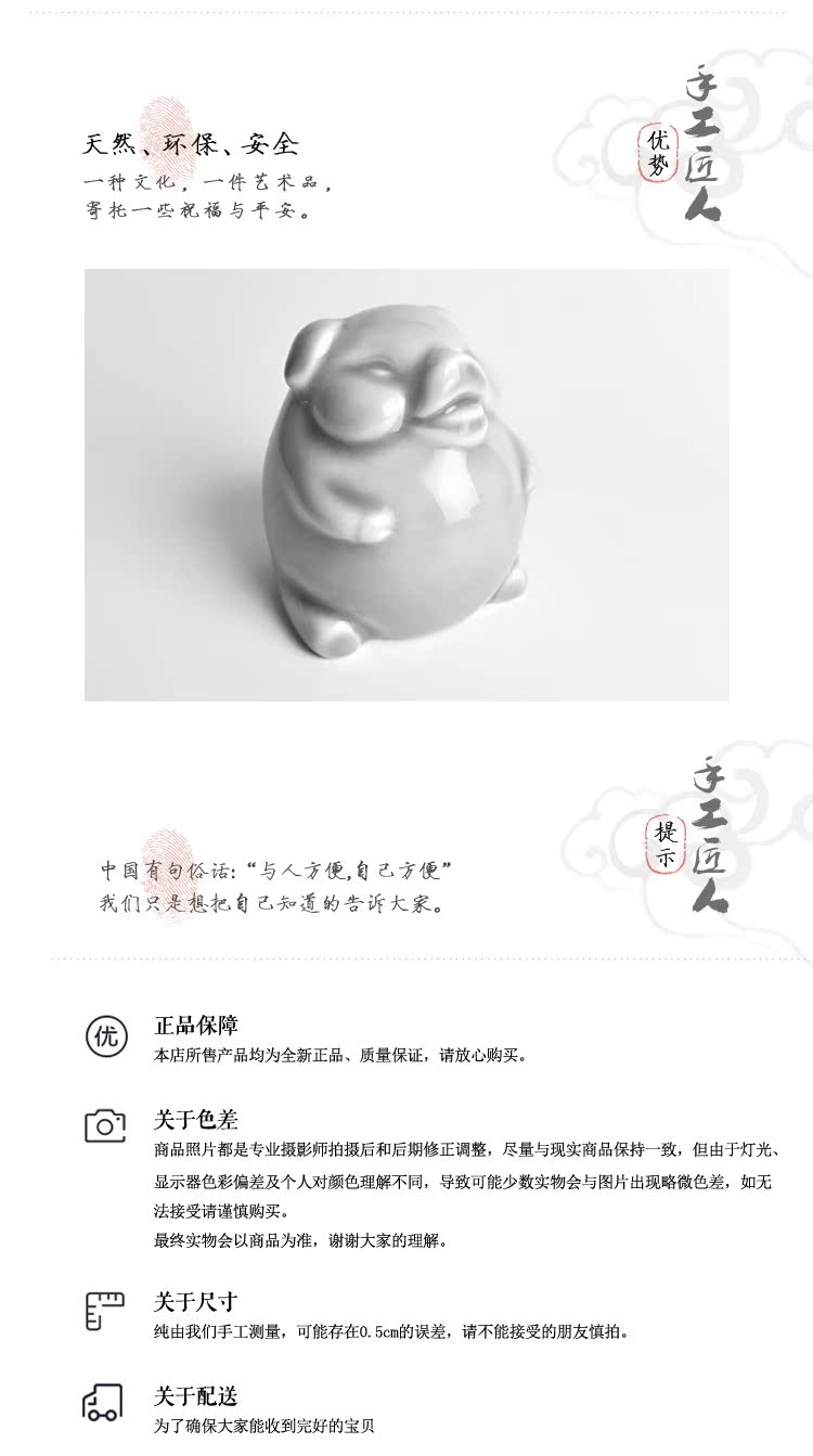 2019豬年青瓷小豬手工藝品茶桌茶寵動物桌面擺件陶瓷生肖福氣豬1入